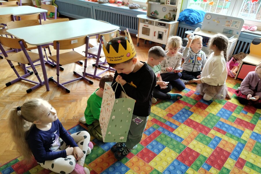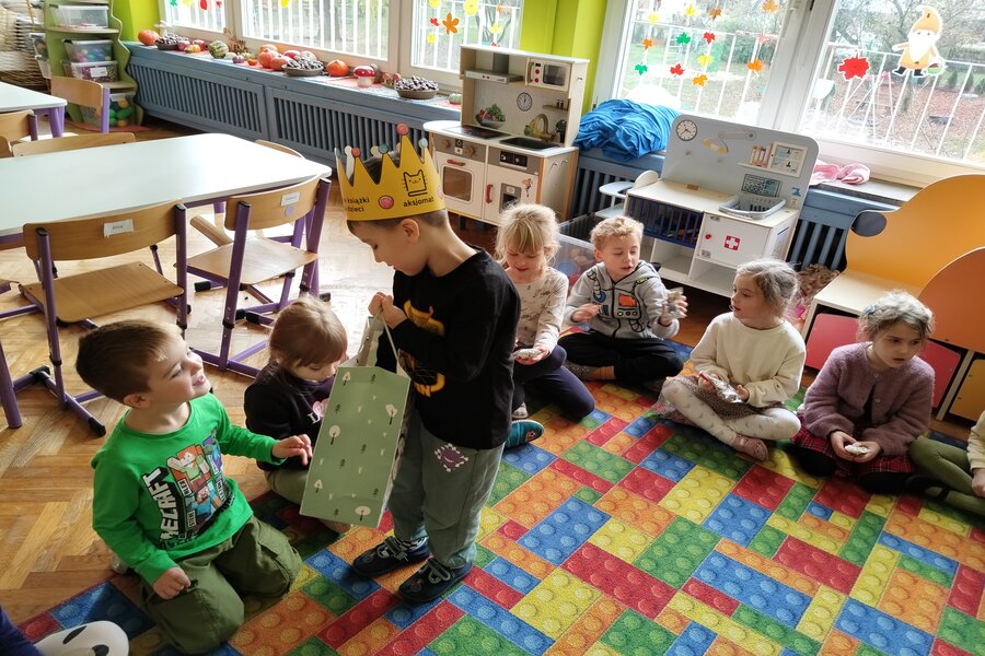 Dzisiaj nasza truskaweczka Artem obchodził swoje 5 urodziny. Z tej okazji obdarował wszystkich słodkościami a życzeń i uścisków od kolegów i koleżanek nie było końca. Wszyscy zaśpiewali mu 100lat i narysowali piękne laurki do albumu urodzinowego, by na koniec stanąć do wspólnego grupowego zdjęcia.