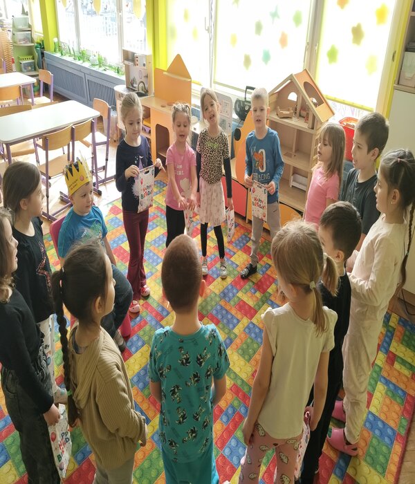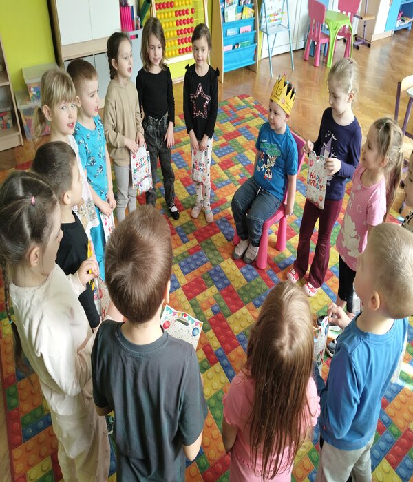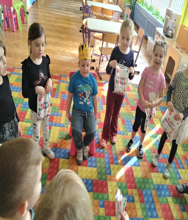 Nasza truskaweczka Franio obchodził dzisiaj swoje 6 urodziny z tej okazji przyniósł drobne upominki dla wszystkich. Najpierw wszystkie koleżanki złożyły życzenia a potem chłopcy, kązdy dostał drobny upominek. Wszyscy zaśpiewali 100lat!! i narysowali piękne laurki do albumu urodzinowego.
