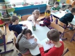 Dzisiaj nasz Jakub obchodził swoje urodziny. Zaśpiewaliśmy mu "Sto lat", złożyliśmy życzenia i namalowaliśmy obrazki do albumu urodzinowego. Kuba z tej okazji poczęstował wszystkie dzieci słodkościami.