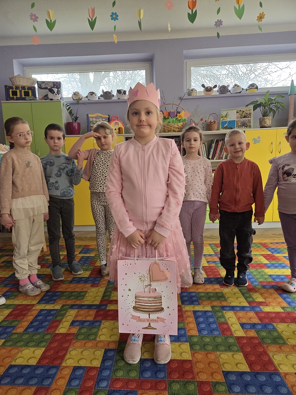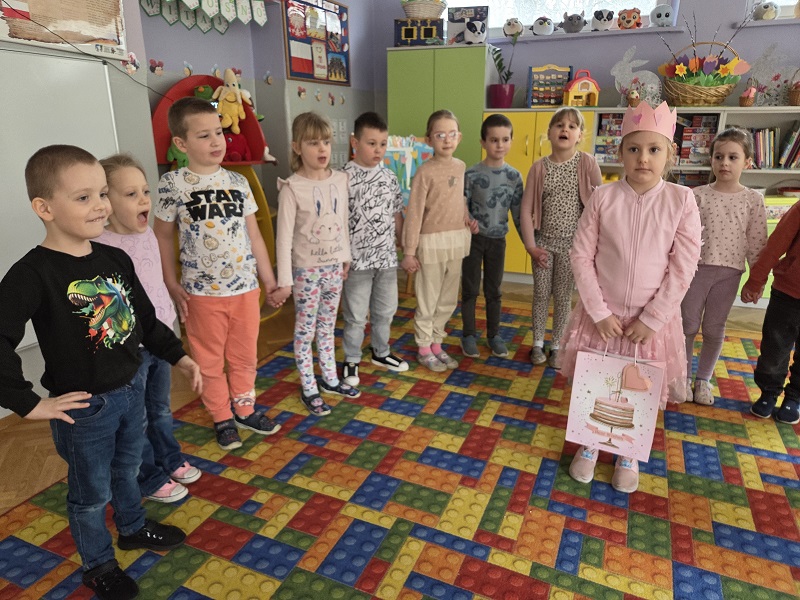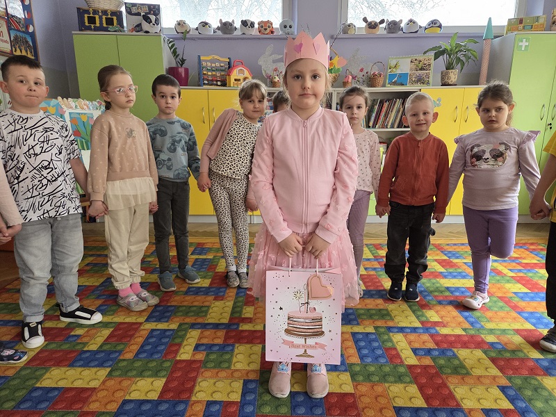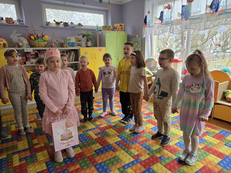 W dniu 27 marca 2026r. w grupie Biedronek - Marysia K. obchodziła swoje siódme urodziny. Przedszkolaki odśpiewały solenizantce sto lat, złożyły najlepsze życzenia - radości, szczęścia, spełnienia najskrytszych marzeń i dużo prezentów. Solenizantka poczęstowała przedszkolaki słodką niespodzianką i otrzymała pamiątkową laurkę.