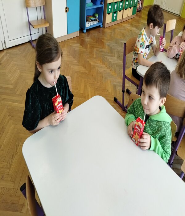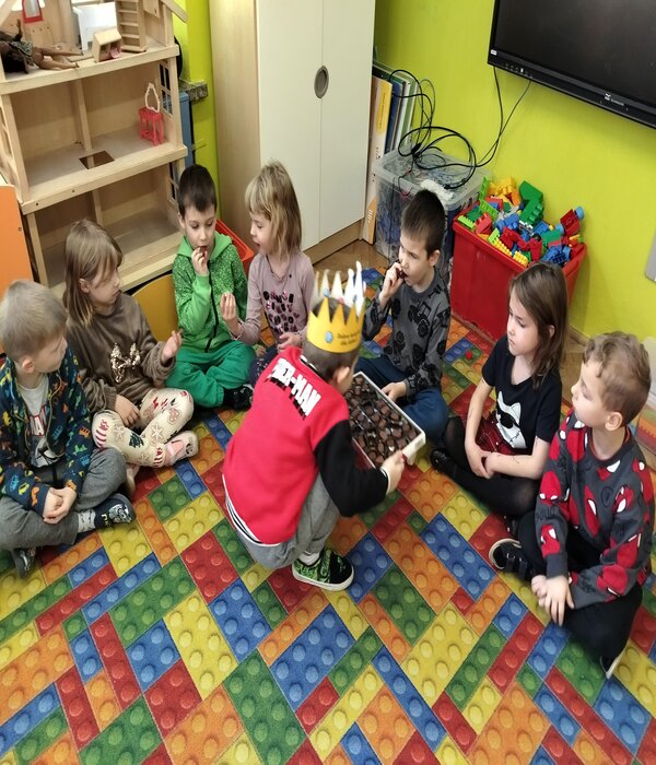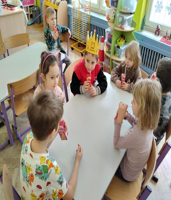 Truskawki zaczęły dzień od prawdziwej słodkiej uczty. Maxim skończył 6lat i z tej okazji poczęstował wszystkich słodkościami, każdy złożył mu życzenia i zaśpiewał 100lat!!!. Na koniec po narysowaniu laurek do albumu urodzinowego, przedszkolaki otrzymały soczki.