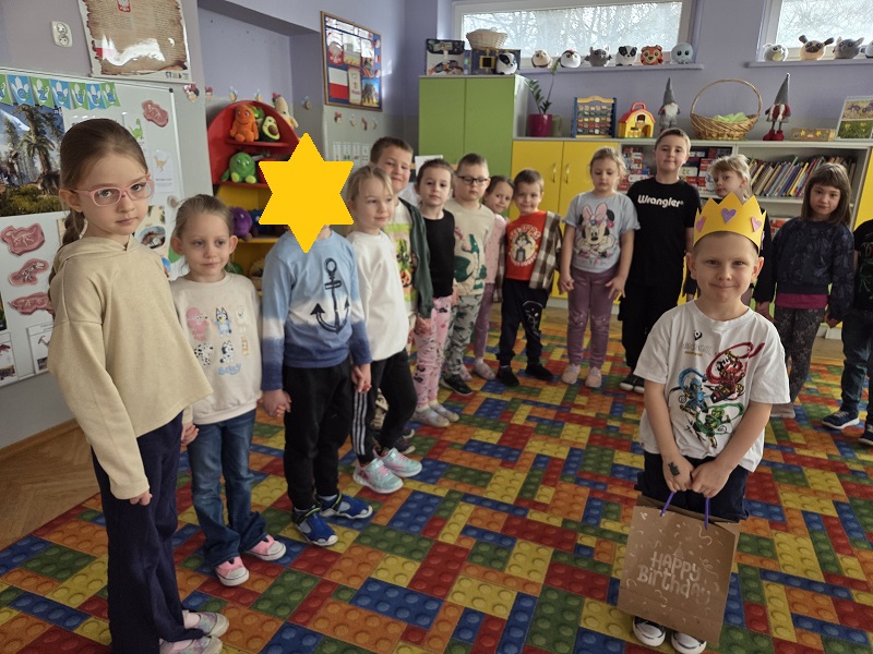 W dniu 2 marca 2026r. - Michał W., z grupy Biedronek obchodził swoje szóste urodziny. Wszystkie przedszkolaki zaśpiewały solenizantowi - sto lat, złożyły najlepsze życzenia: zdrowia, radości i spełnienia najskrytszych marzeń. Były słodycze i zabawy przy muzyce.