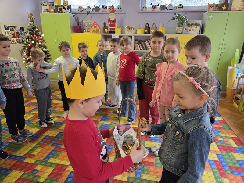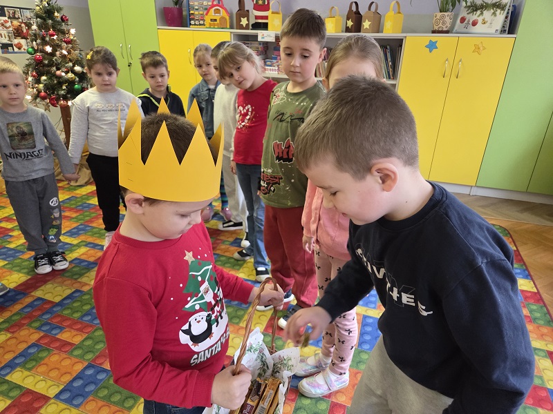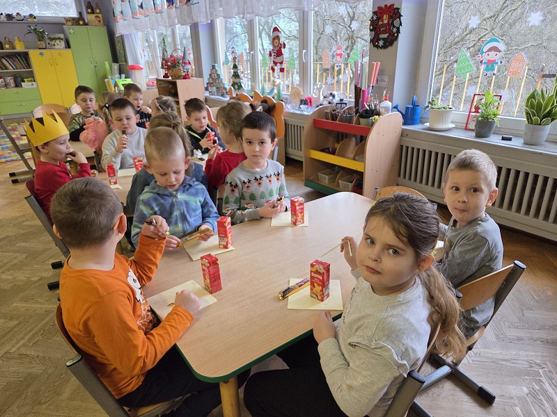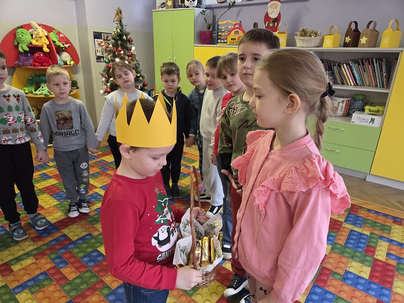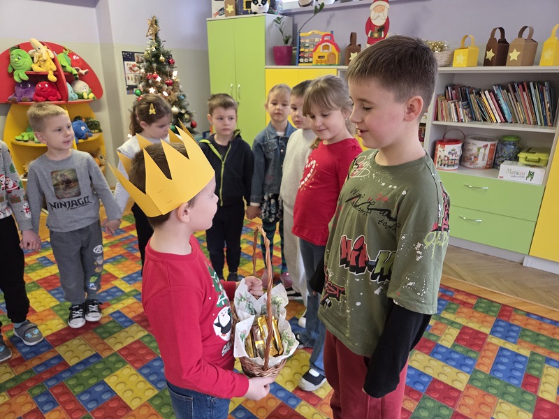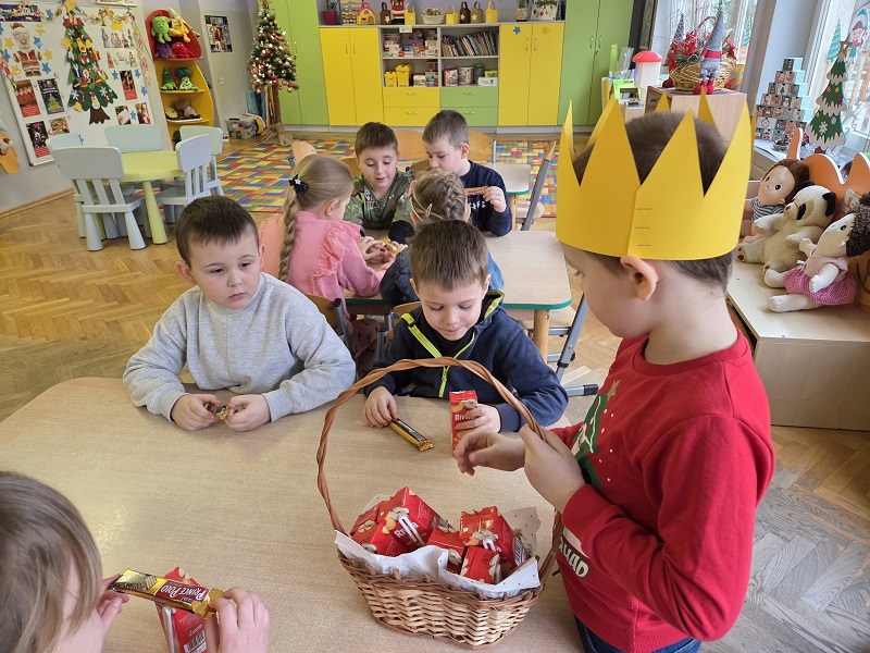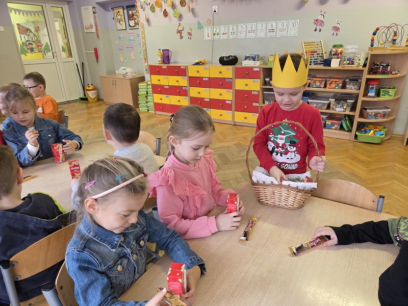 W dniu 23 grudnia 2025r. swoje 6 urodziny obchodził Mykola P., z grupy Biedronek. Wszystkie przedszkolaki zaśpiewały solenizantowi sto lat, złożyły najlepsze życzenia: radości, uśmiechu, spełnienia najskrytszych marzeń oraz dużo zdrowia. Były pyszne czekoladowe batoniki i pomarańczowe soczki oraz taneczne zabawy przy muzyce.