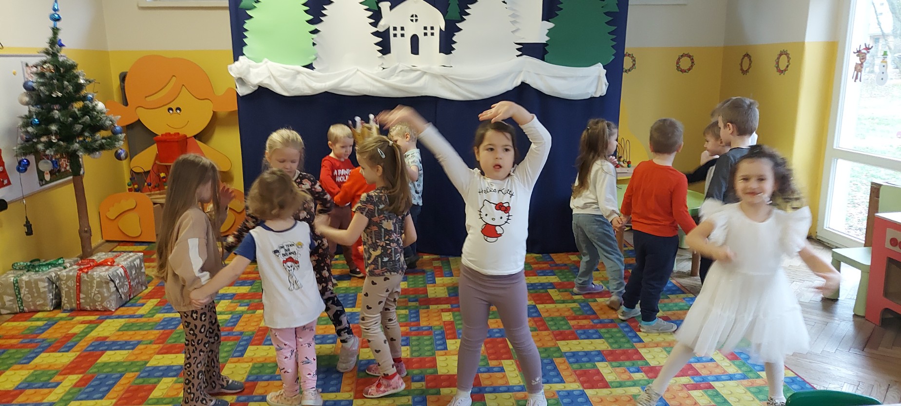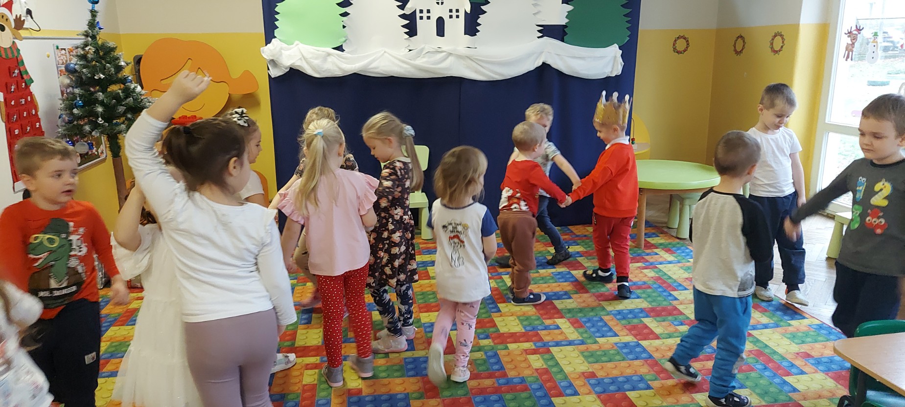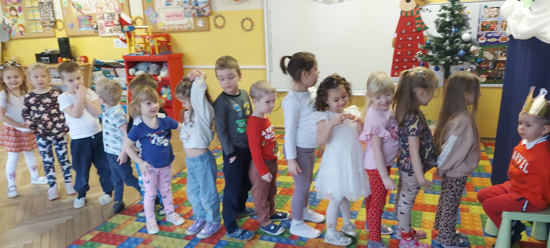 W grudniu jeden z naszych wychowanków obchodził swoje urodziny. Wspólnie świętowaliśmy ten wyjątkowy dzień, składając życzenia i biorąc udział w radosnych zabawach oraz tańcach. Jubilat poczęstował kolegów i koleżanki słodkościami, co sprawiło dzieciom wiele radości. Był to miły i pełen uśmiechów czas.