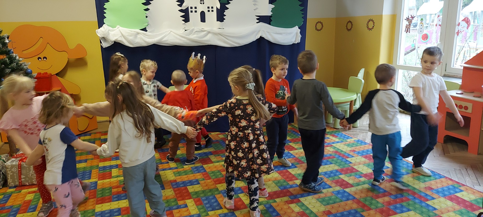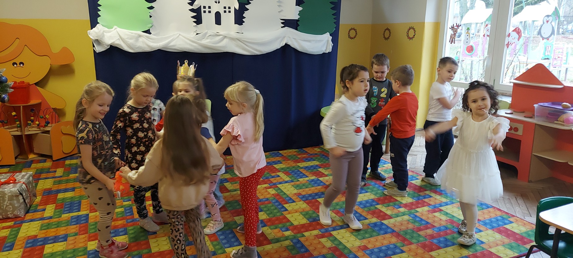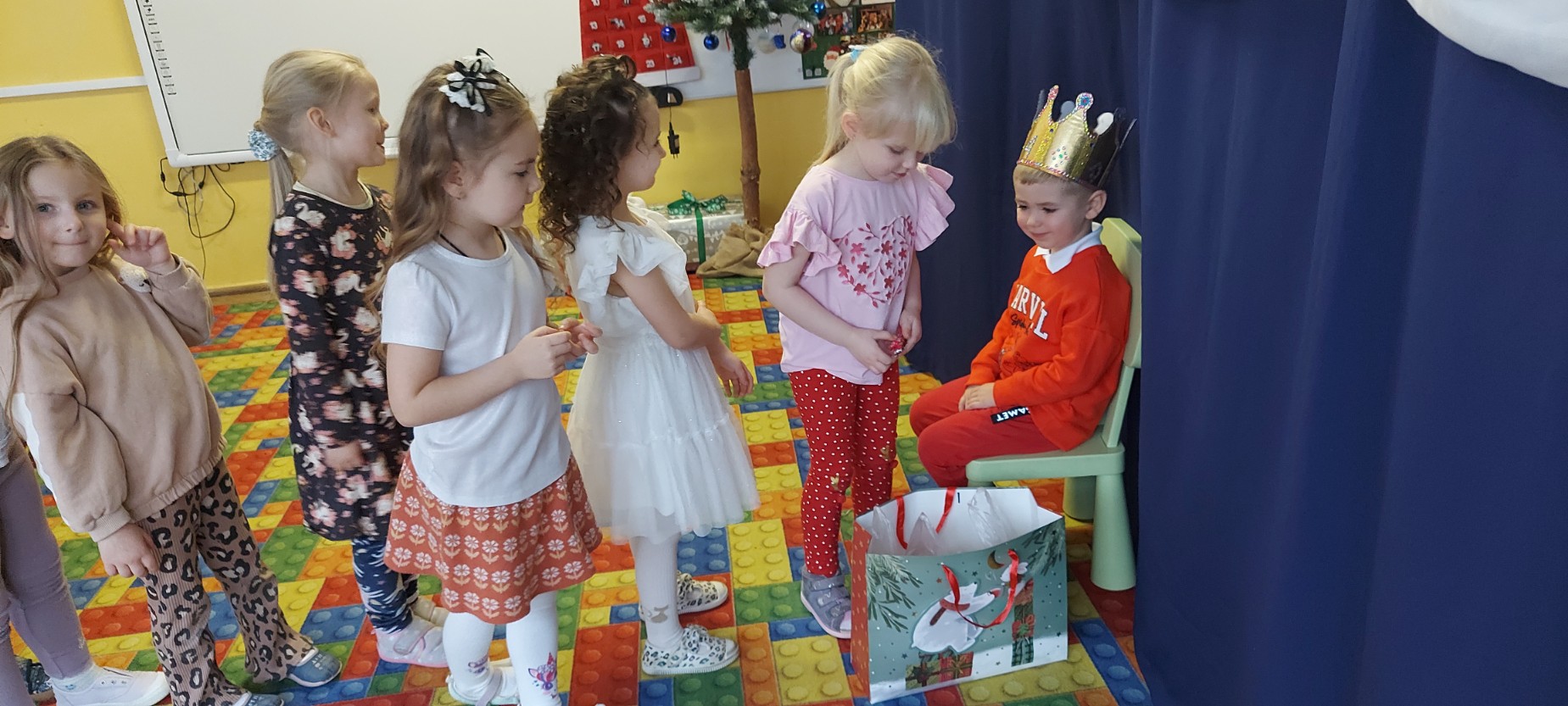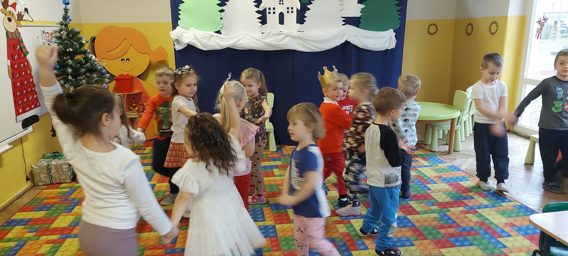 W grudniu jeden z naszych wychowanków obchodził swoje urodziny. Wspólnie świętowaliśmy ten wyjątkowy dzień, składając życzenia i biorąc udział w radosnych zabawach oraz tańcach. Jubilat poczęstował kolegów i koleżanki słodkościami, co sprawiło dzieciom wiele radości. Był to miły i pełen uśmiechów czas.