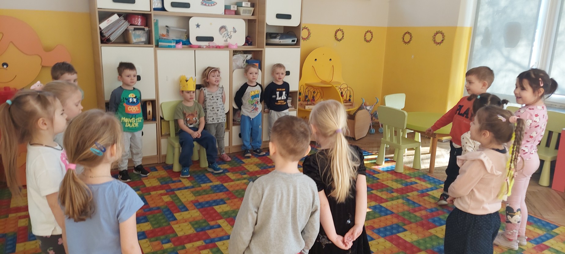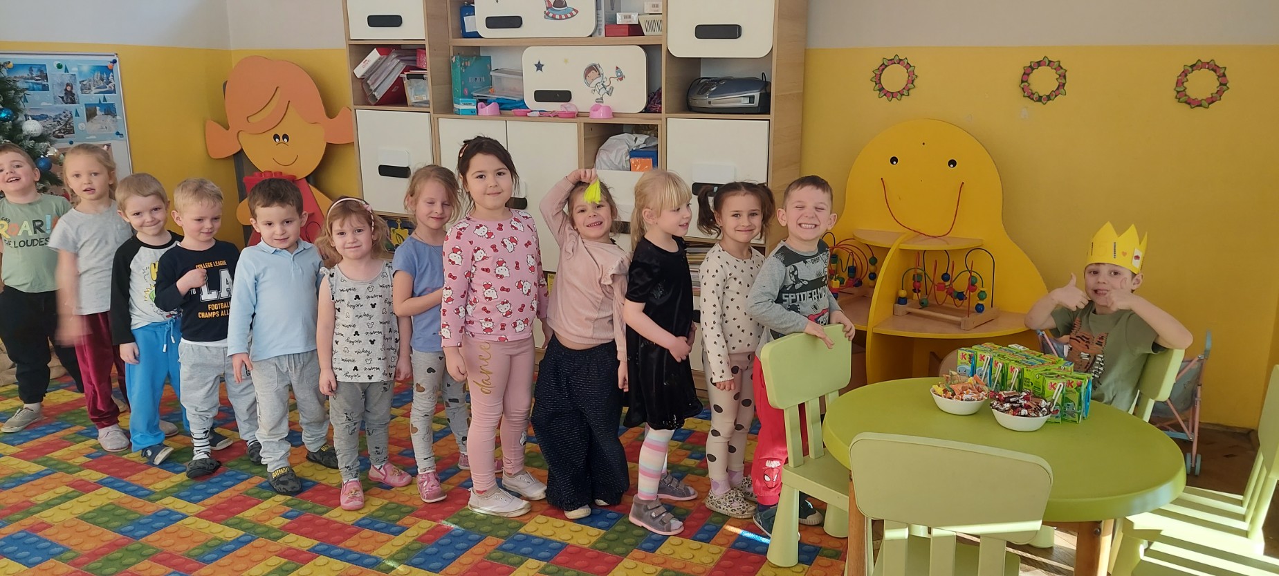 W naszej grupie odbyło się radosne świętowanie urodzin jednego z wychowanków. Dzieci wspólnie złożyły jubilatowi życzenia i uczestniczyły w wesołych zabawach oraz tańcach. Nie zabrakło również słodkiego poczęstunku, którym jubilat podzielił się z kolegami i koleżankami. Był to dzień pełen uśmiechów i miłej atmosfery.