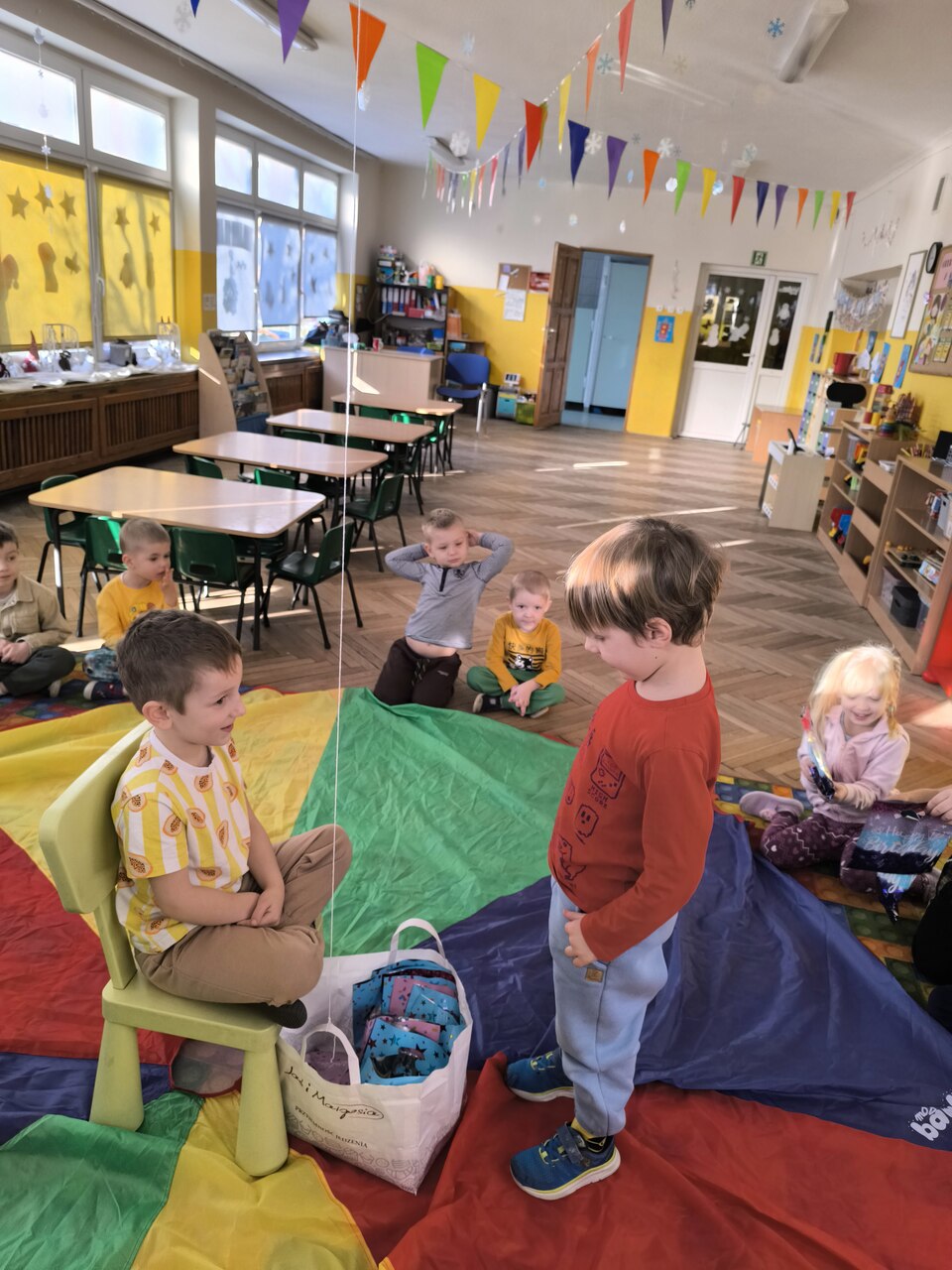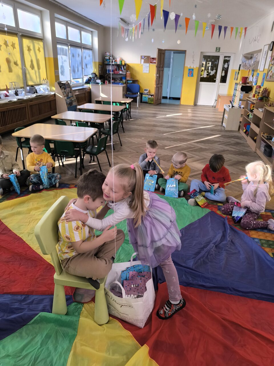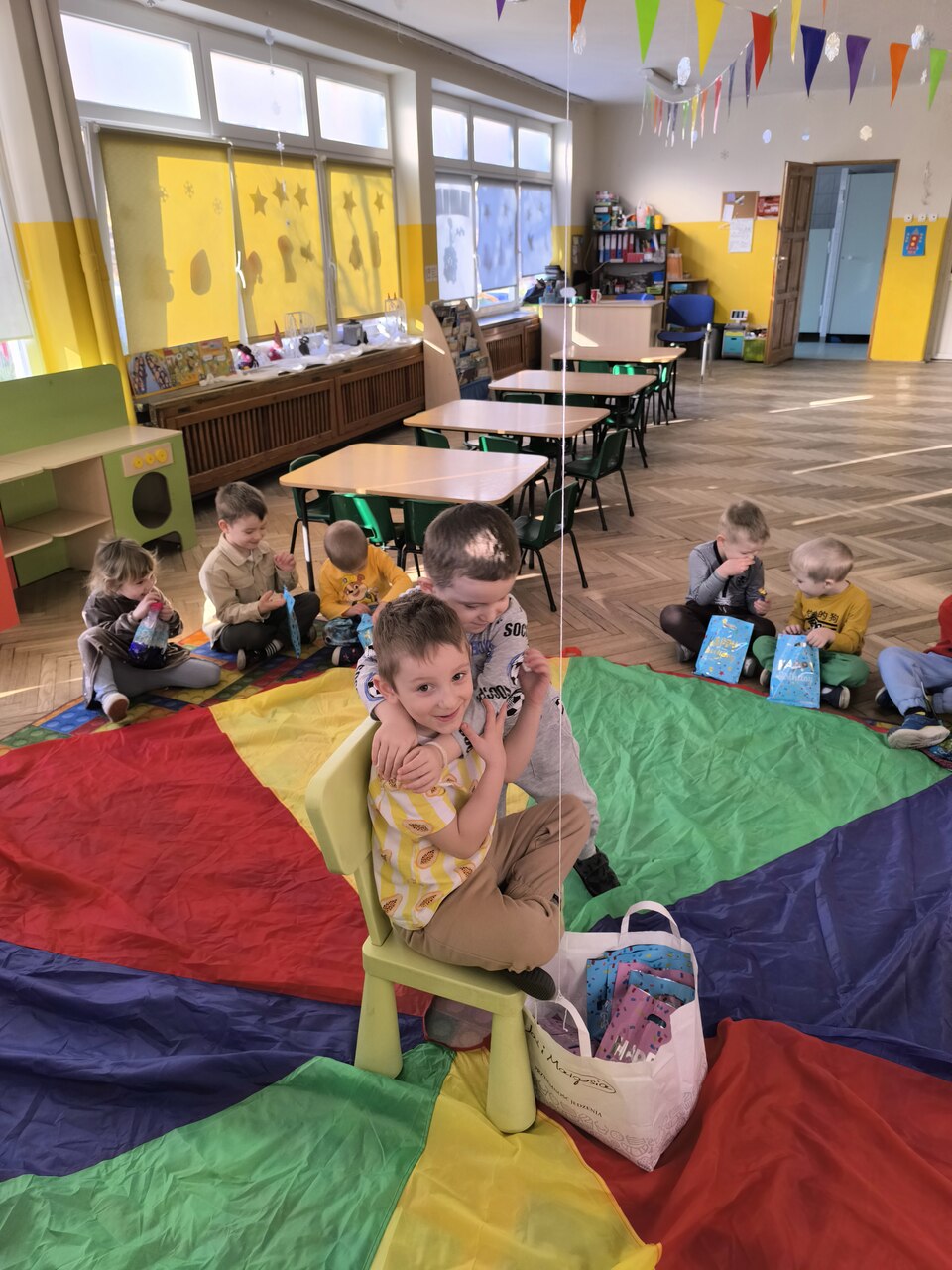 Dzieci świętują swoje urodziny w domu z rodziną, ale wiele radości sprawia im także kiedy mogą bawić się wspólnie z koleżankami i kolegami w przedszkolu. Tym razem swoje święto miał: Kacper! Na początku dzieci zaprosiły jubila na specjalnie przygotowane krzesło. Wspólnie zaśpiewaliśmy słynne "STO LAT", złożyliśmy życzenia urodzinowe i wręczyliśmy mały upominek, w postaci laurek wykonanych przez dzieci. Był czas na słodki poczęstunek i zabawę przy muzyce. Dzieci bawiły się wspaniale. Jeszcze raz składamy najlepsze życzenia!