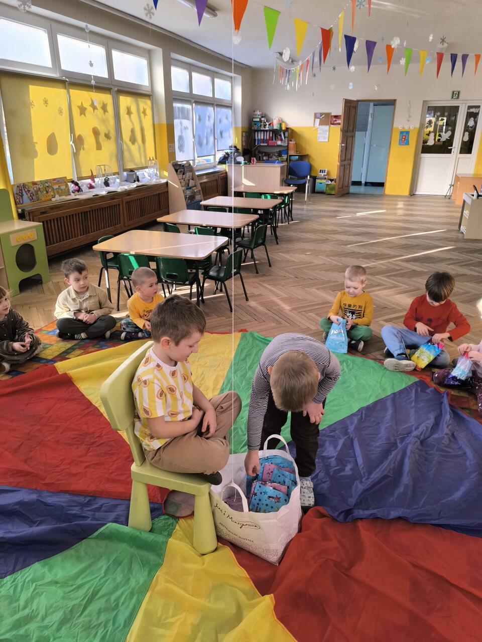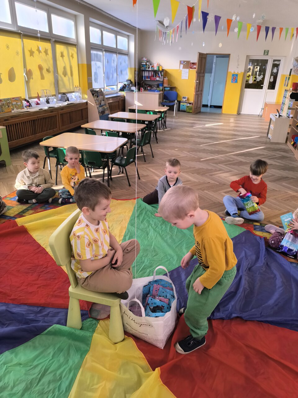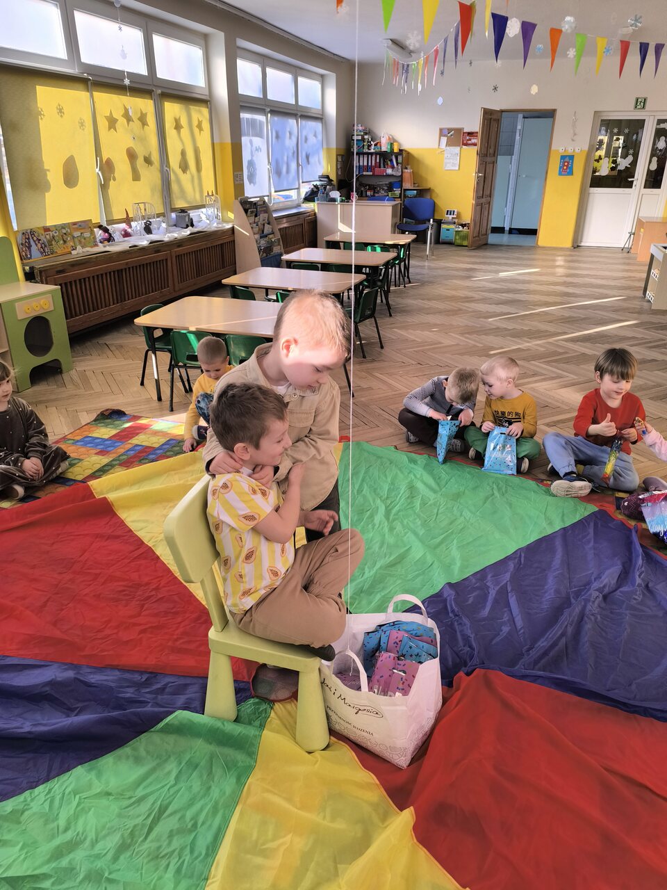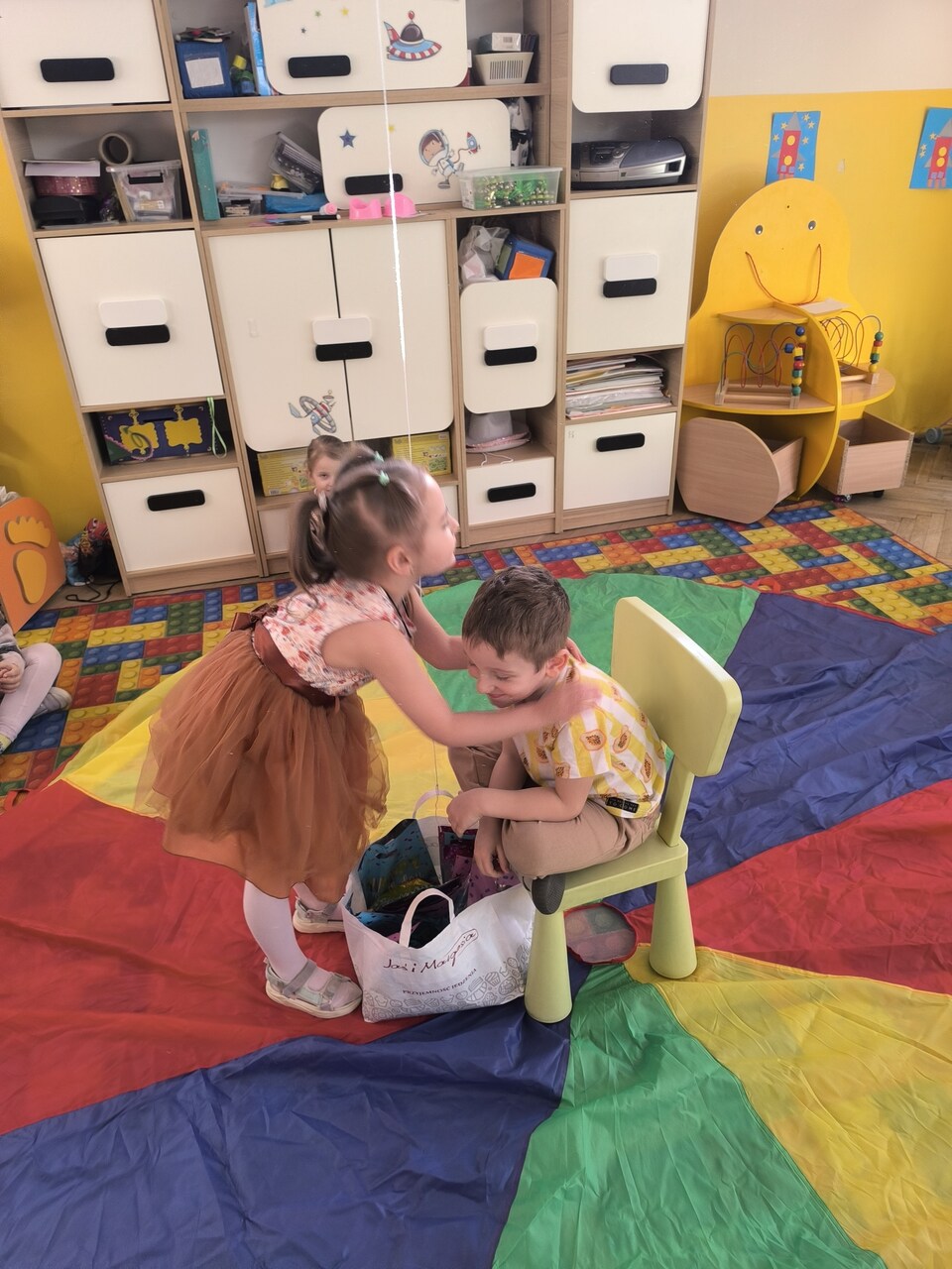 Dzieci świętują swoje urodziny w domu z rodziną, ale wiele radości sprawia im także kiedy mogą bawić się wspólnie z koleżankami i kolegami w przedszkolu. Tym razem swoje święto miał: Kacper! Na początku dzieci zaprosiły jubila na specjalnie przygotowane krzesło. Wspólnie zaśpiewaliśmy słynne "STO LAT", złożyliśmy życzenia urodzinowe i wręczyliśmy mały upominek, w postaci laurek wykonanych przez dzieci. Był czas na słodki poczęstunek i zabawę przy muzyce. Dzieci bawiły się wspaniale. Jeszcze raz składamy najlepsze życzenia!