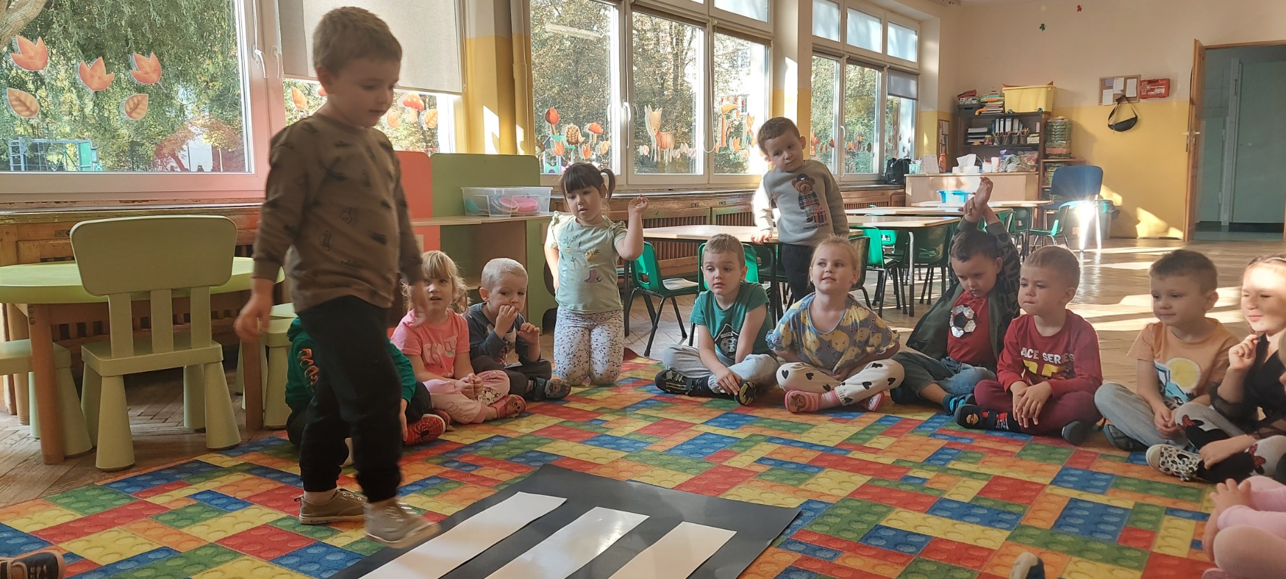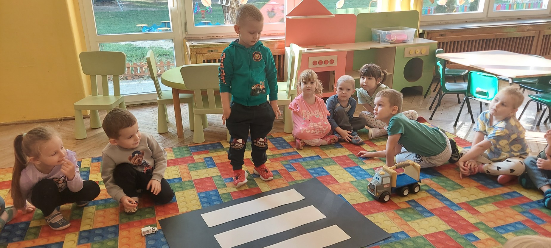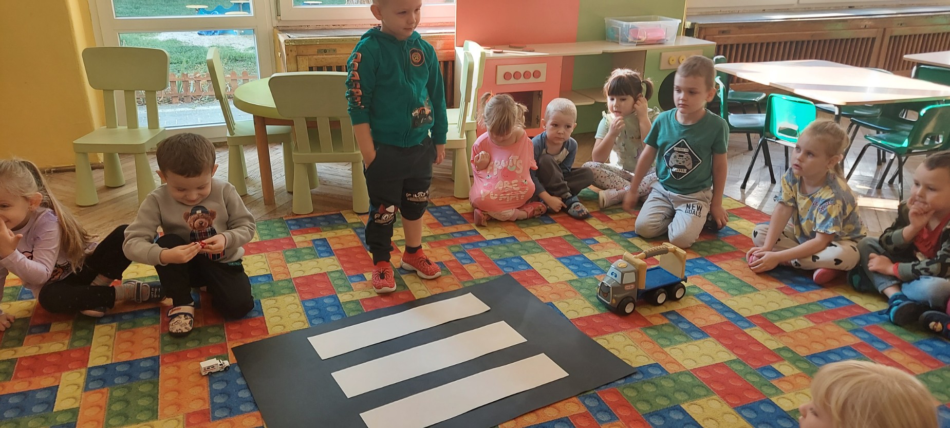 W październiku utrwalaliśmy zasady bezpiecznego poruszania się po drogach. Z pomocą różnych rekwizytów i zabawkowych pojazdów uczyliśmy się, jak być bezpiecznymi uczestnikami ruchu drogowego. To była świetna zabawa i cenna nauka!