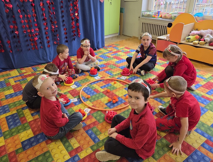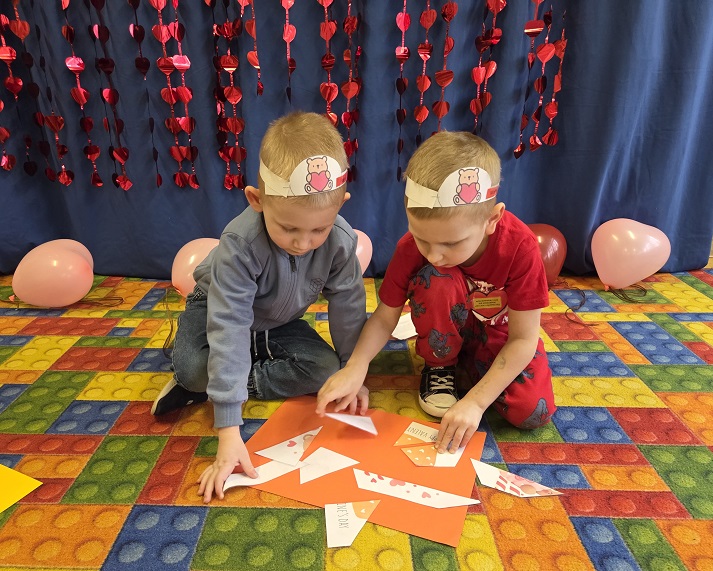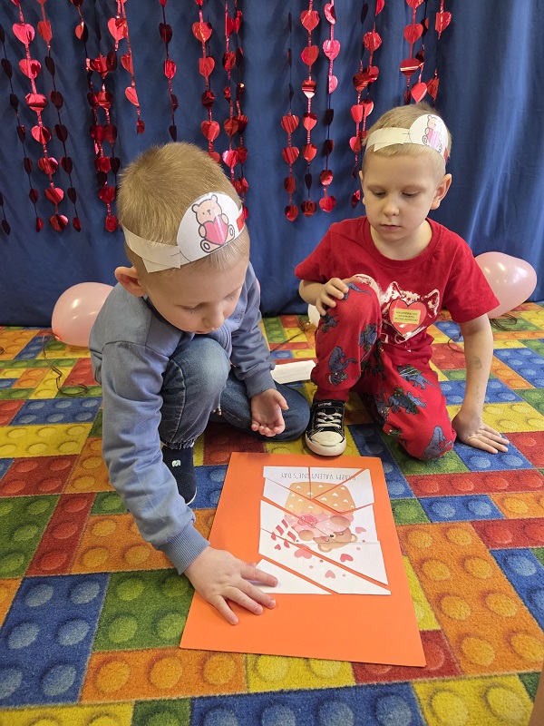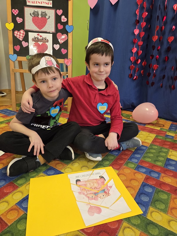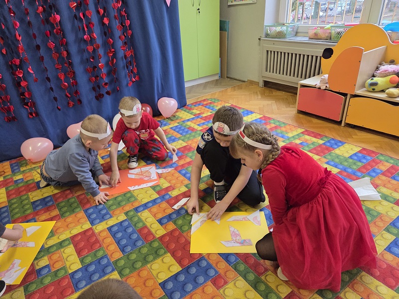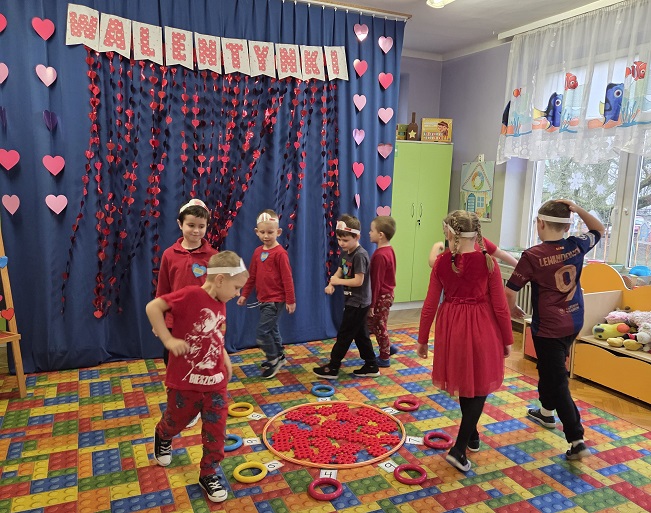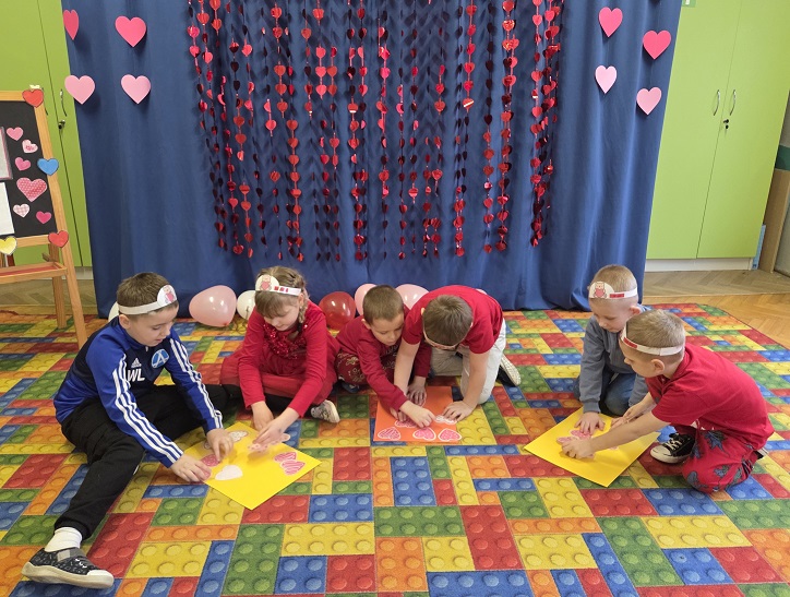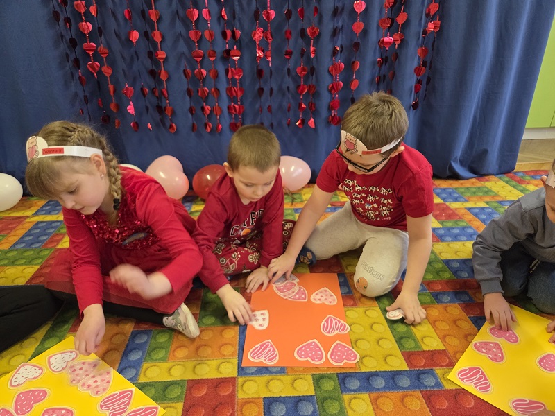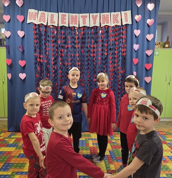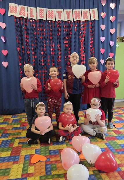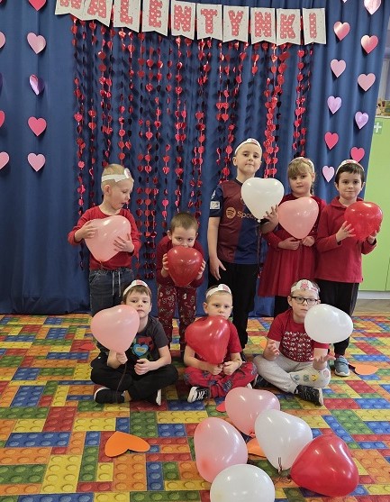 13 lutego 2026r. przedszkolaki z grupy Biedronek obchodziły Walentynki - dzień miłości, przyjaźni i serdeczności. W tym dniu dominował kolor czerwony, dzień wypełniony był atrakcjami i zabawami z serduszkami. Przedszkolaki szukały drugiej połówki serca, układały serca z literami, rozwiązywały zagadki i zadania matematyczne. Układały walentynkowe puzzle i tworzyły walentynkową kartkę. Były tańce z balonami w kształcie serca i wspólne pamiątkowe zdjęcie.