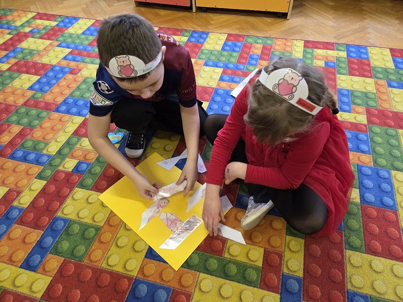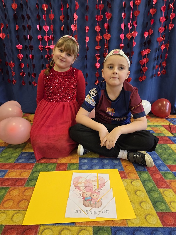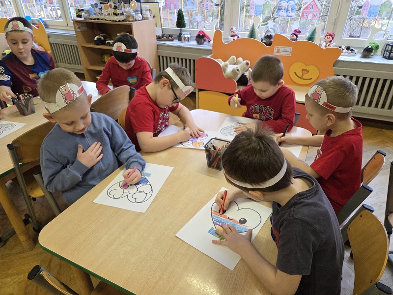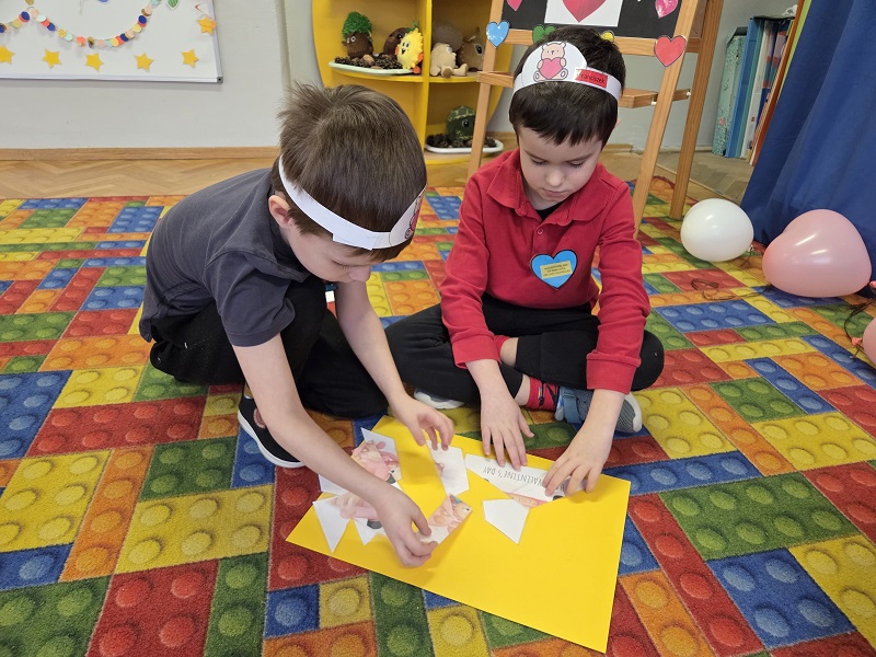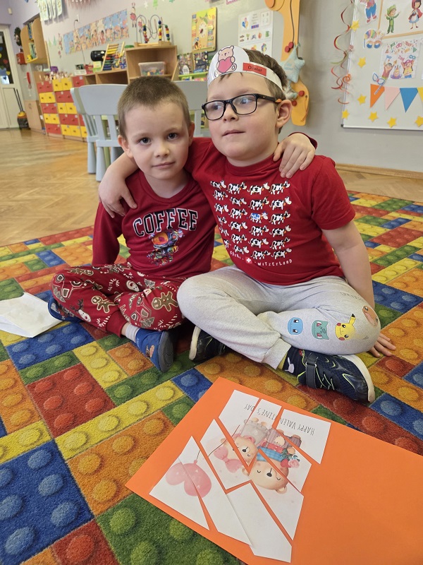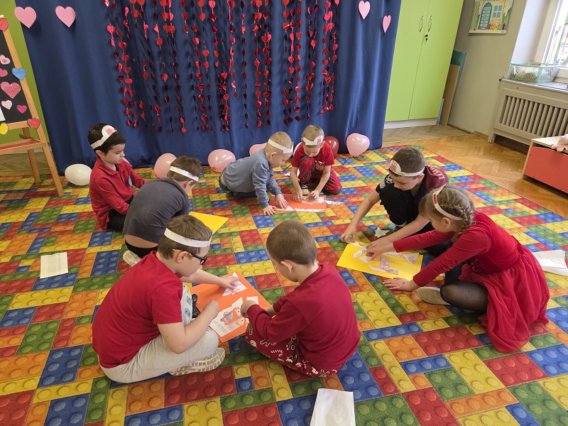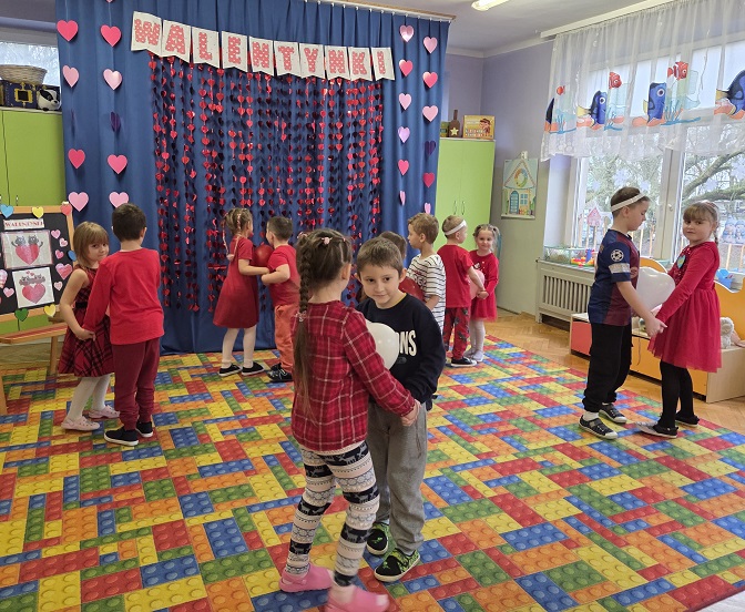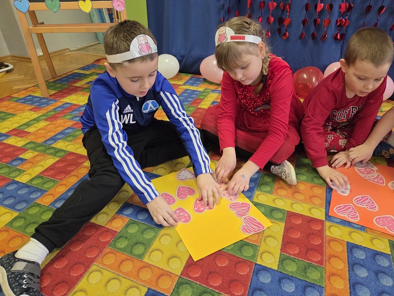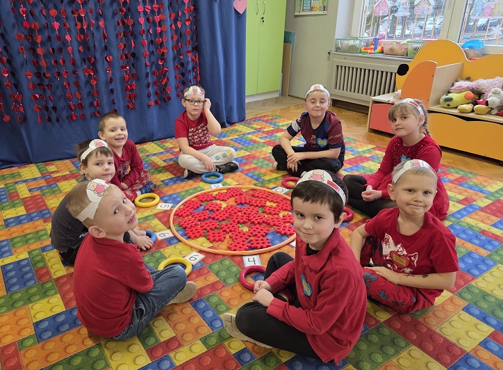 13 lutego 2026r. przedszkolaki z grupy Biedronek obchodziły Walentynki - dzień miłości, przyjaźni i serdeczności. W tym dniu dominował kolor czerwony, dzień wypełniony był atrakcjami i zabawami z serduszkami. Przedszkolaki szukały drugiej połówki serca, układały serca z literami, rozwiązywały zagadki i zadania matematyczne. Układały walentynkowe puzzle i tworzyły walentynkową kartkę. Były tańce z balonami w kształcie serca i wspólne pamiątkowe zdjęcie.