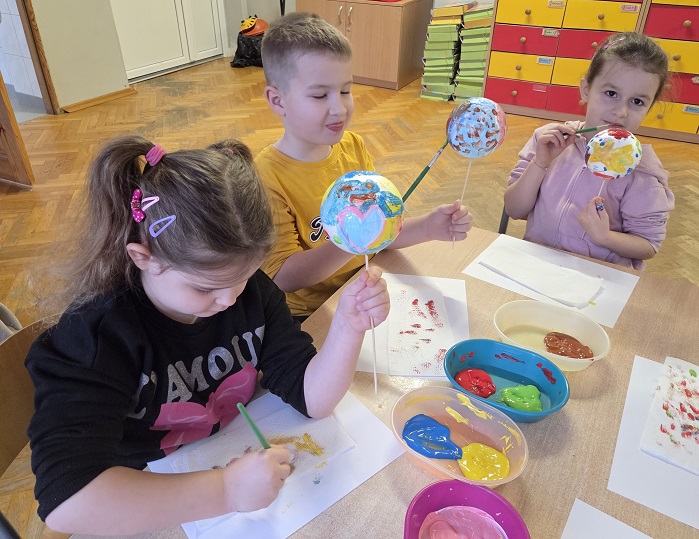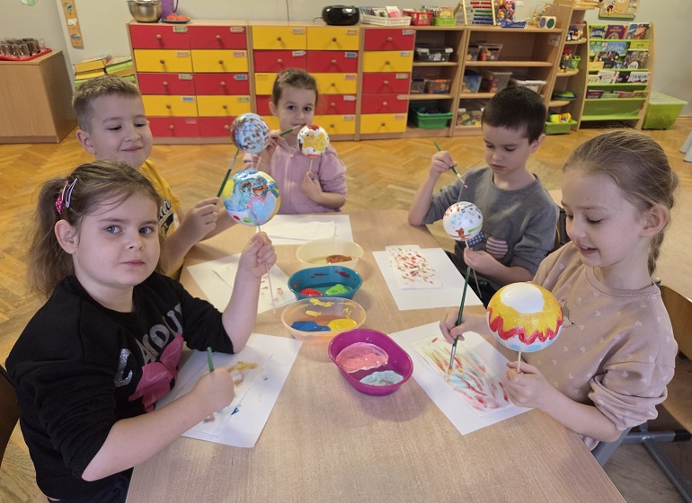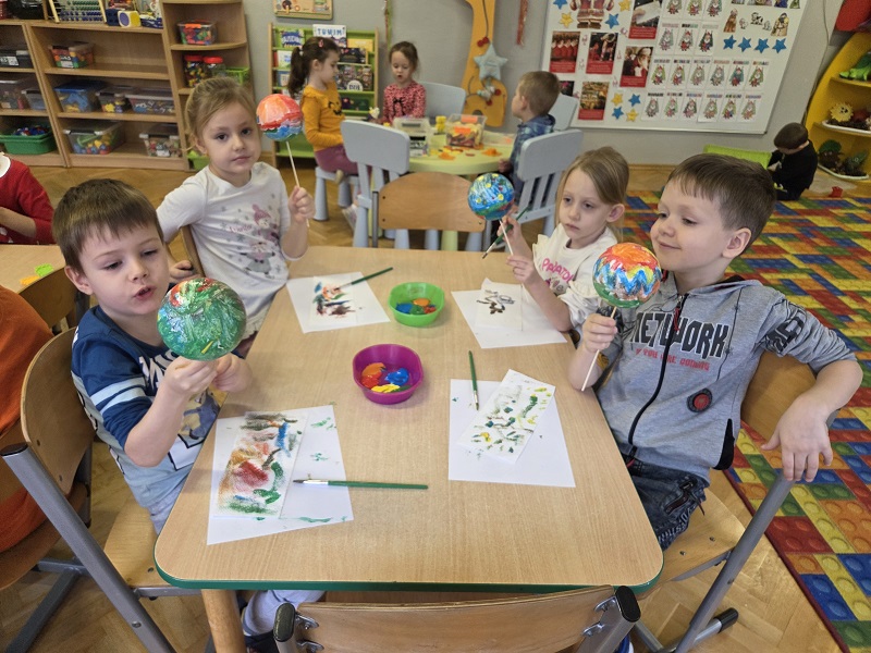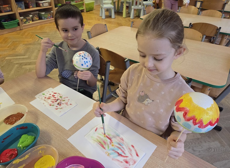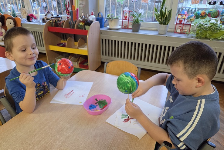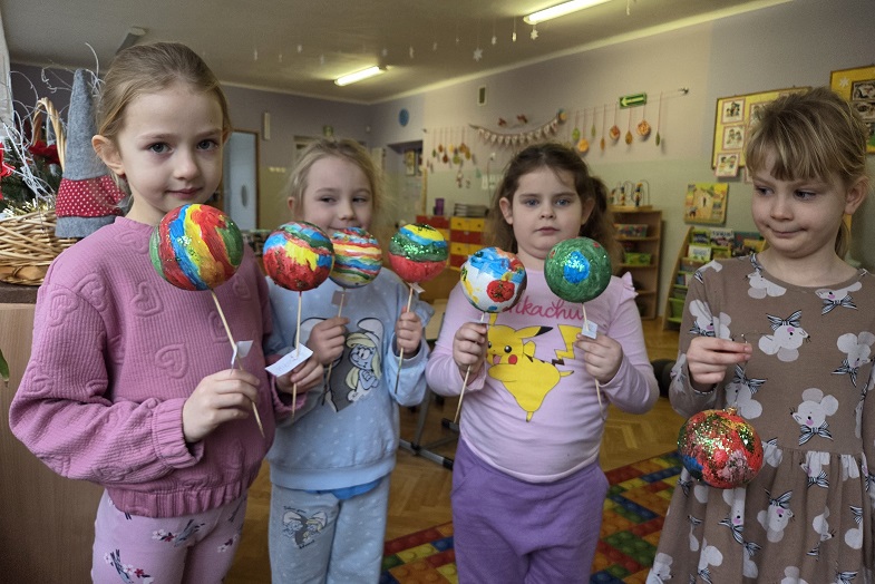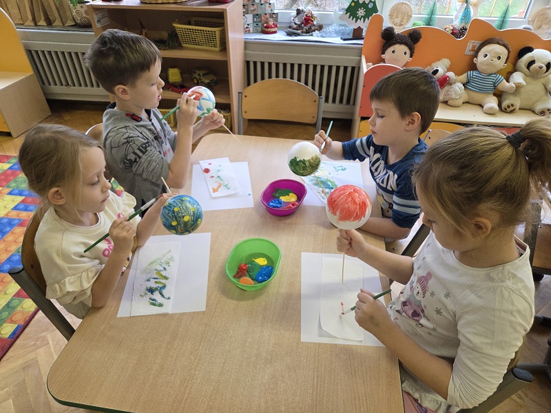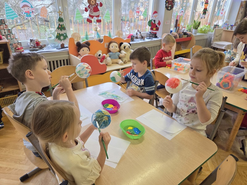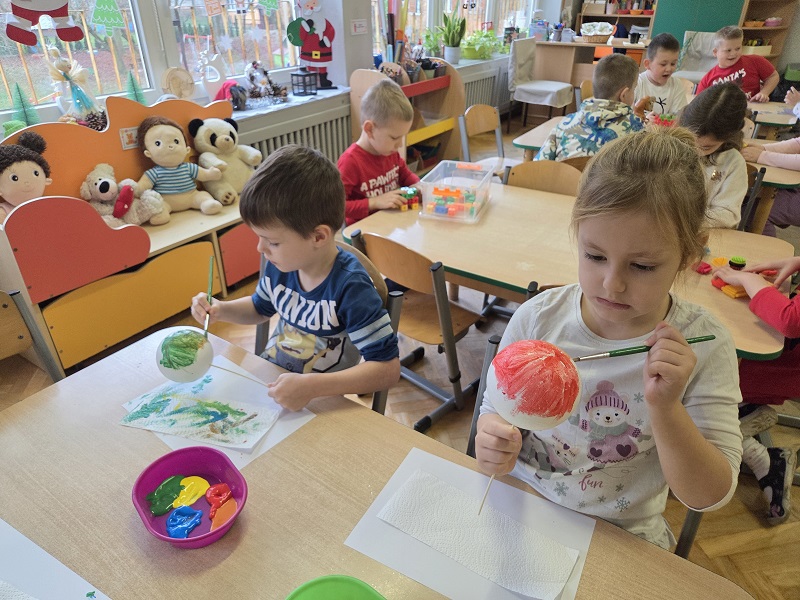 W dniu 11 grudnia 2025r. grupa Biedronek uczestniczyła w warsztatach malowania bombek. Dzieci poznały odrobinę historii tworzenia ozdób choinkowych, a następnie projektowały i tworzyły bombki techniką malowania farbą akrylową oraz brokatem. Dzieci poczuły prawdziwą magię świąt Bożego Narodzenia.