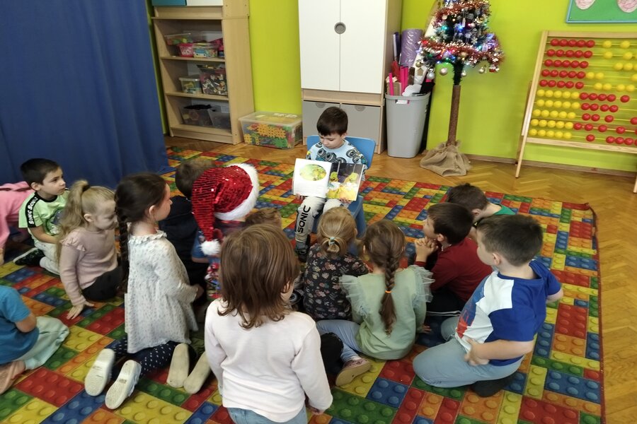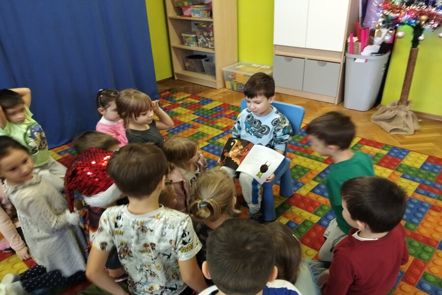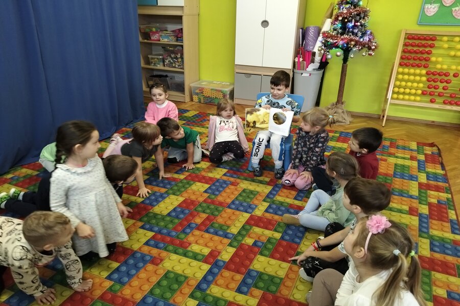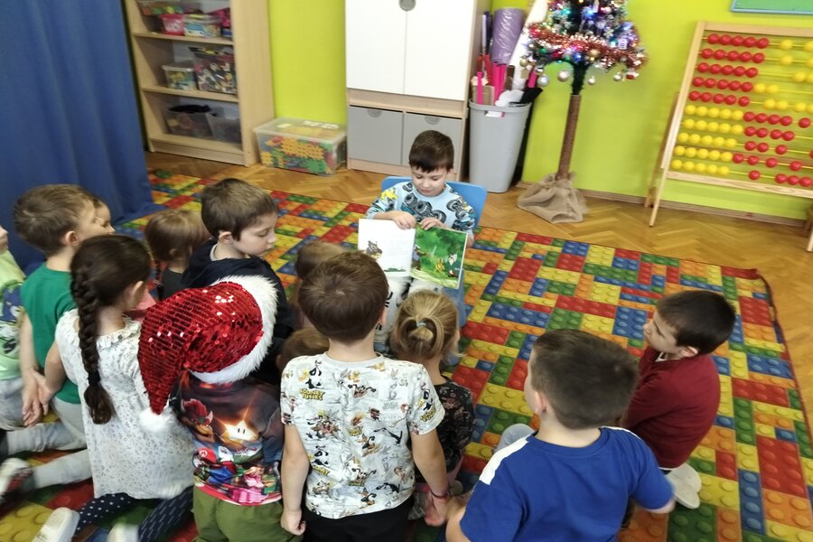 Truskawki nadal realizują rozpoczęty cykl pt.,,Wędrująca książka'', w ramach realizowanej w grupie Innowacji Pedagogicznej pt.,,Przedszkolak w krainie liter''. Przedszkolaki wybierają sobie książkę jaką czytają wspólnie w domu z rodzicami, rysują do niej ilustrację i potem w grupie opowiadają swoim kolegom i koleżankom przygody bohaterów wybranej przez siebie pozycji książkowej. Nasz Artem przeczytał w domu wybraną przez siebie książkę pt. ,,Franklin i skarb jeziora'', do której zrobił ilustrację wraz ze swoją babcią. Opowiadał o przygodach głównego bohatera i tym kto mu pomagał znaleźć skarb i gdzie, pokazując przy tym ilustracje w książce. Wszyscy słuchali z zaciekawieniem i czekają na dalsze opowieści innych bohaterów pozycji dla dzieci.