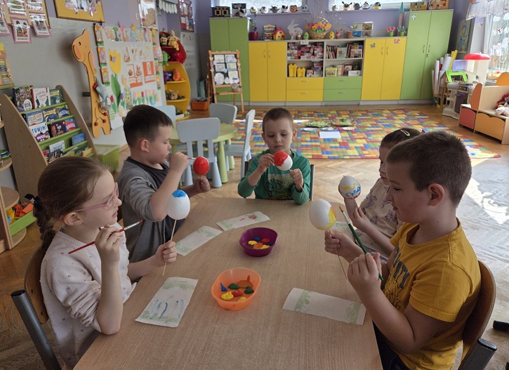 Wielkanoc to święto pełne tradycji i obyczajów, które sprawiają, że jest to wyjątkowy czas, a świąteczne dni są pełne niespodzianek. Przedszkolaki z grupy Biedronek malowały i ozdabiały jajka, tworzyły papierowe koszyczki i zajączki. Wykonanie różnych wielkanocnych ozdób sprawiło dzieciom wiele zabawy i radości.