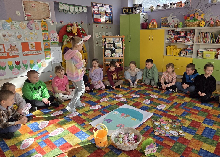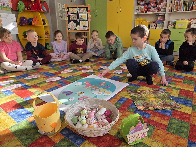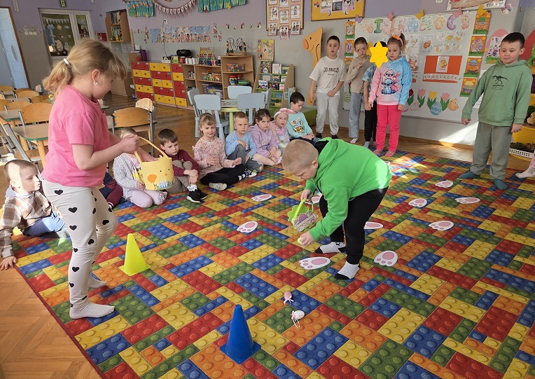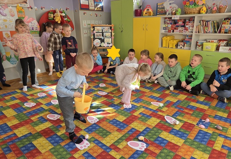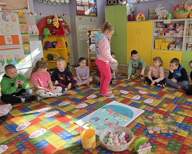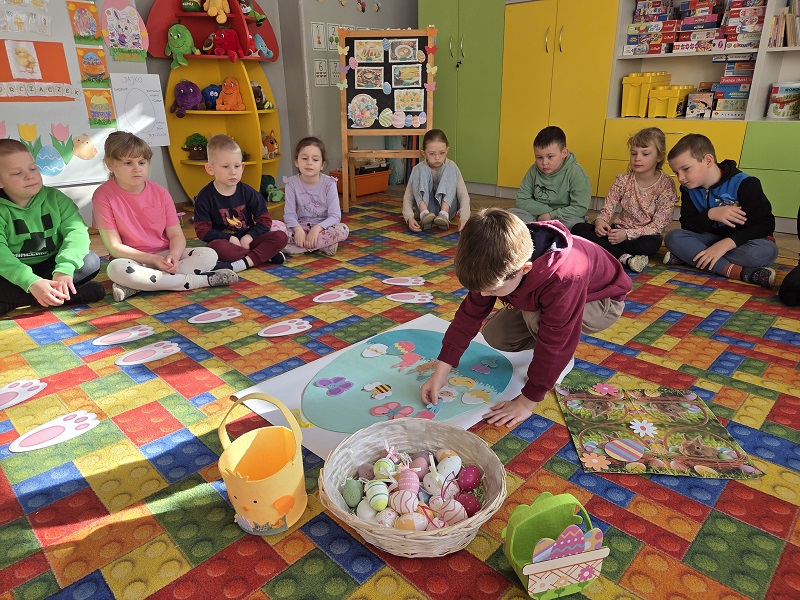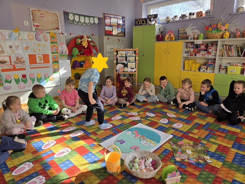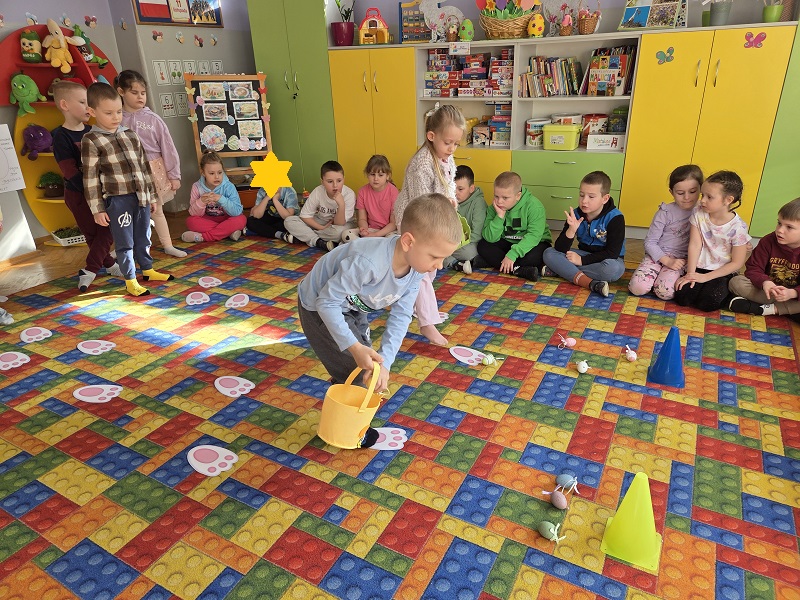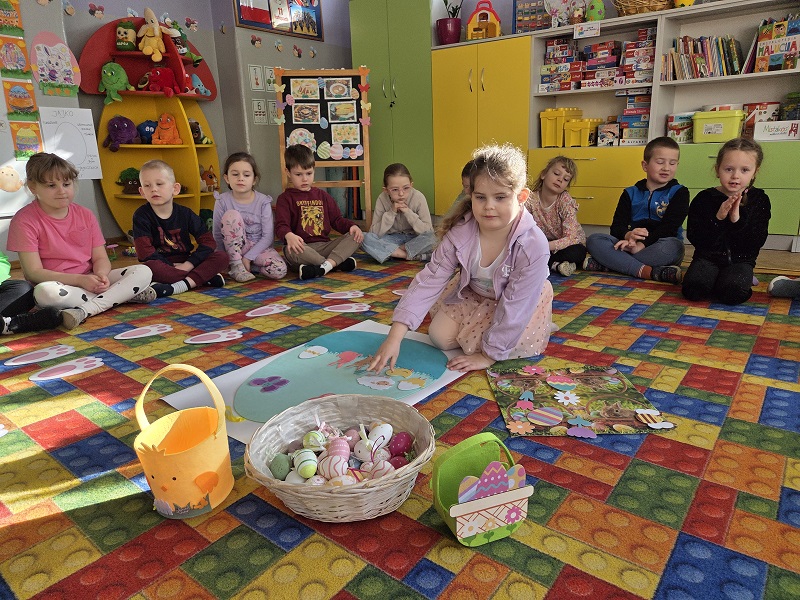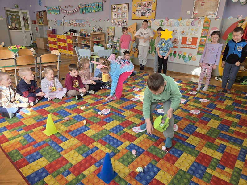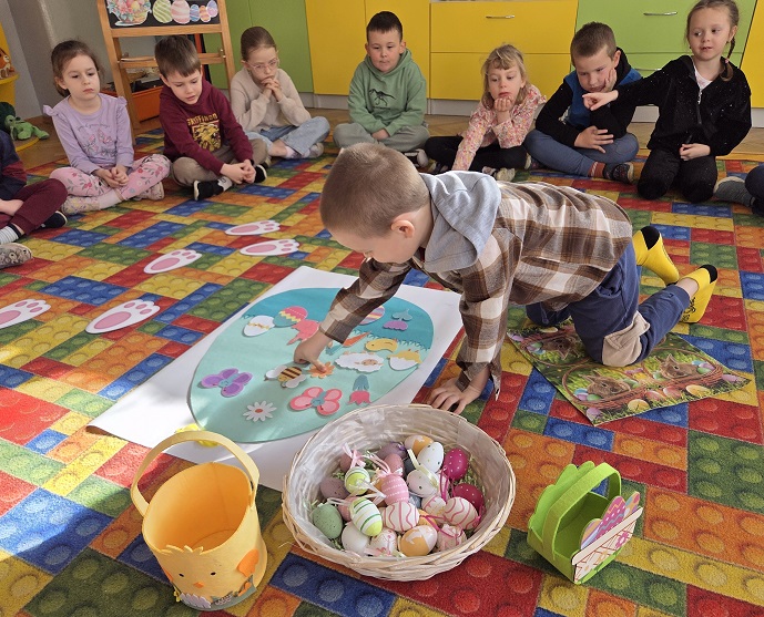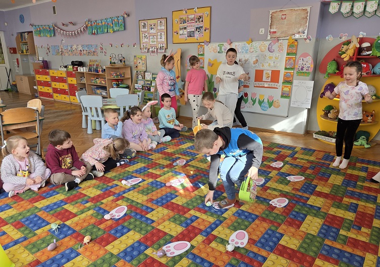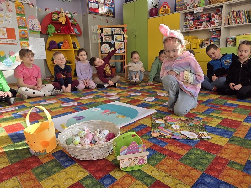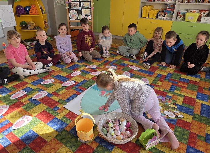 Wielkanoc, tuż, tuż.... z tej okazji przedszkolaki z grupy Biedronek uczestniczyły w zabawach z Wielkanocnym zajączkiem - szukały pianek, brały udział w wyścigach z koszyczkiem, ozdabiały wielkanocną pisankę i rozwiązywały zagadki od zajączka.