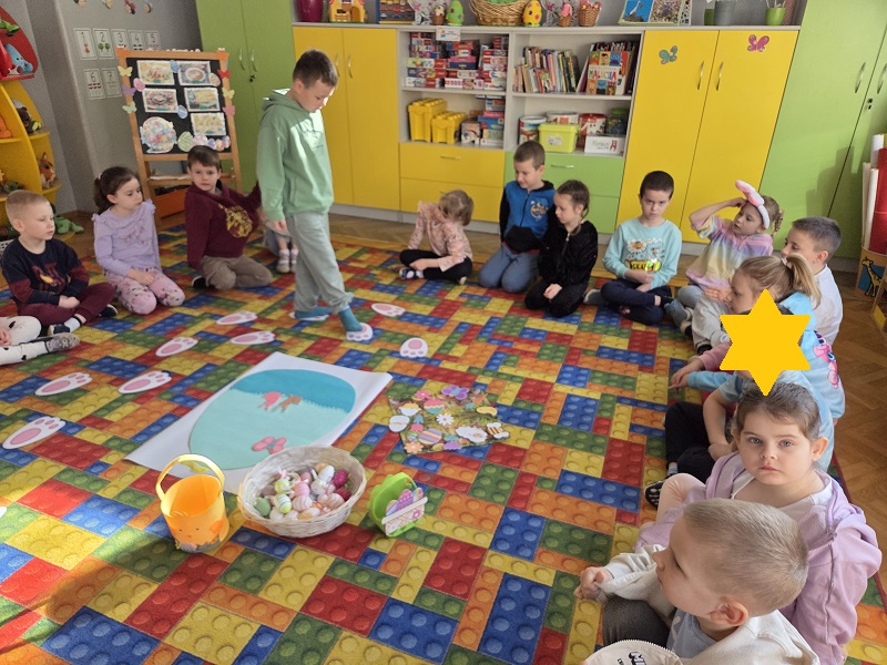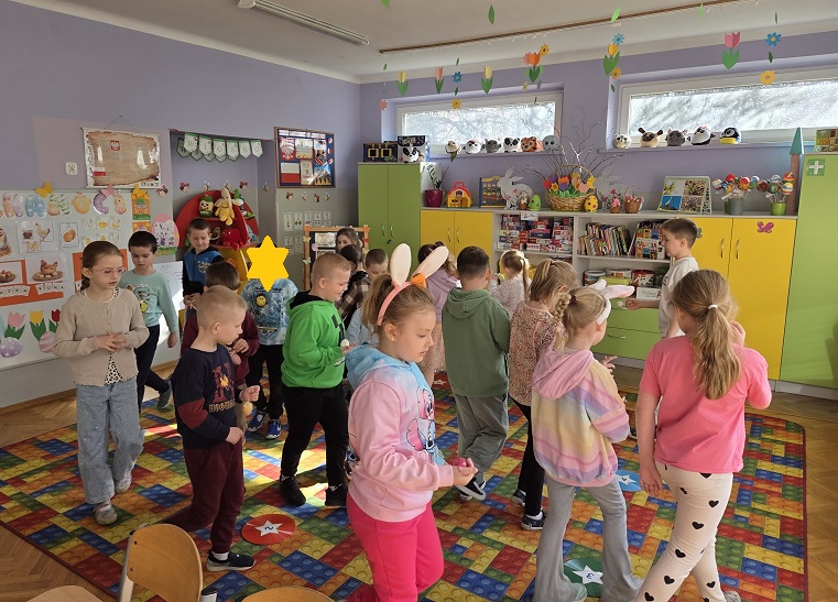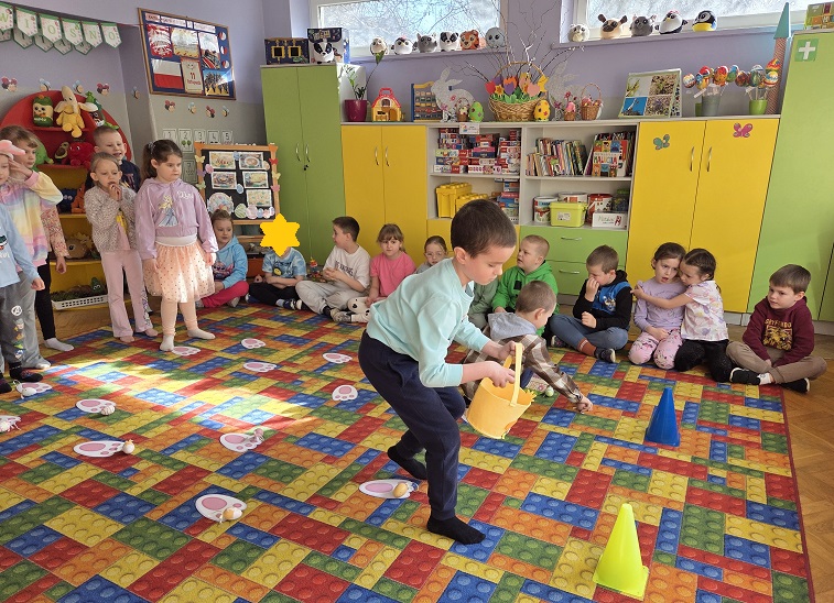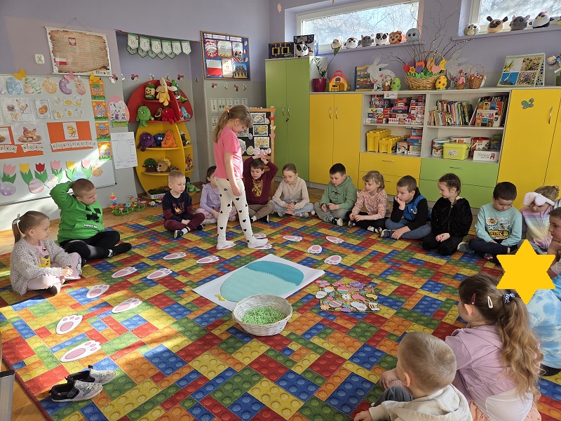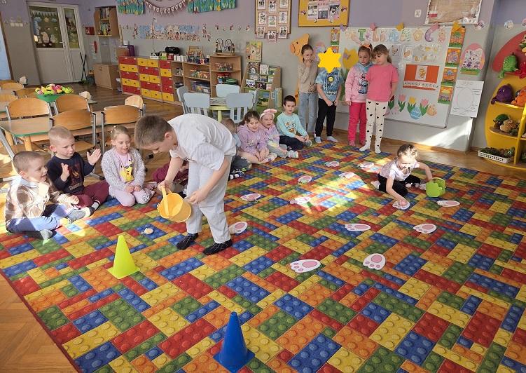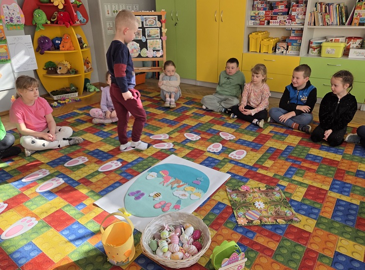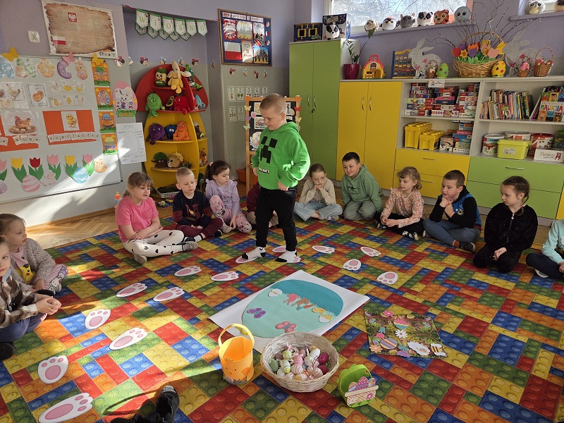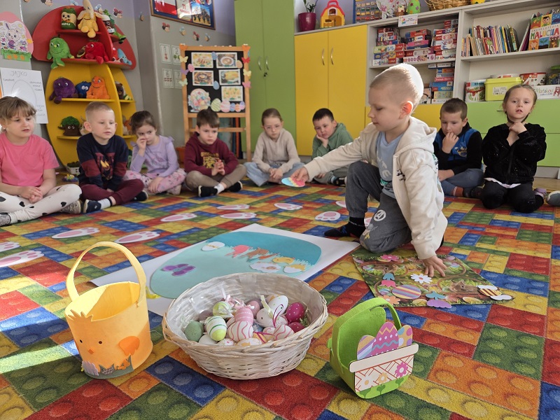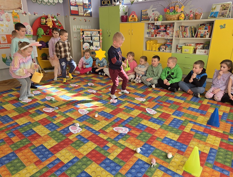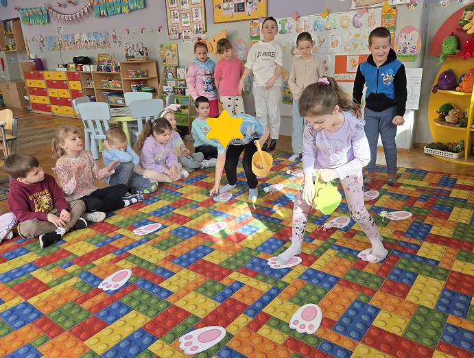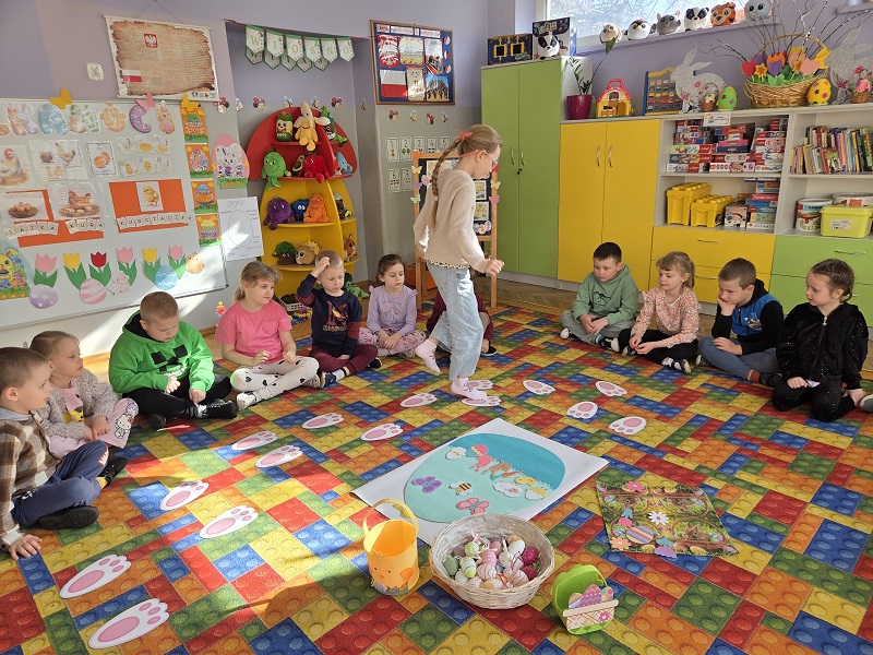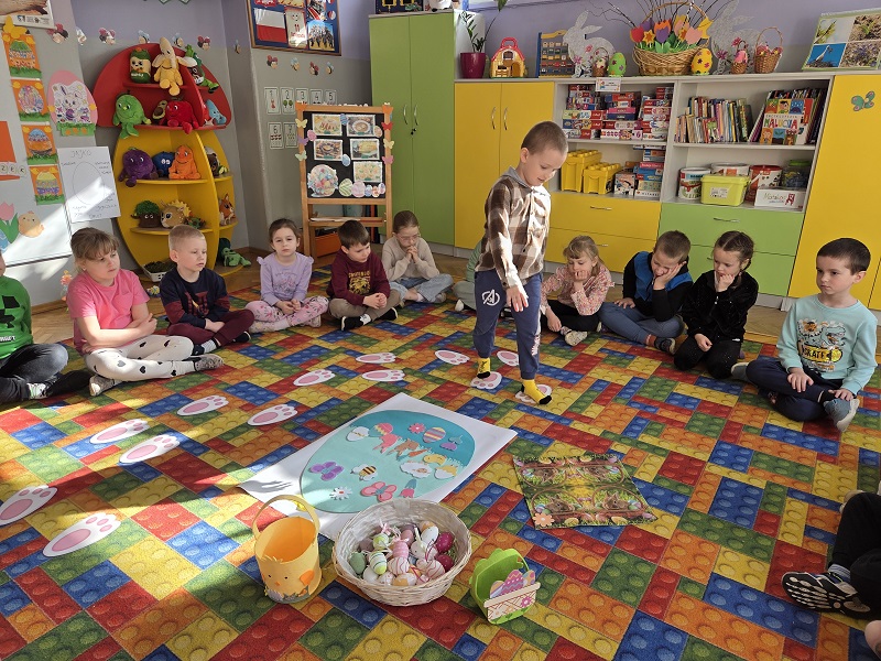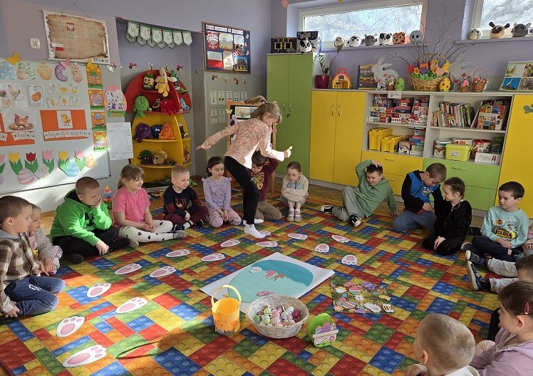 Wielkanoc, tuż, tuż.... z tej okazji przedszkolaki z grupy Biedronek uczestniczyły w zabawach z Wielkanocnym zajączkiem - szukały pianek, brały udział w wyścigach z koszyczkiem, ozdabiały wielkanocną pisankę i rozwiązywały zagadki od zajączka.