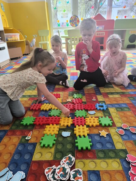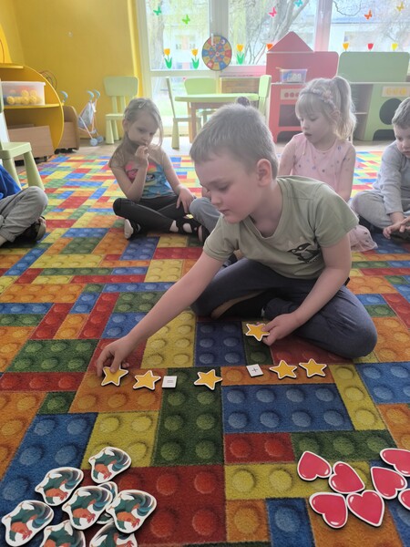 Dzieci z grupy "Motylek" bawiły się matematyką. Układaliśmy rymy, uczyliśmy się prostego kodowania oraz przeliczaliśmy elementy w zakresie 5 i więcej. Jak widać na zdjęciach wszyscy zadowoleni stwierdziliśmy, że szybko powtórzymy wiosenną matematykę :)