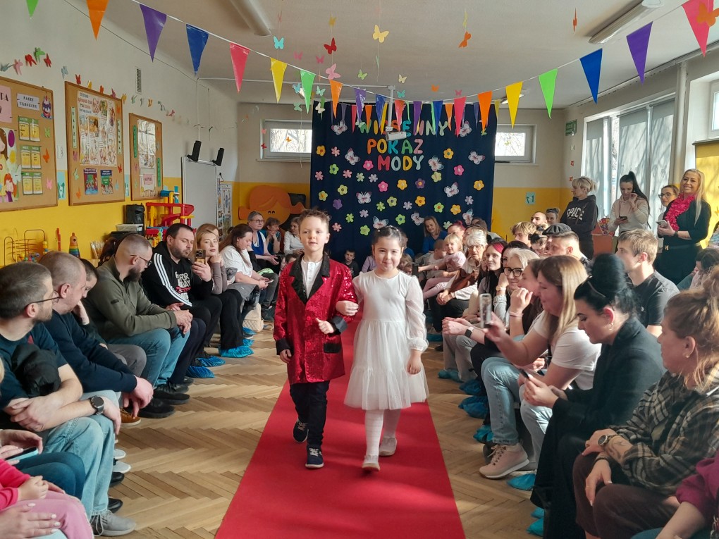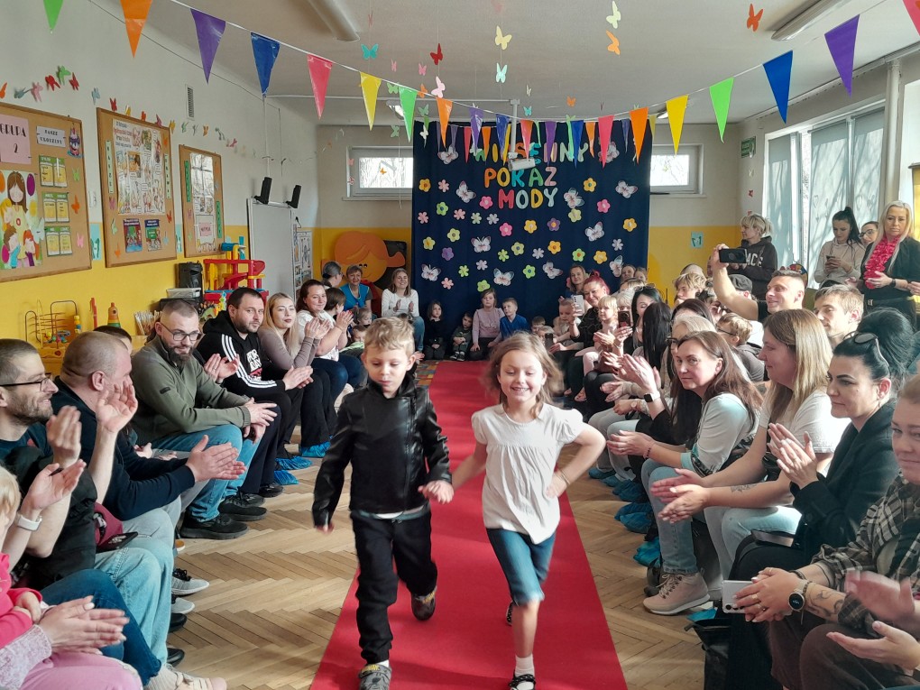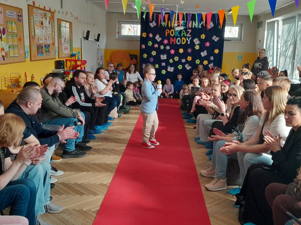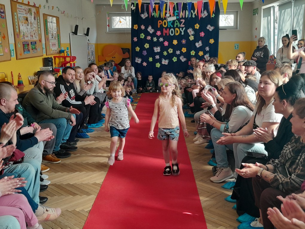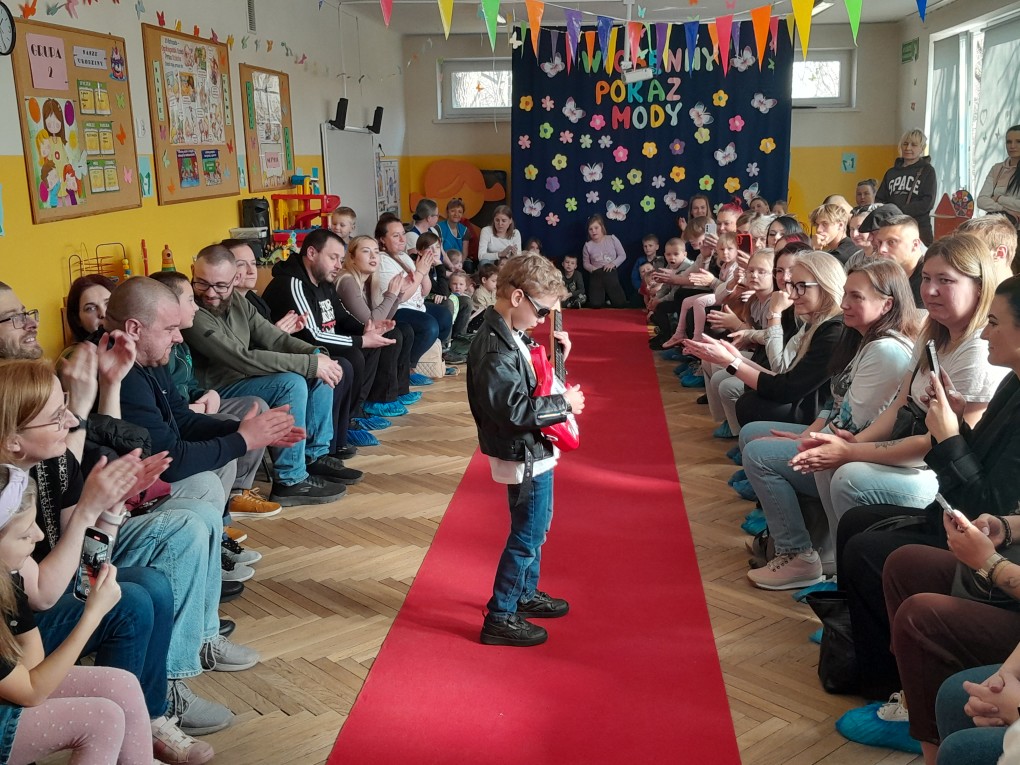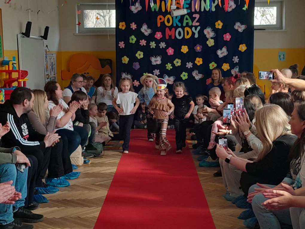 Mali modele i modelki z dumą przechadzali się po „wybiegu”, wzbudzając ogromny zachwyt publiczności. Wydarzenie było nie tylko świetną zabawą, ale także okazją do rozwijania wyobraźni i pewności siebie dzieci.