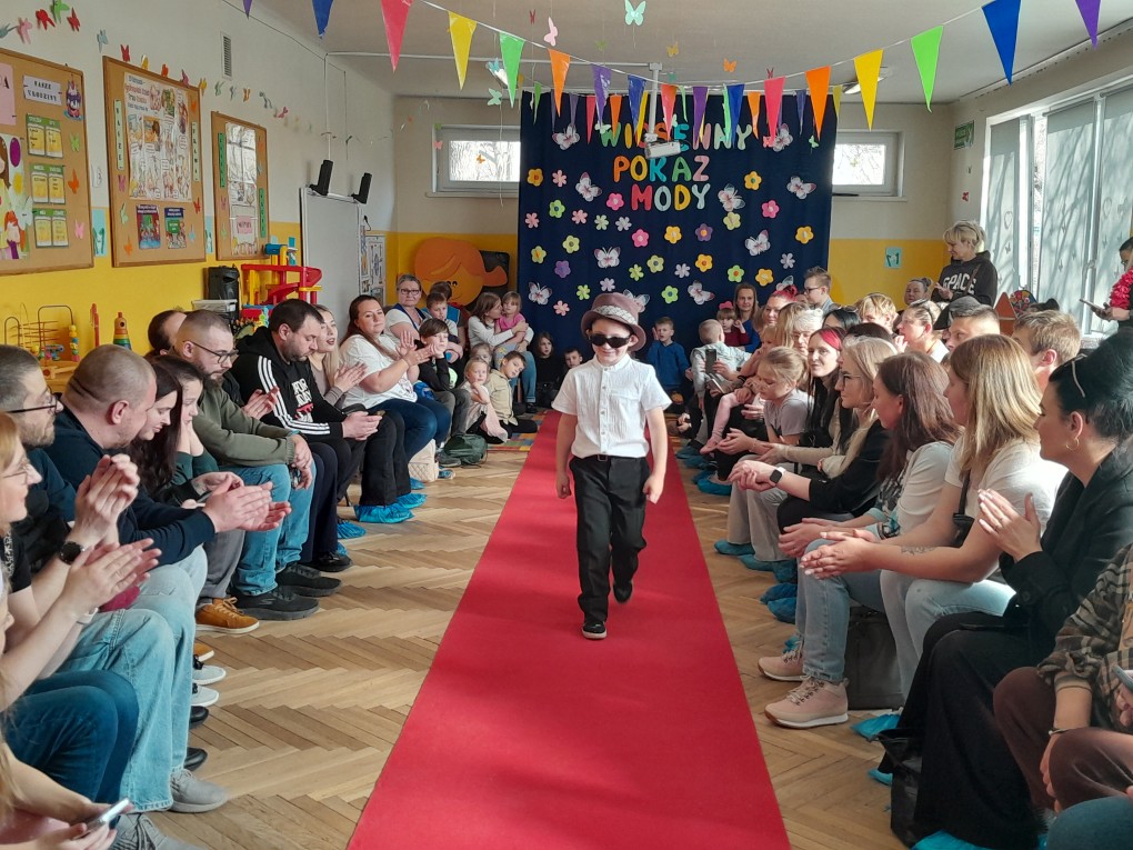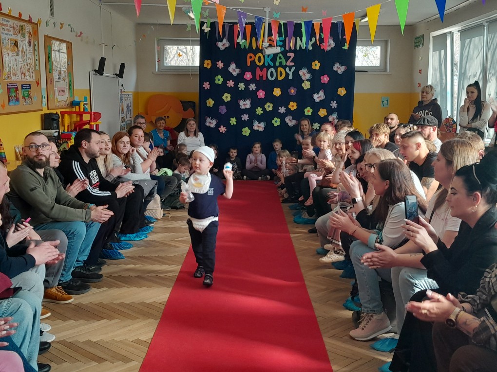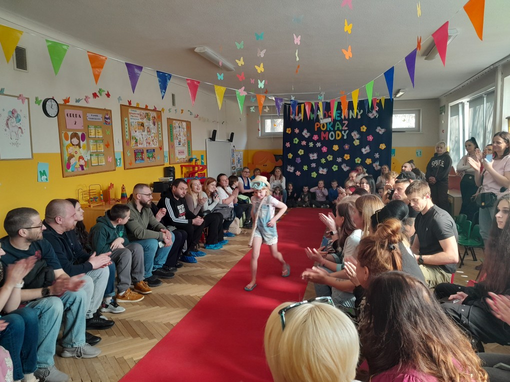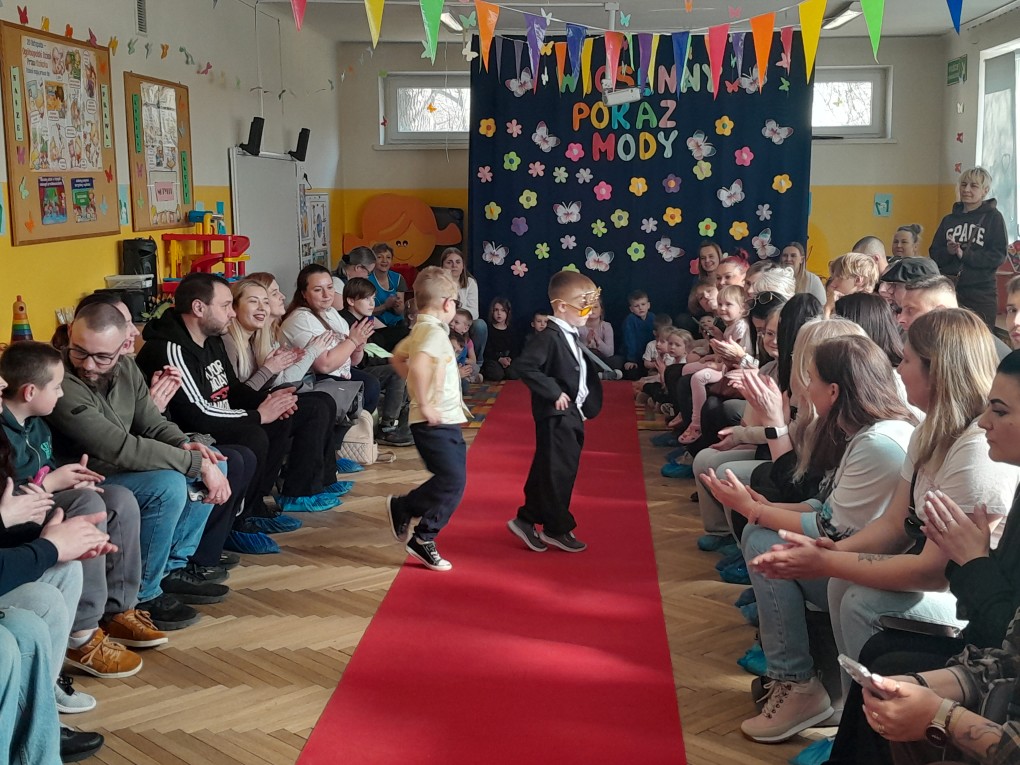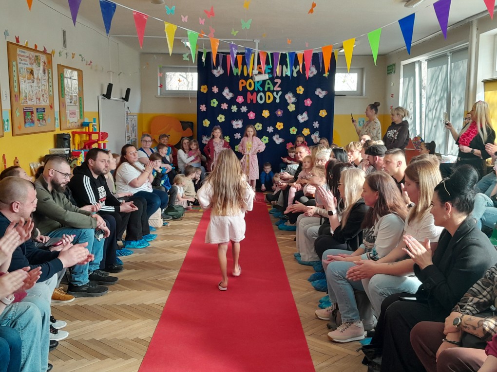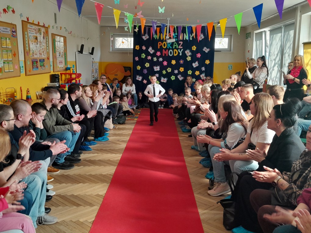 Mali modele i modelki z dumą przechadzali się po „wybiegu”, wzbudzając ogromny zachwyt publiczności. Wydarzenie było nie tylko świetną zabawą, ale także okazją do rozwijania wyobraźni i pewności siebie dzieci.