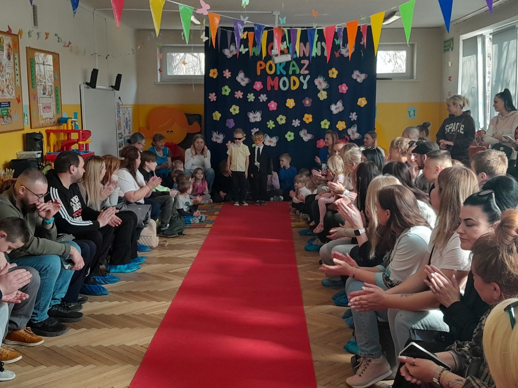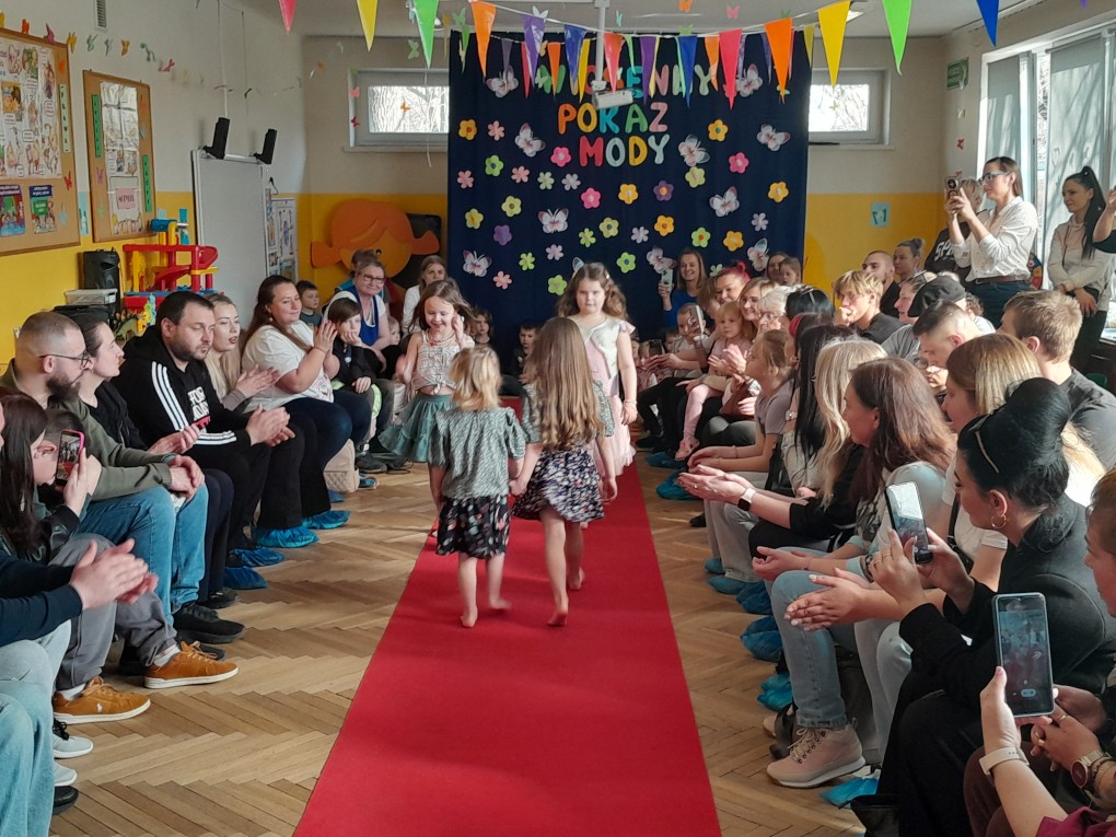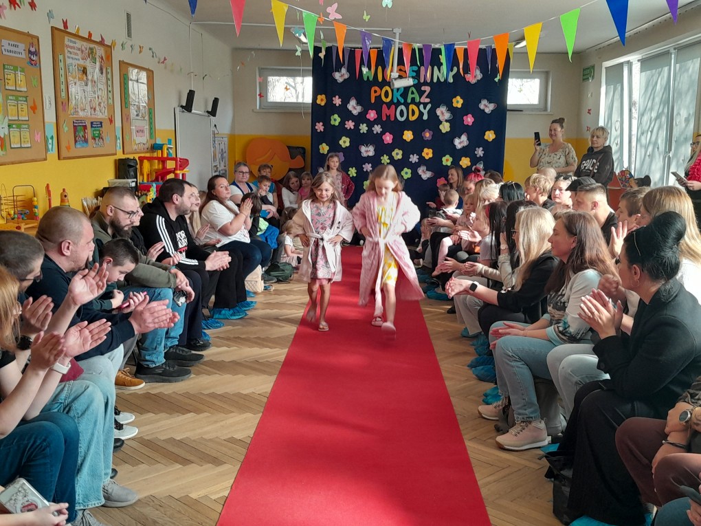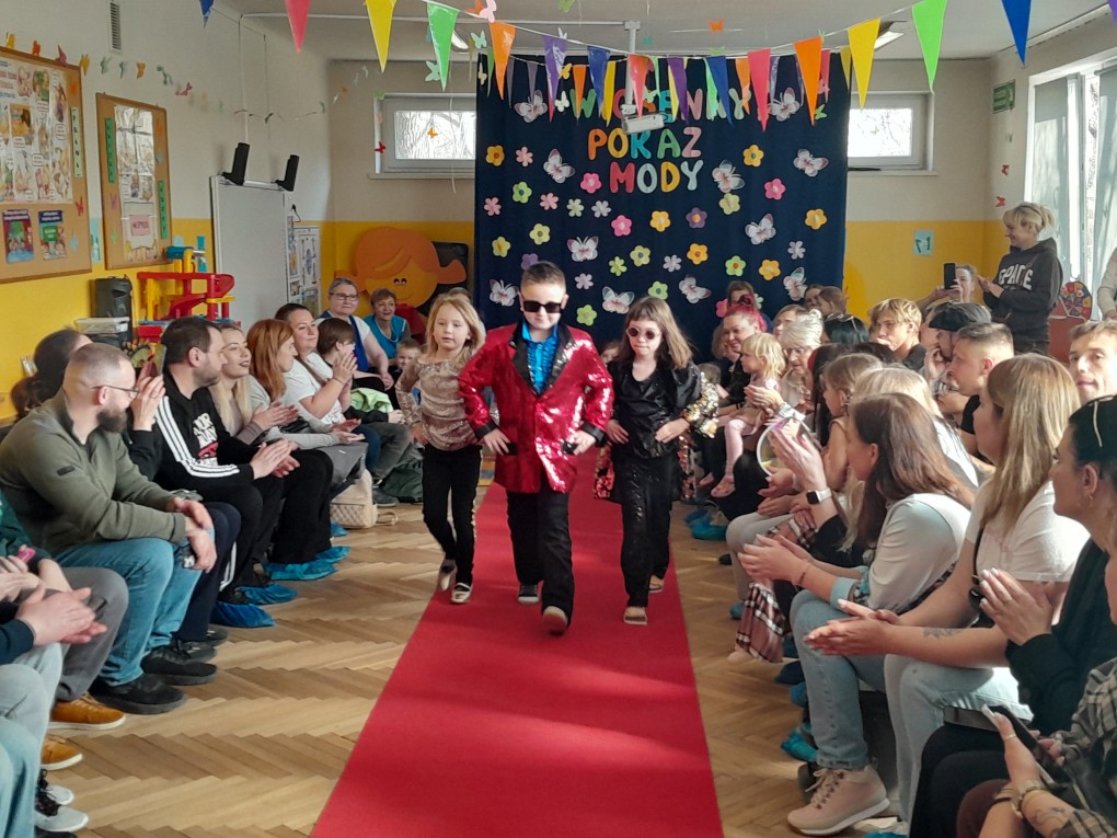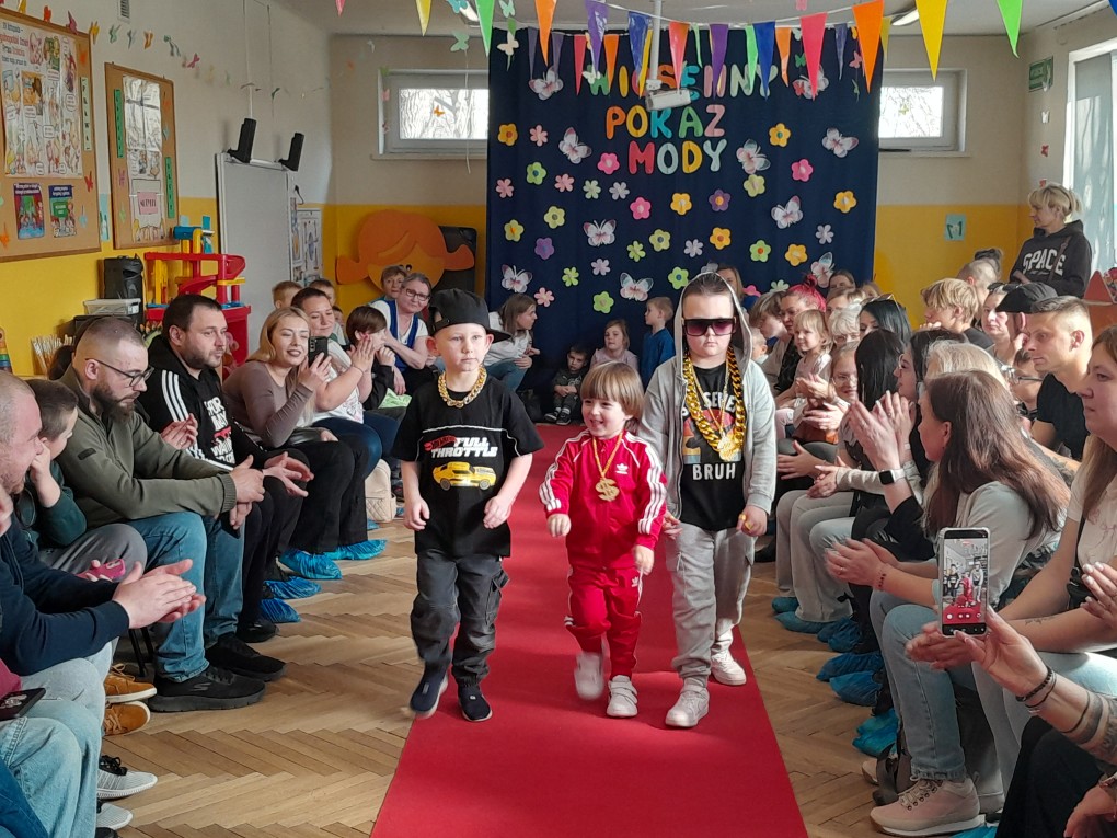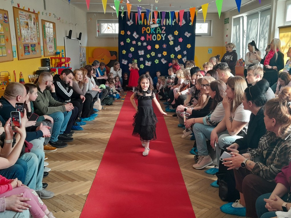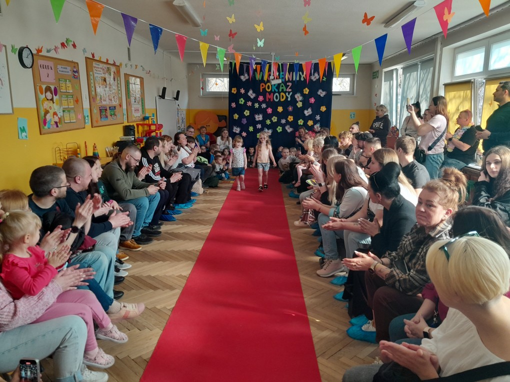 Mali modele i modelki z dumą przechadzali się po „wybiegu”, wzbudzając ogromny zachwyt publiczności. Wydarzenie było nie tylko świetną zabawą, ale także okazją do rozwijania wyobraźni i pewności siebie dzieci.
