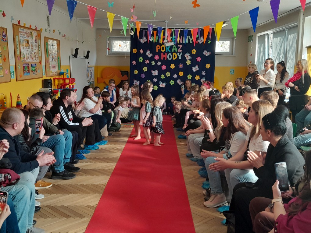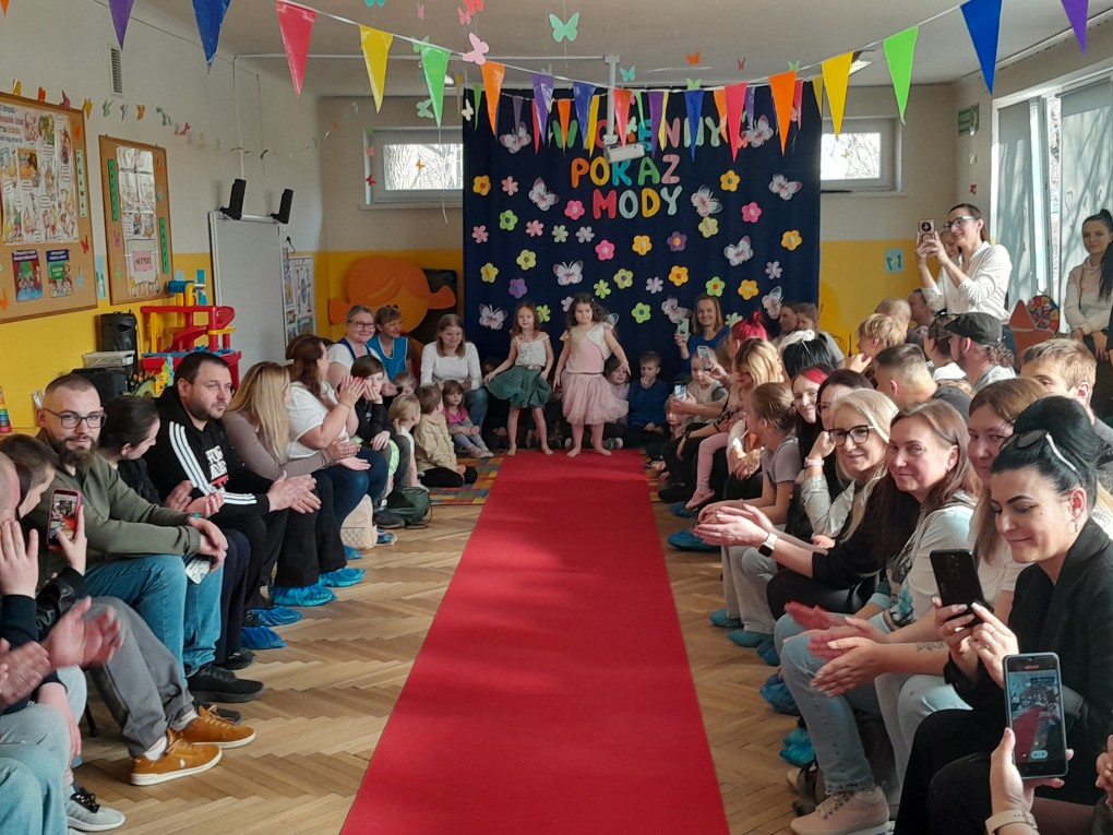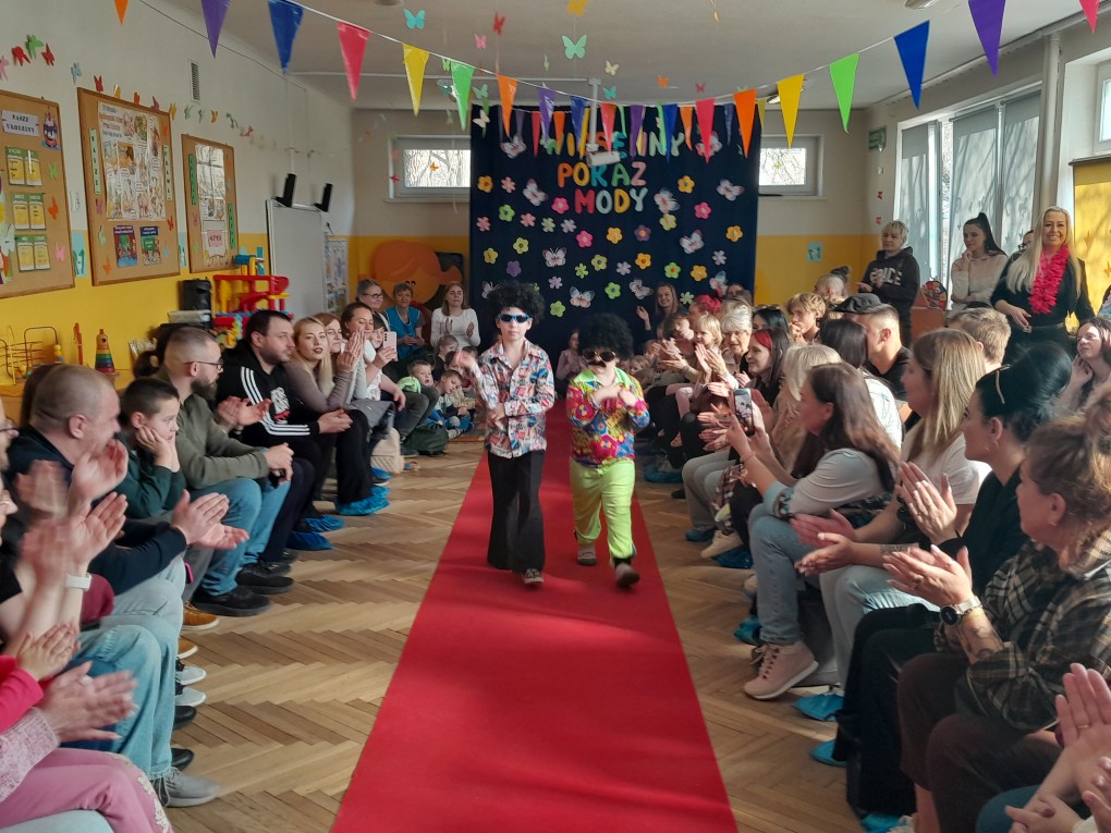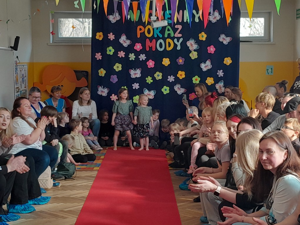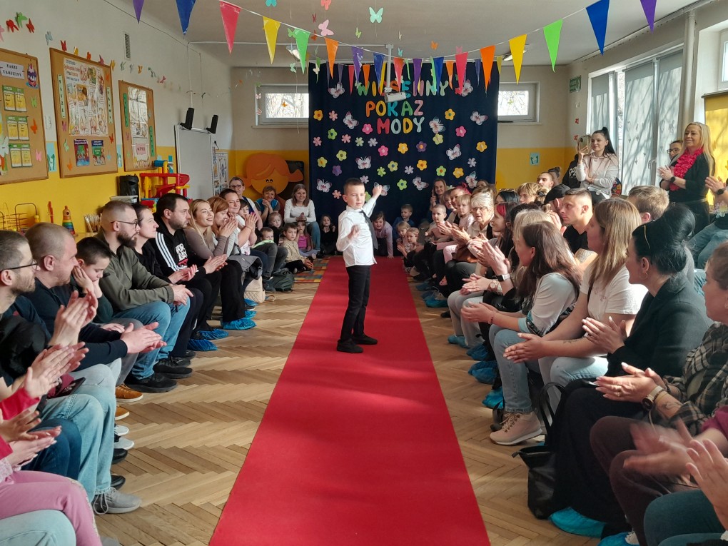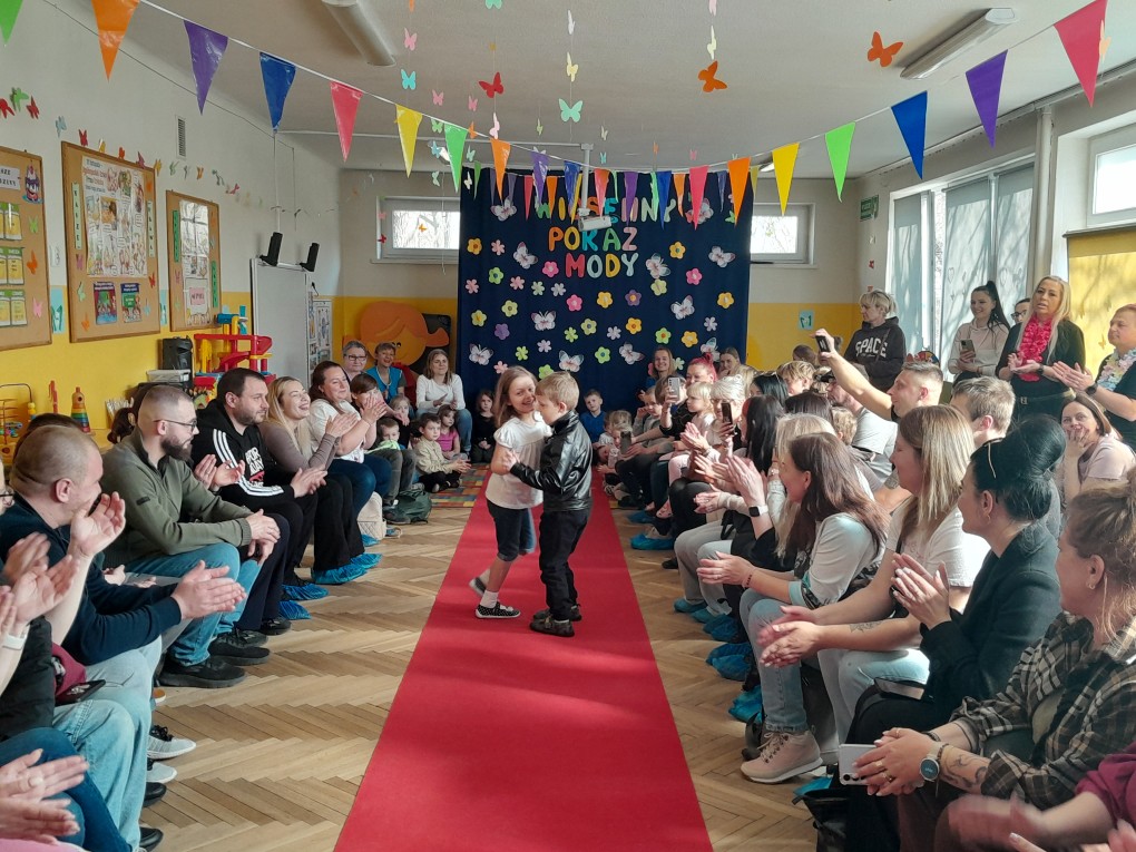 Mali modele i modelki z dumą przechadzali się po „wybiegu”, wzbudzając ogromny zachwyt publiczności. Wydarzenie było nie tylko świetną zabawą, ale także okazją do rozwijania wyobraźni i pewności siebie dzieci.