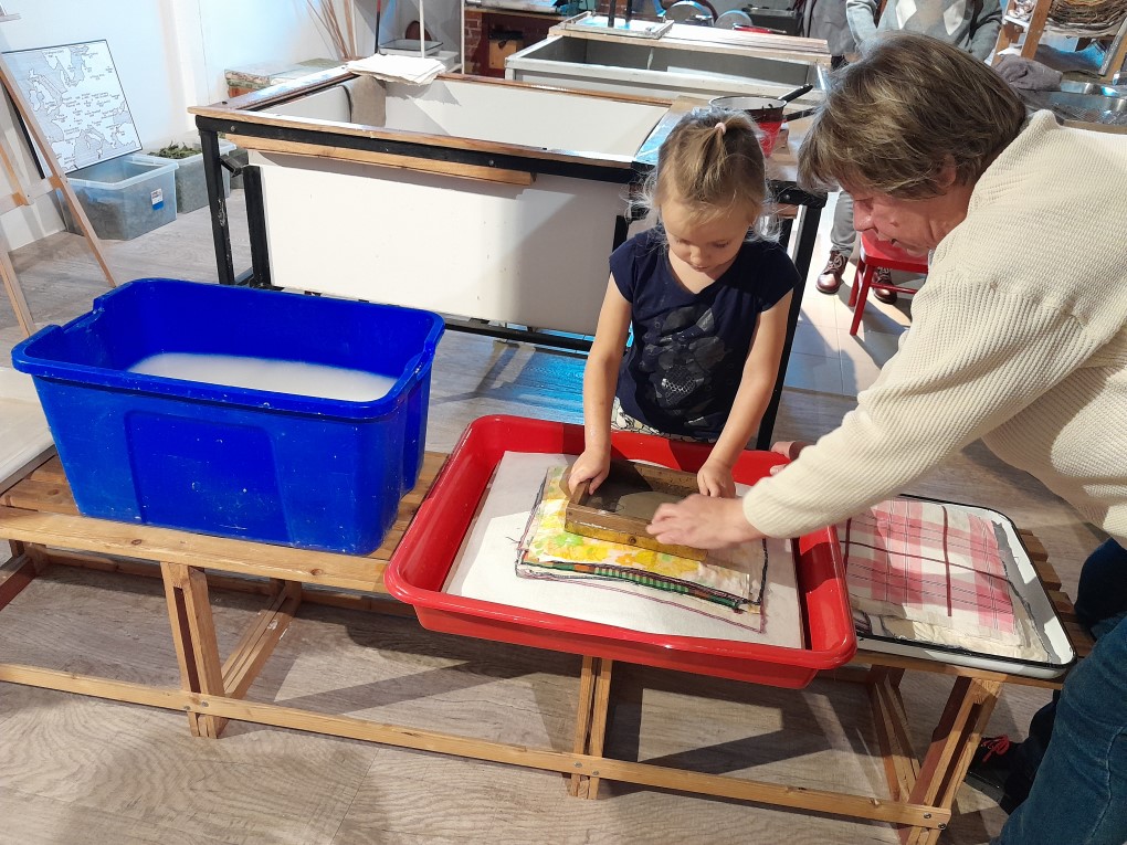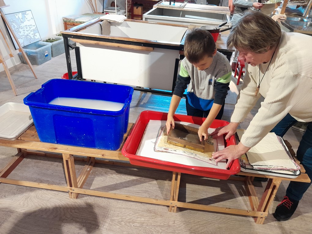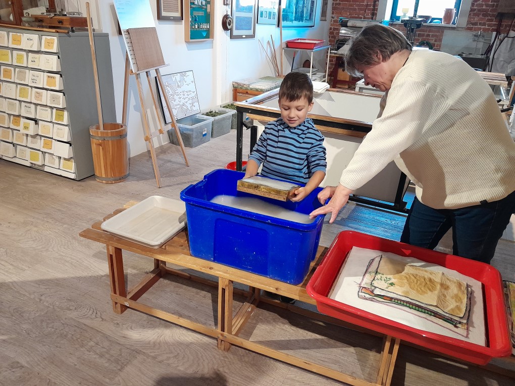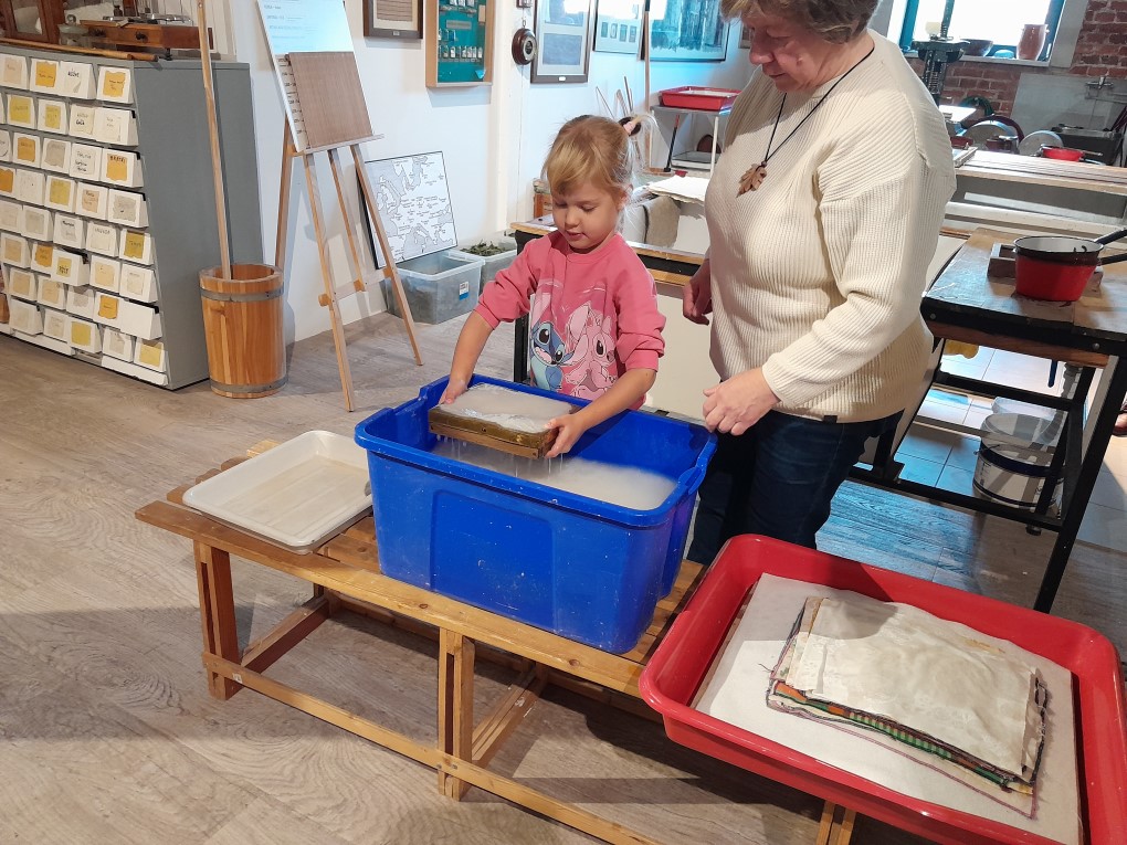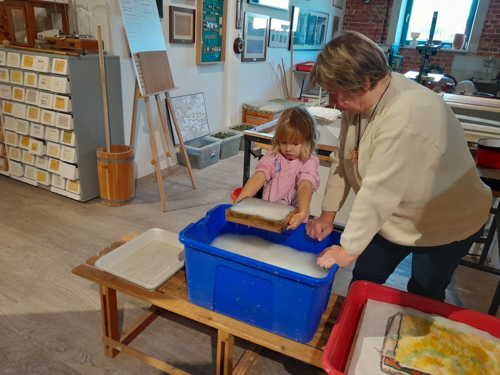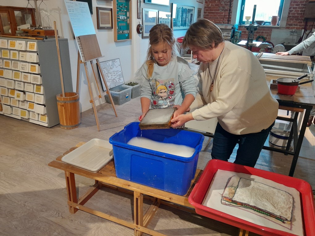 Podczas zwiedzania dzieci dowiedziały się, skąd bierze się papier i jak wyglądał proces jego tworzenia zanim pojawiły się nowoczesne maszyny. Poznały słowo "celuloza" i zobaczyły, jak z niej powstaje papier - nie tylko w teorii, ale także w praktyce. Każde dziecko mogło własnoręcznie stworzyć swój własny arkusz papieru czerpanego, zanurzając ramkę w pojemniku i z radością obserwując, jak powstaje coś z niczego! Kolejną atrakcją było odbijanie inicjałów za pomocą tradycyjnych czcionek drukarskich, które dzieci smarowały tuszem, a następnie odbijały na papierze. Na zakończenie wycieczki dzieci z zaciekawieniem obejrzały imponujące maszyny drukarskie zgromadzone w muzeum.