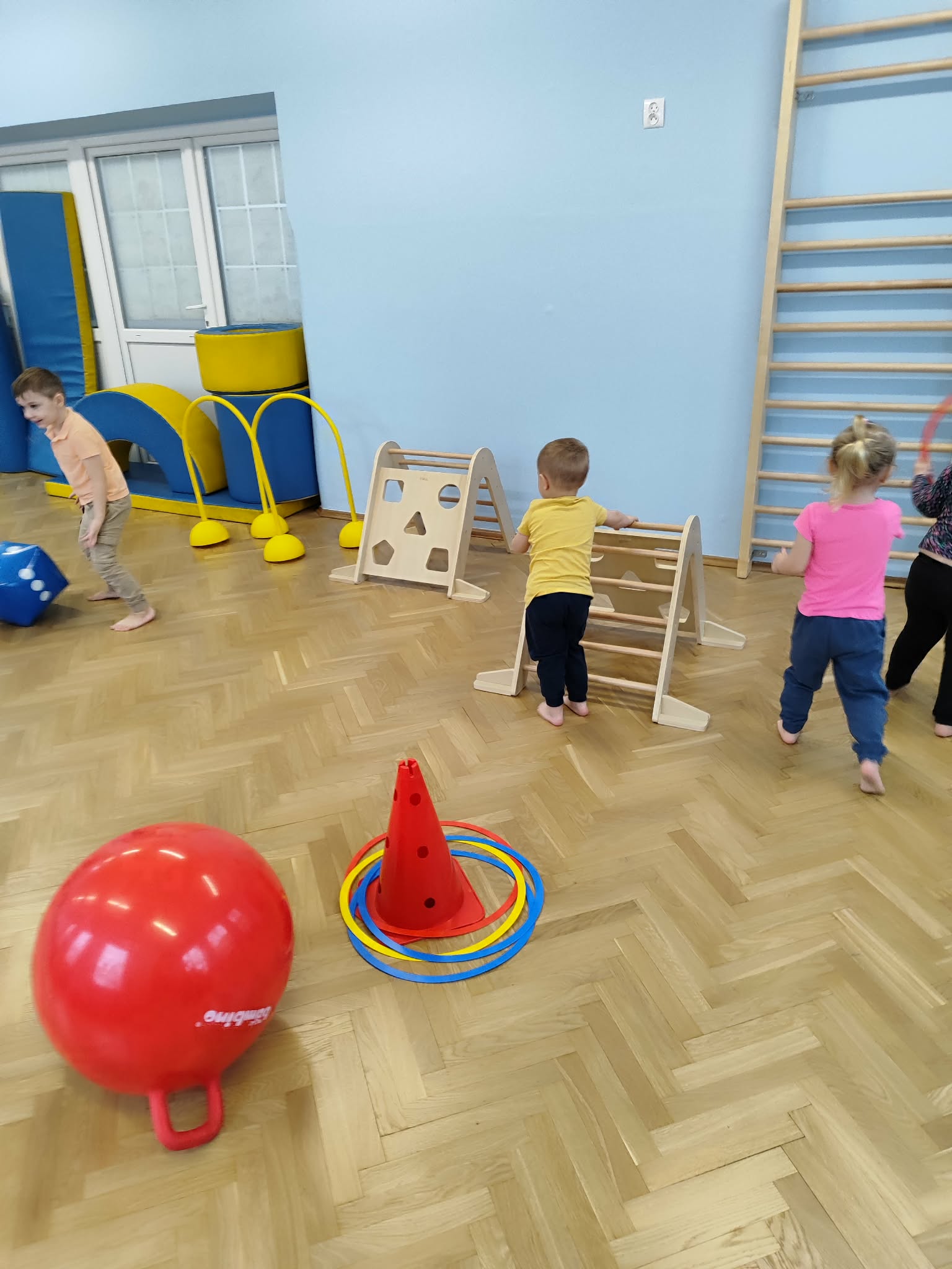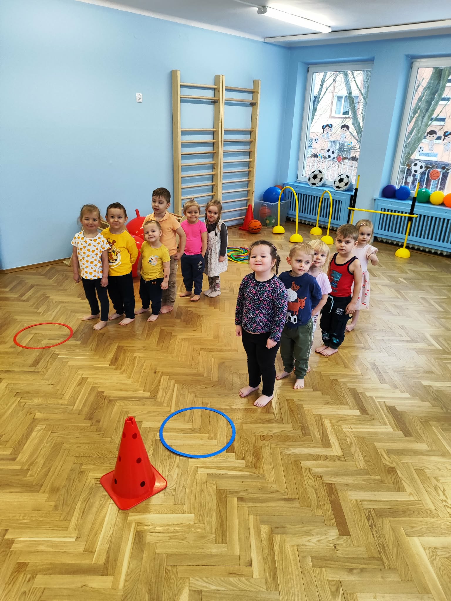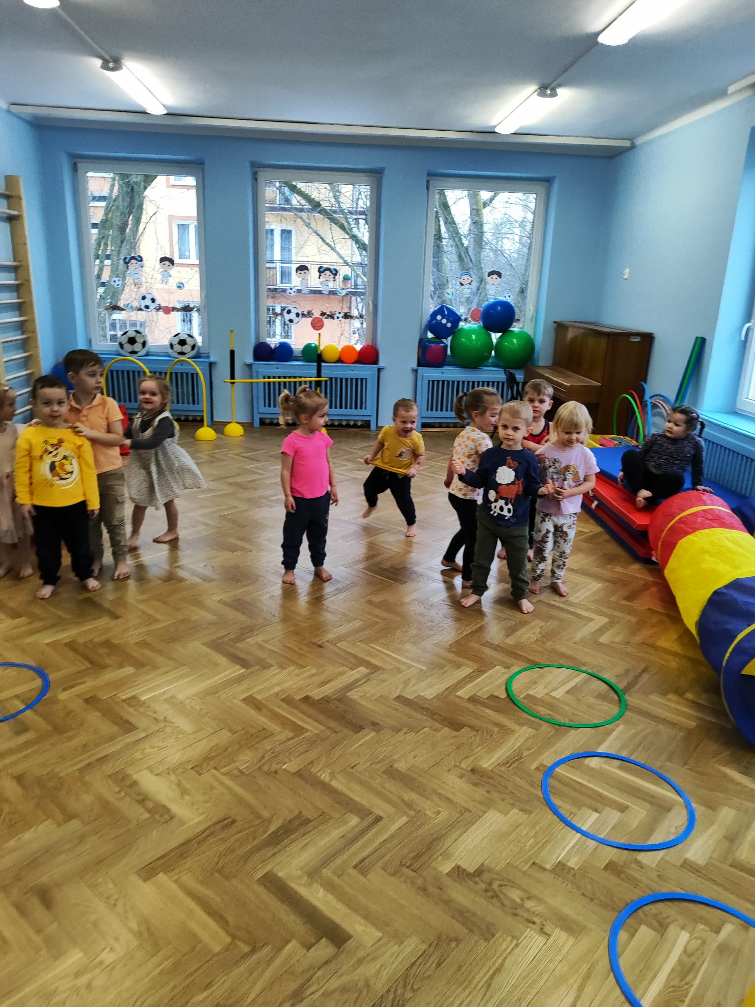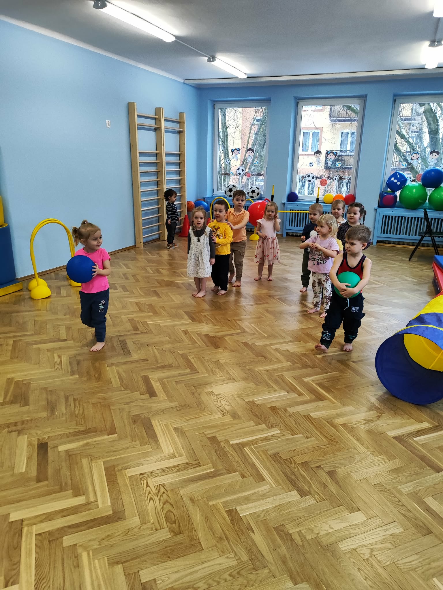 Ruch to zdrowie, dlatego od najmłodszych lat warto dbać o zabawy ruchowe dla dzieci. Maluchy do aktywności nie potrzebują drogiego sprzętu, czy też specjalnych strojów – wystarczy wspaniale urządzona sala gimnastyczna w naszym przedszkolu ;)