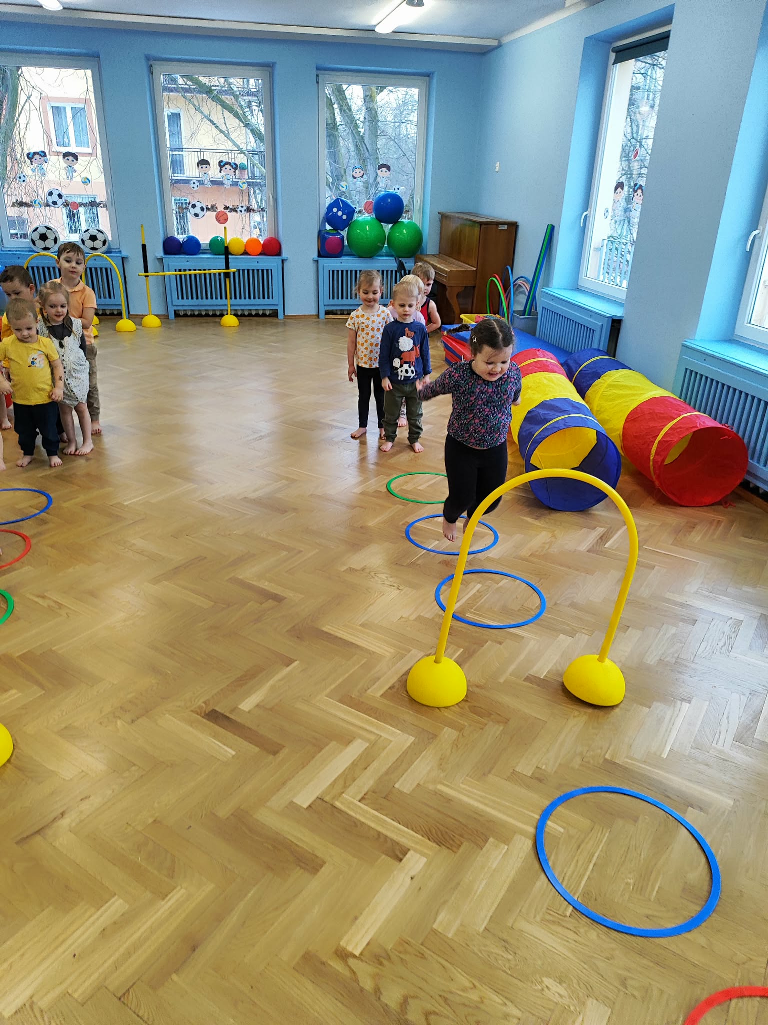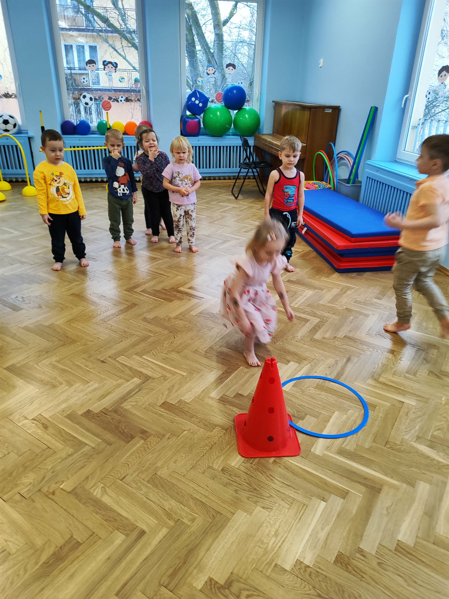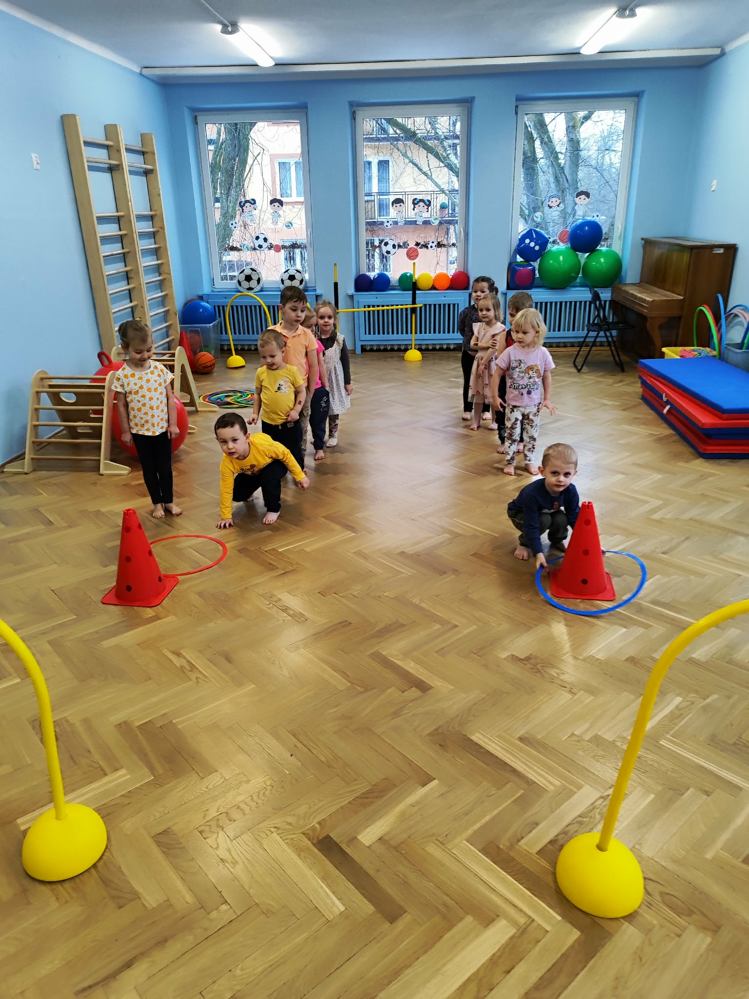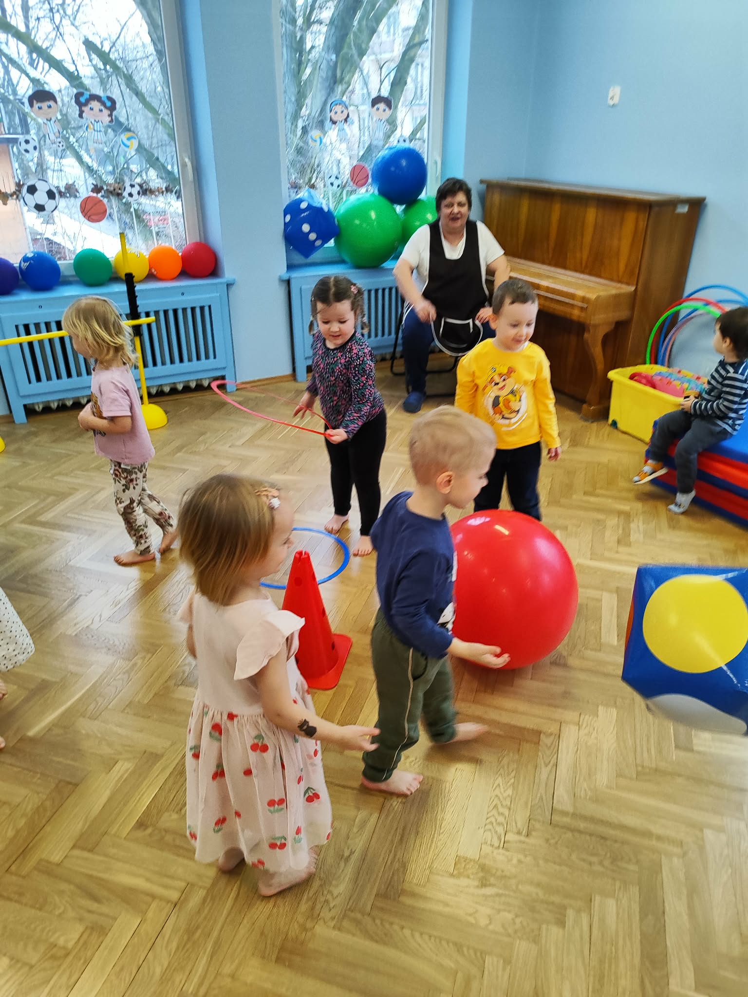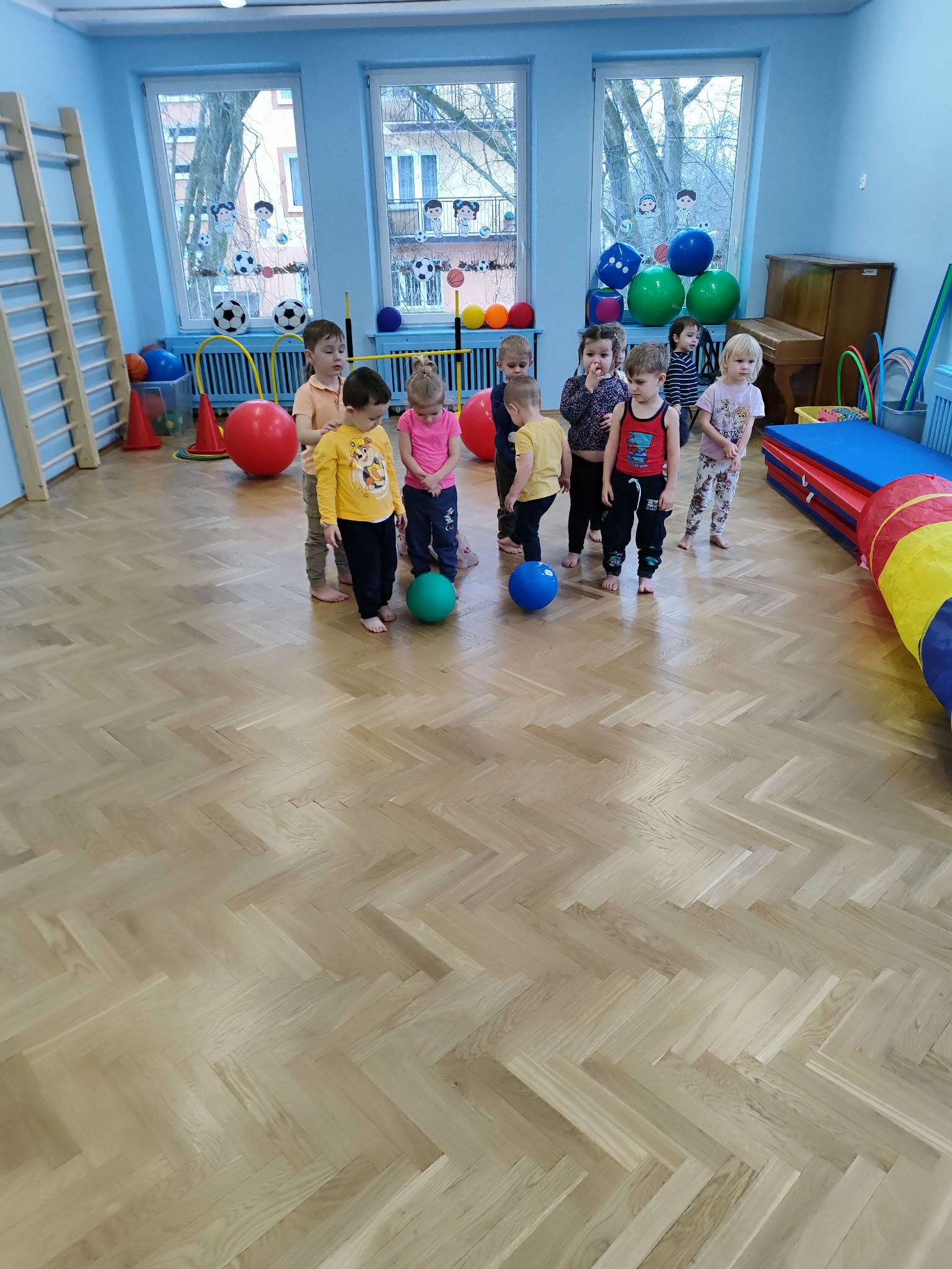 Ruch to zdrowie, dlatego od najmłodszych lat warto dbać o zabawy ruchowe dla dzieci. Maluchy do aktywności nie potrzebują drogiego sprzętu, czy też specjalnych strojów – wystarczy wspaniale urządzona sala gimnastyczna w naszym przedszkolu ;)