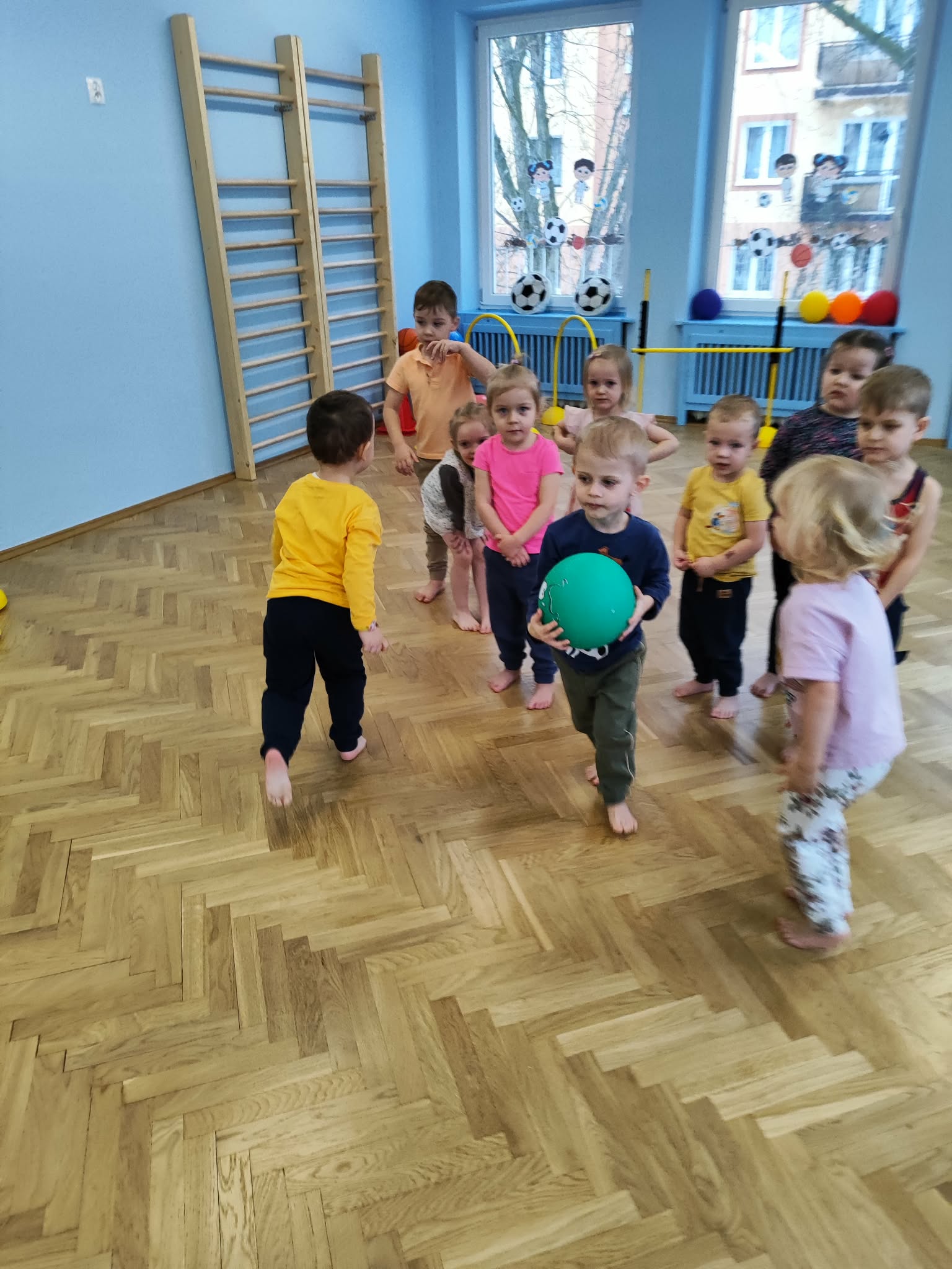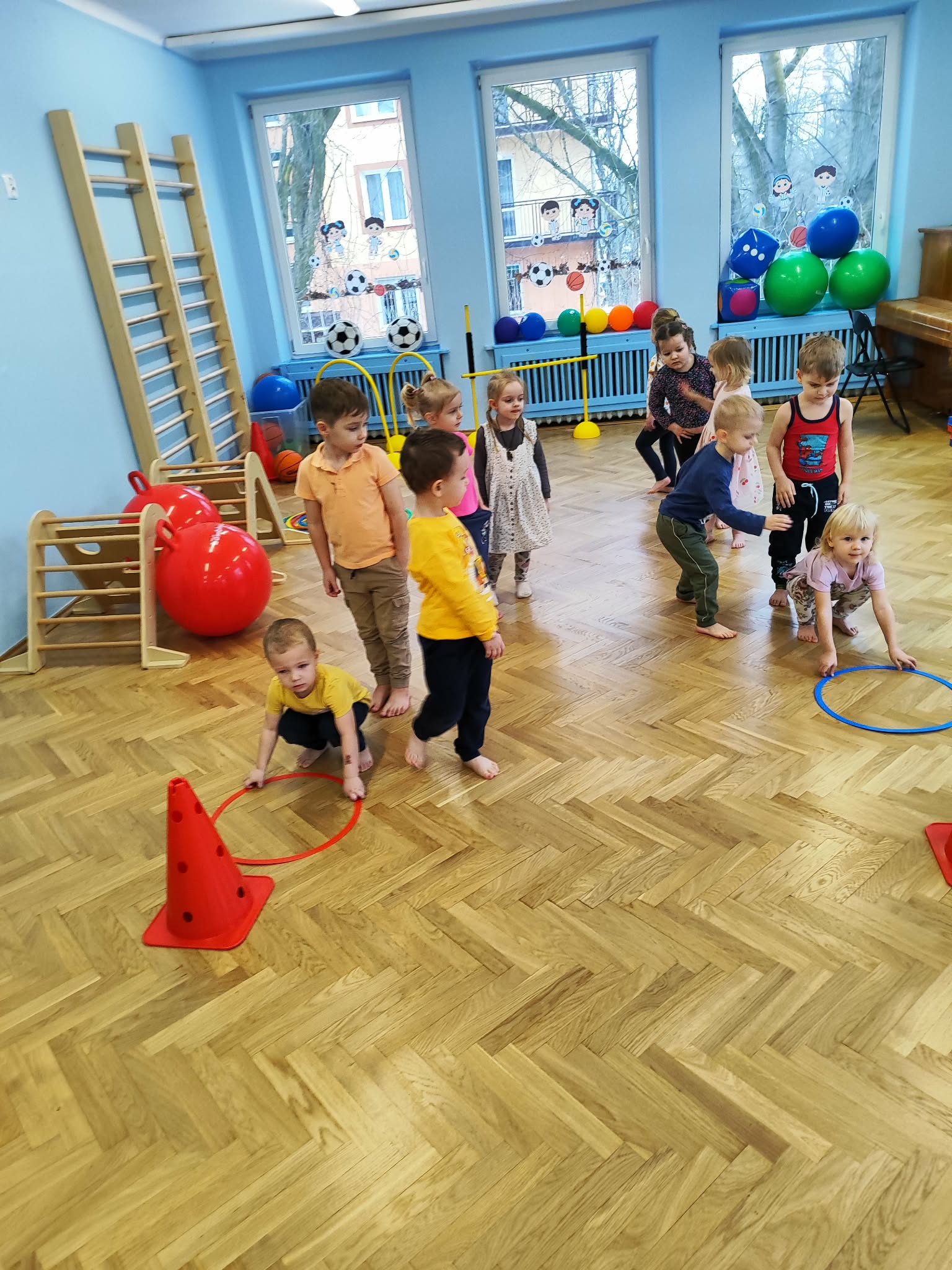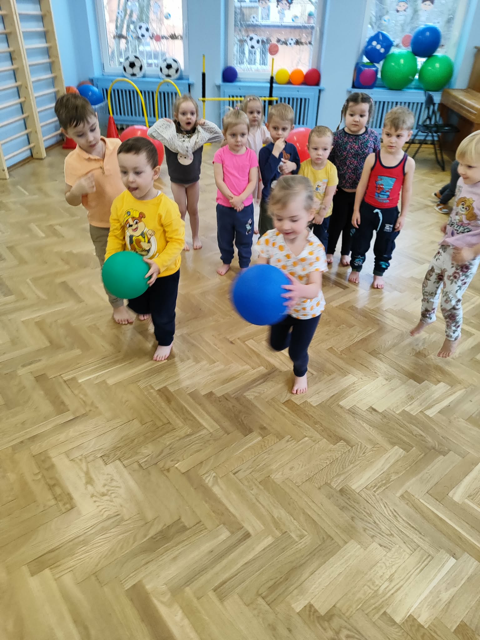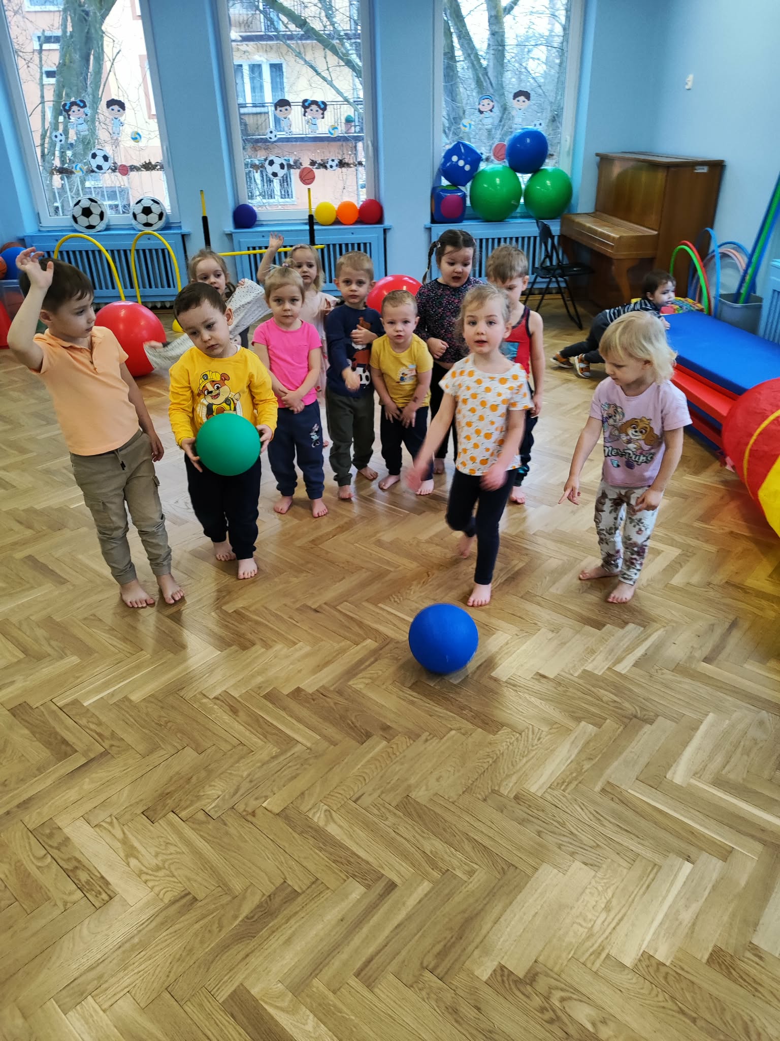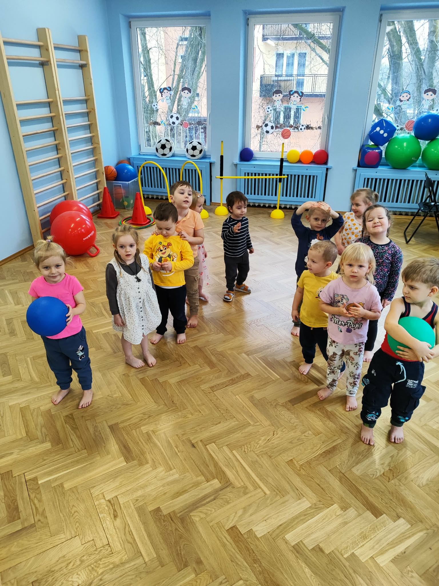 Ruch to zdrowie, dlatego od najmłodszych lat warto dbać o zabawy ruchowe dla dzieci. Maluchy do aktywności nie potrzebują drogiego sprzętu, czy też specjalnych strojów – wystarczy wspaniale urządzona sala gimnastyczna w naszym przedszkolu ;)