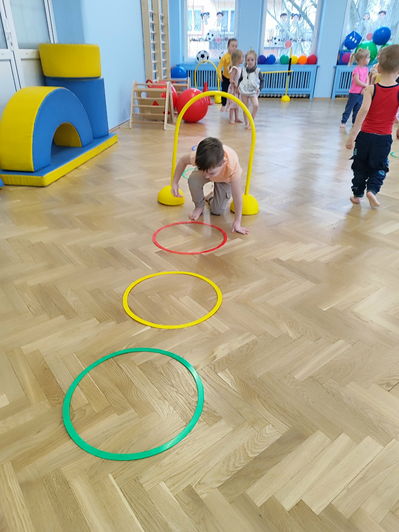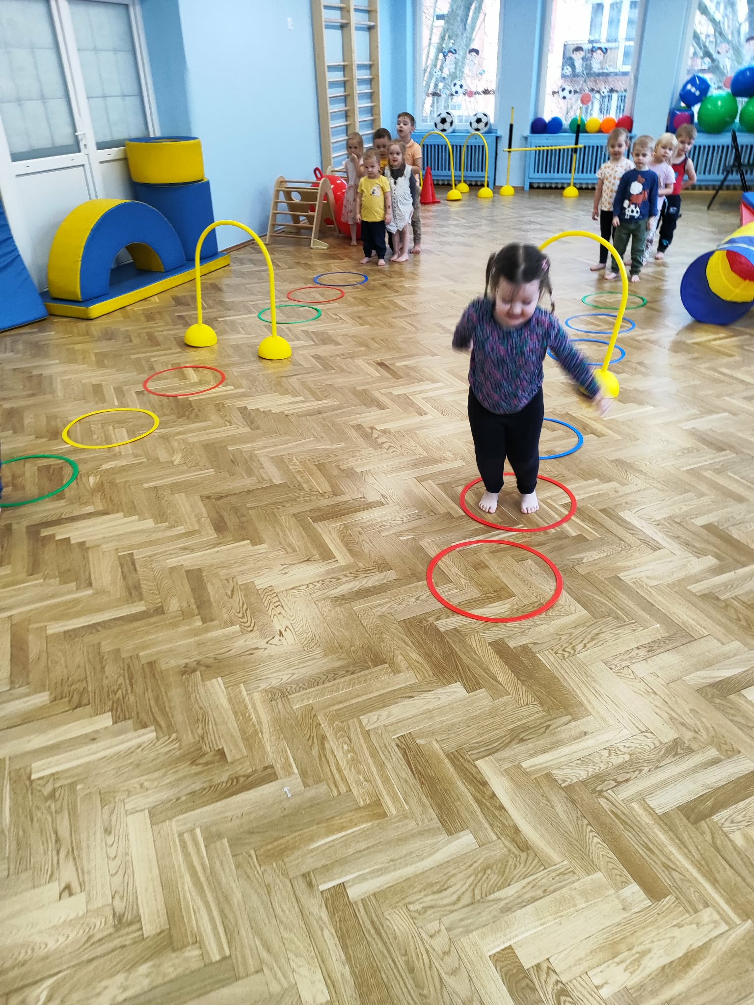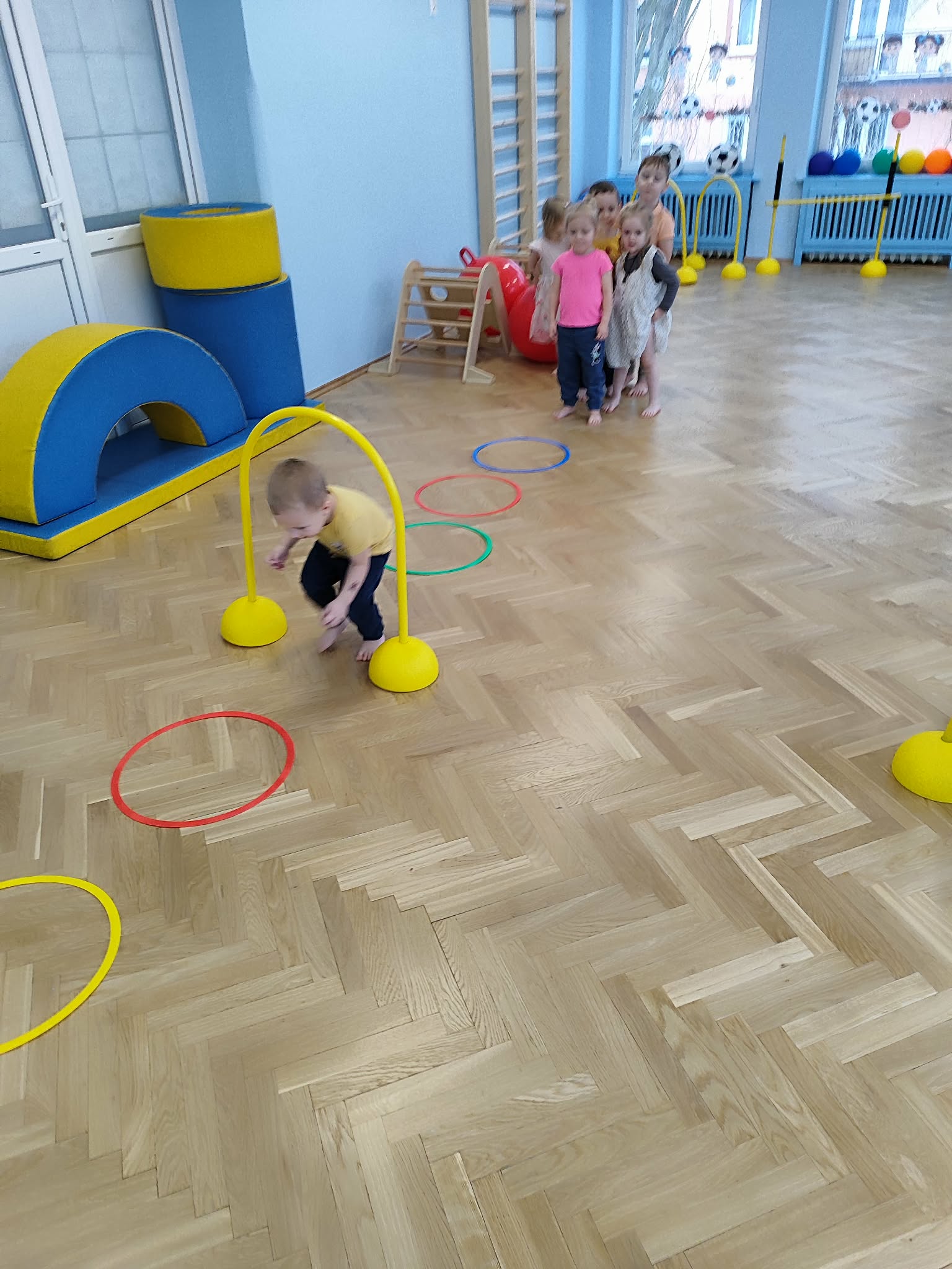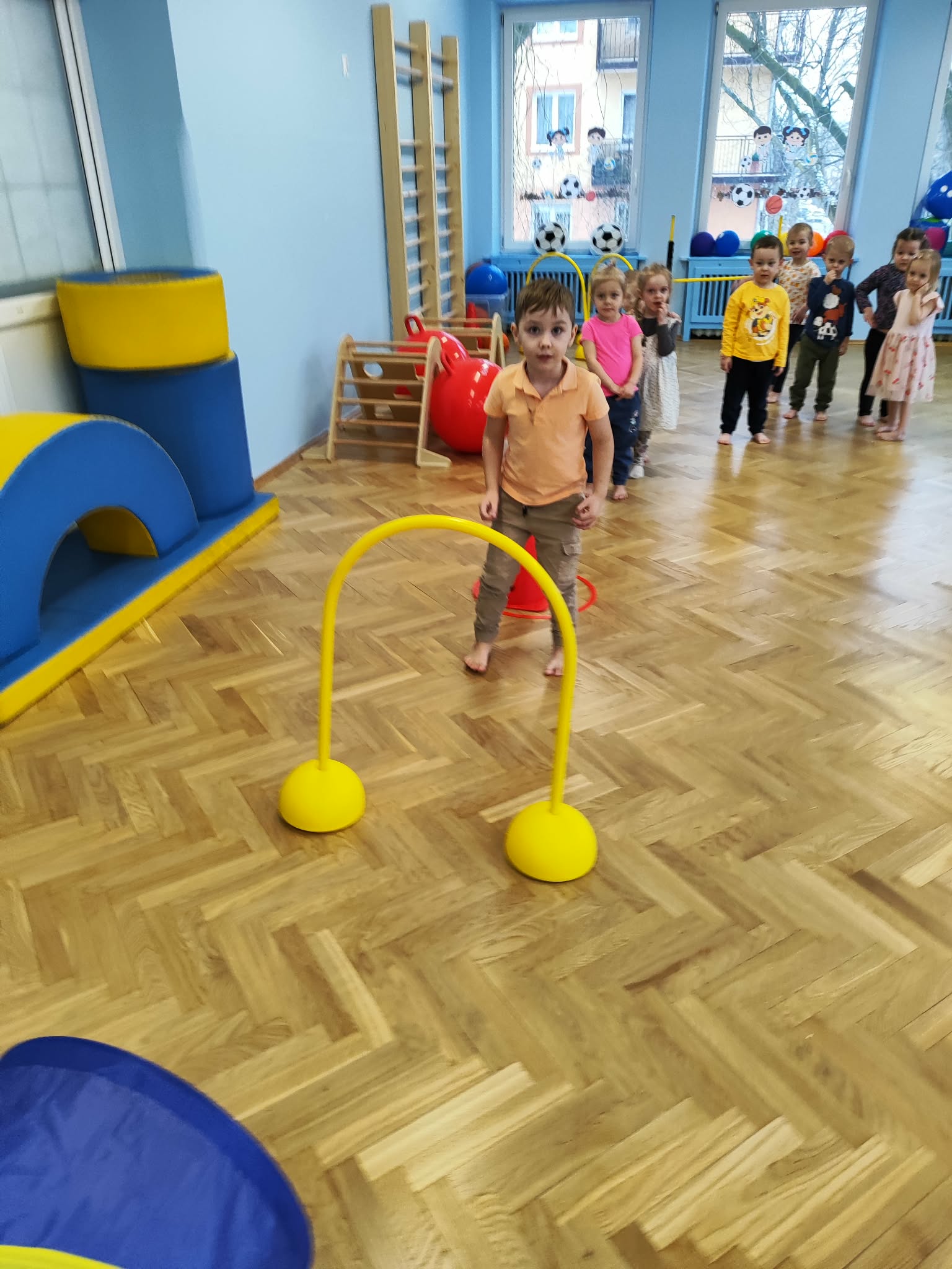 Ruch to zdrowie, dlatego od najmłodszych lat warto dbać o zabawy ruchowe dla dzieci. Maluchy do aktywności nie potrzebują drogiego sprzętu, czy też specjalnych strojów – wystarczy wspaniale urządzona sala gimnastyczna w naszym przedszkolu ;)