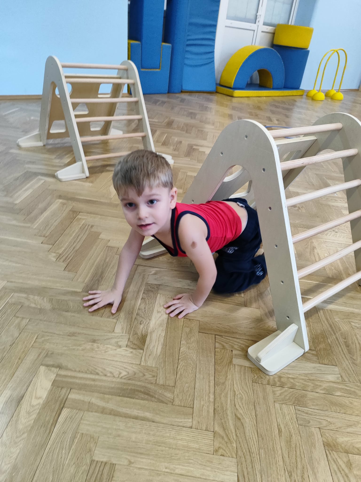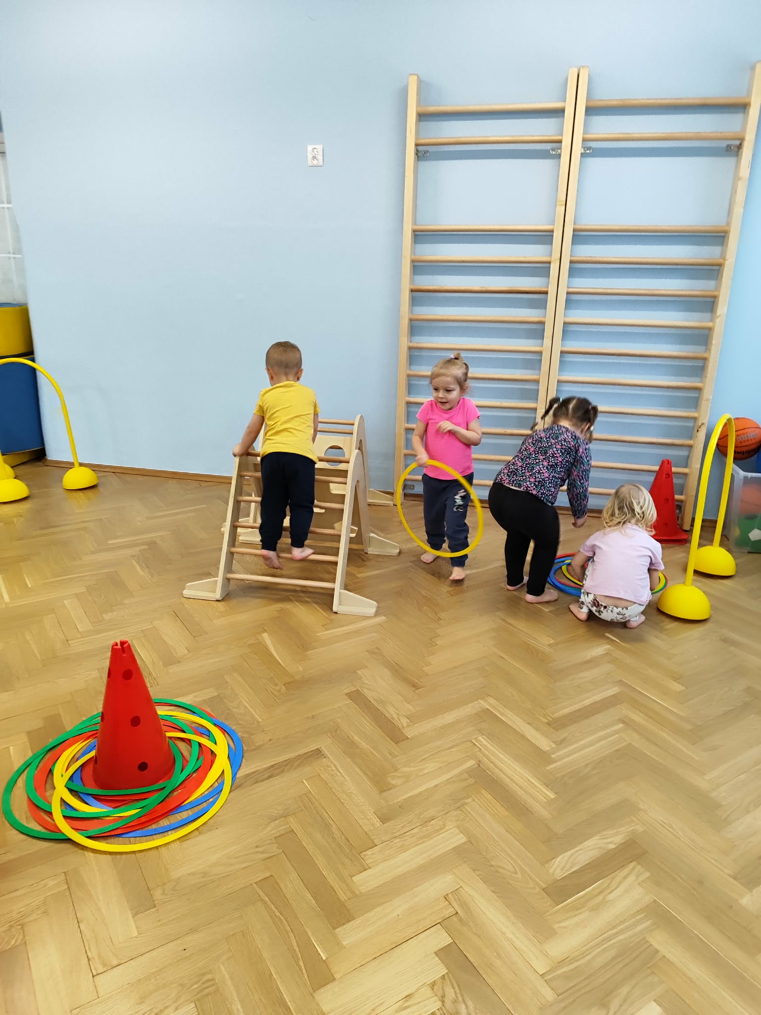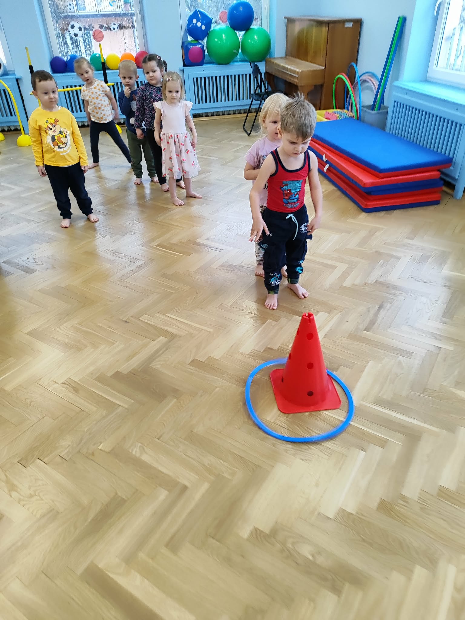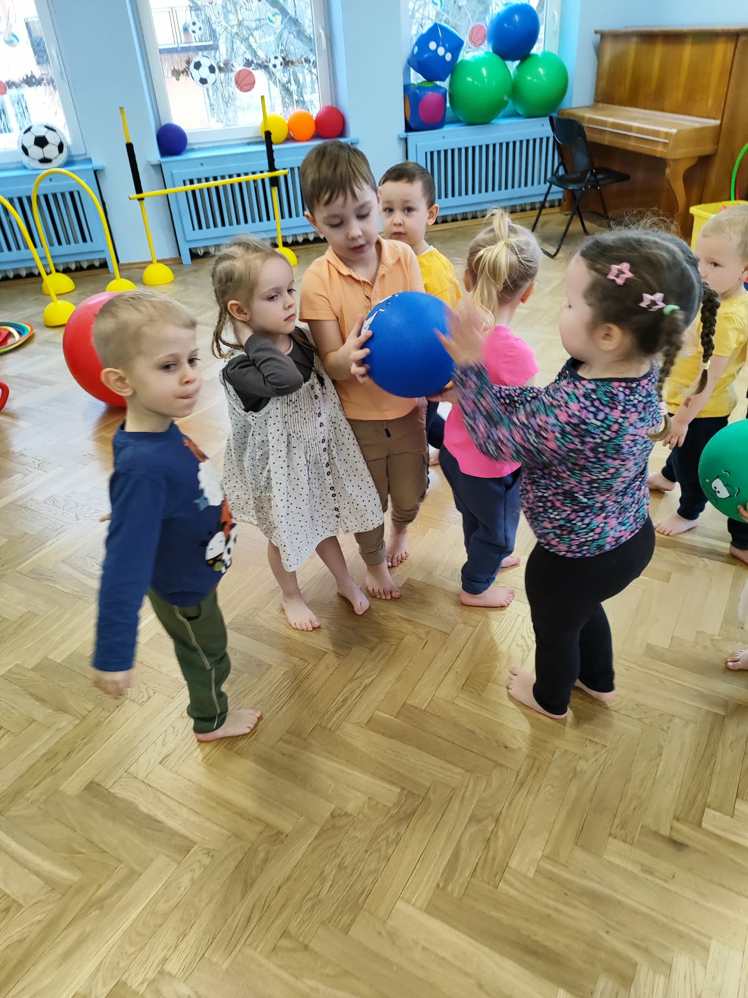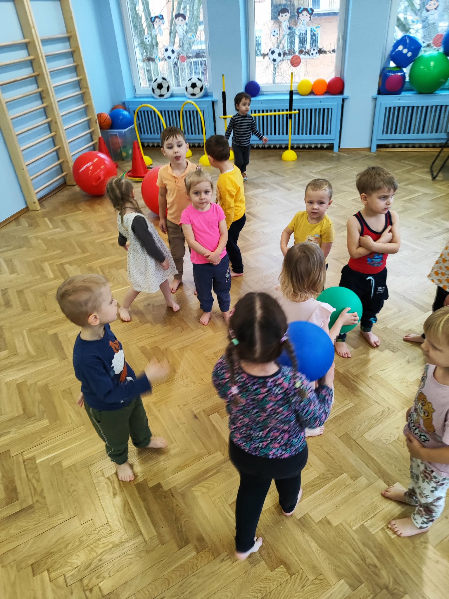 Ruch to zdrowie, dlatego od najmłodszych lat warto dbać o zabawy ruchowe dla dzieci. Maluchy do aktywności nie potrzebują drogiego sprzętu, czy też specjalnych strojów – wystarczy wspaniale urządzona sala gimnastyczna w naszym przedszkolu ;)