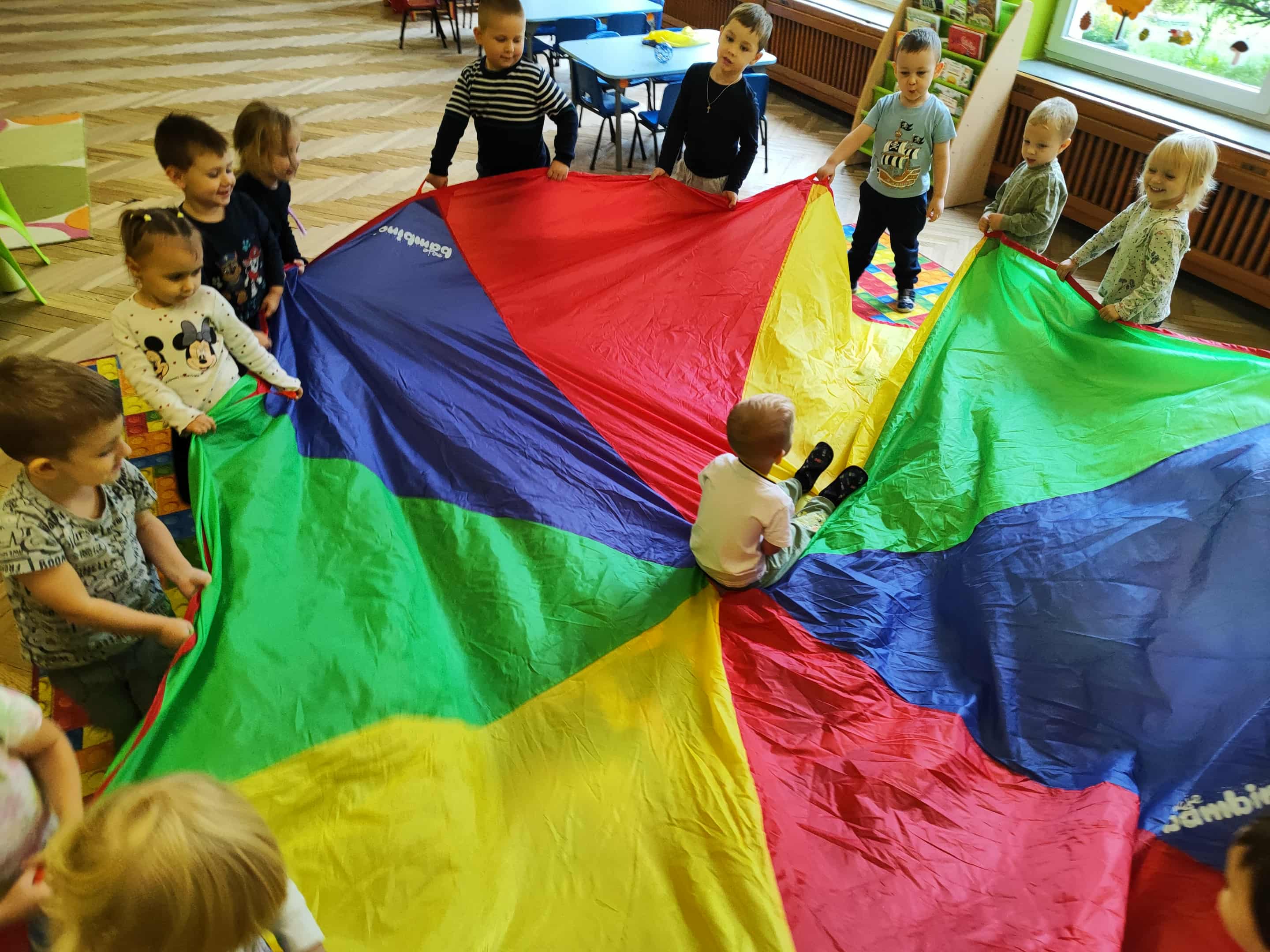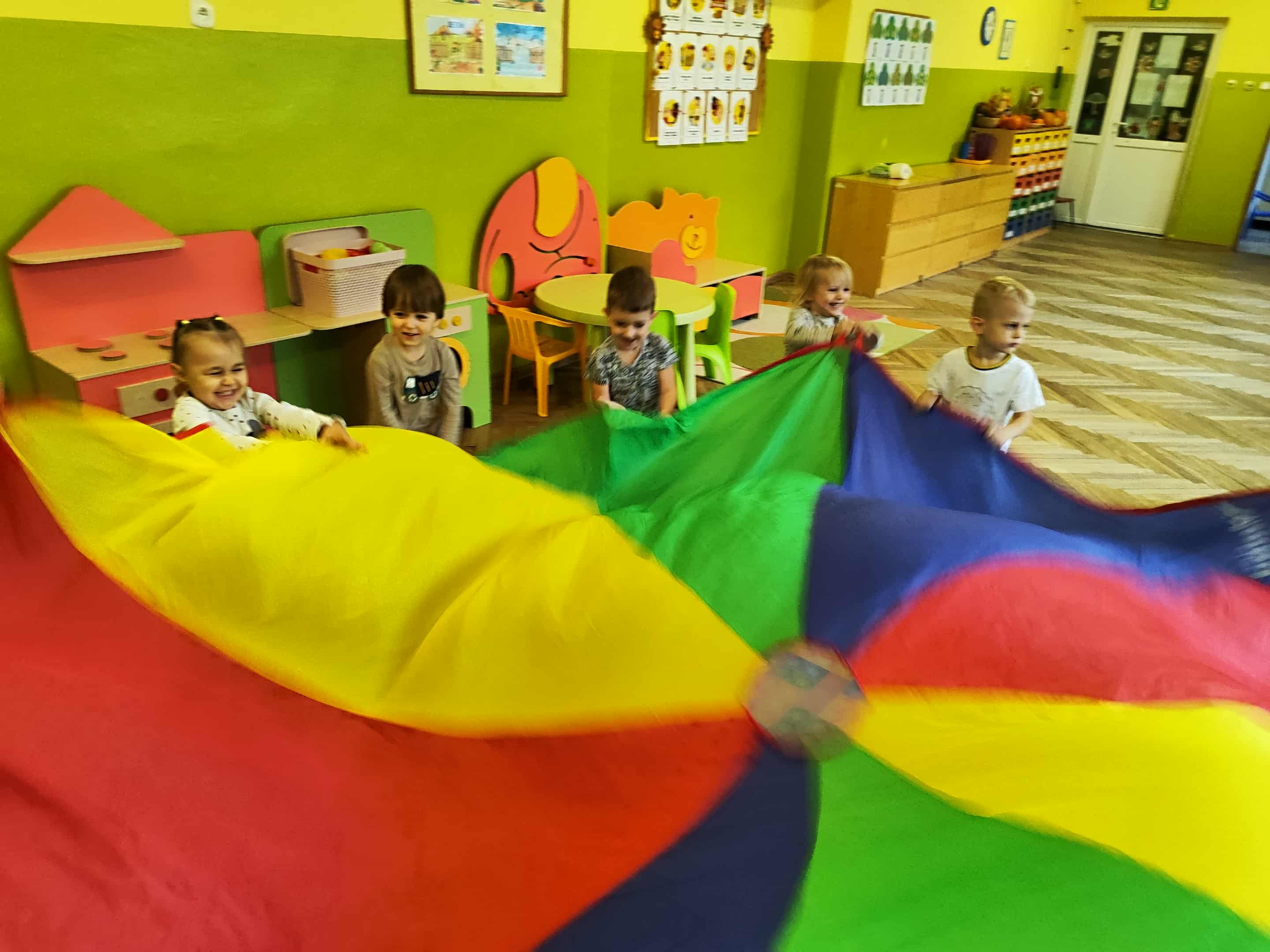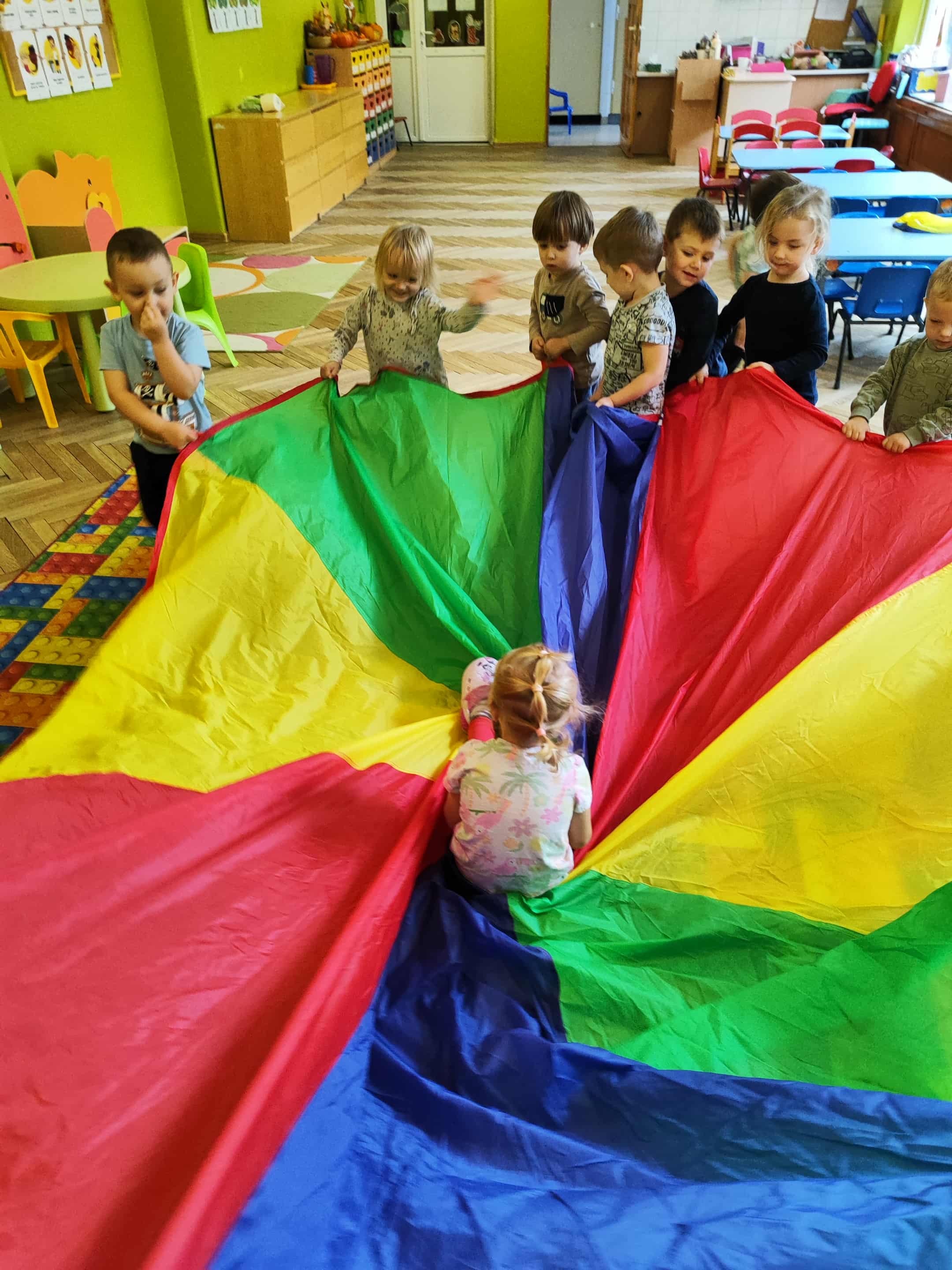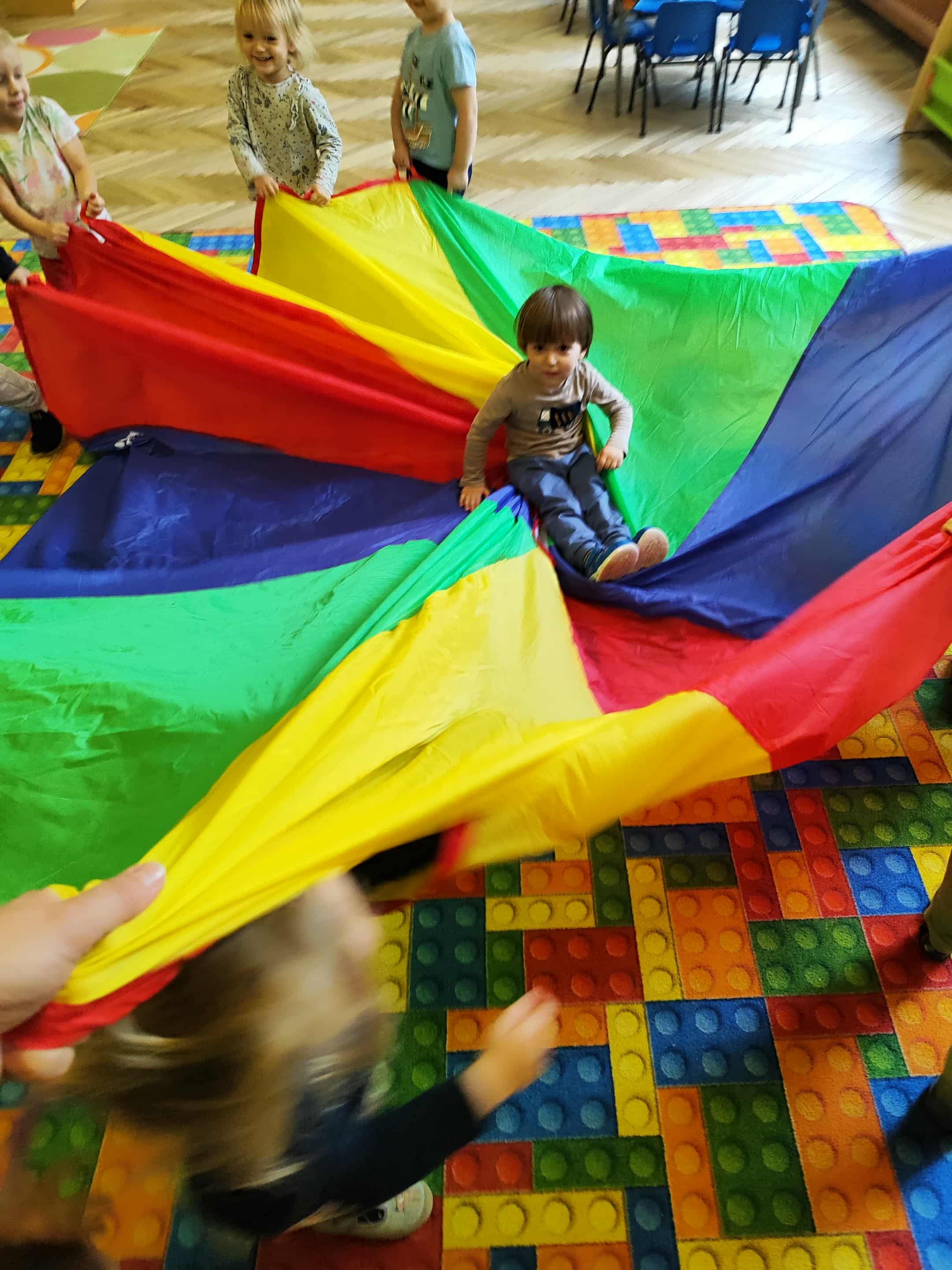 Intensywne barwy pobudzają wyobraźnię, ruch na świeżym powietrzu nigdy nie był tak przyjemny, jak przy użyciu chusty. Zabawy z chustą dają poczucie odprężenia i relaksu, pozwalają dzieciom i dorosłym pozytywnie spożytkować energię.