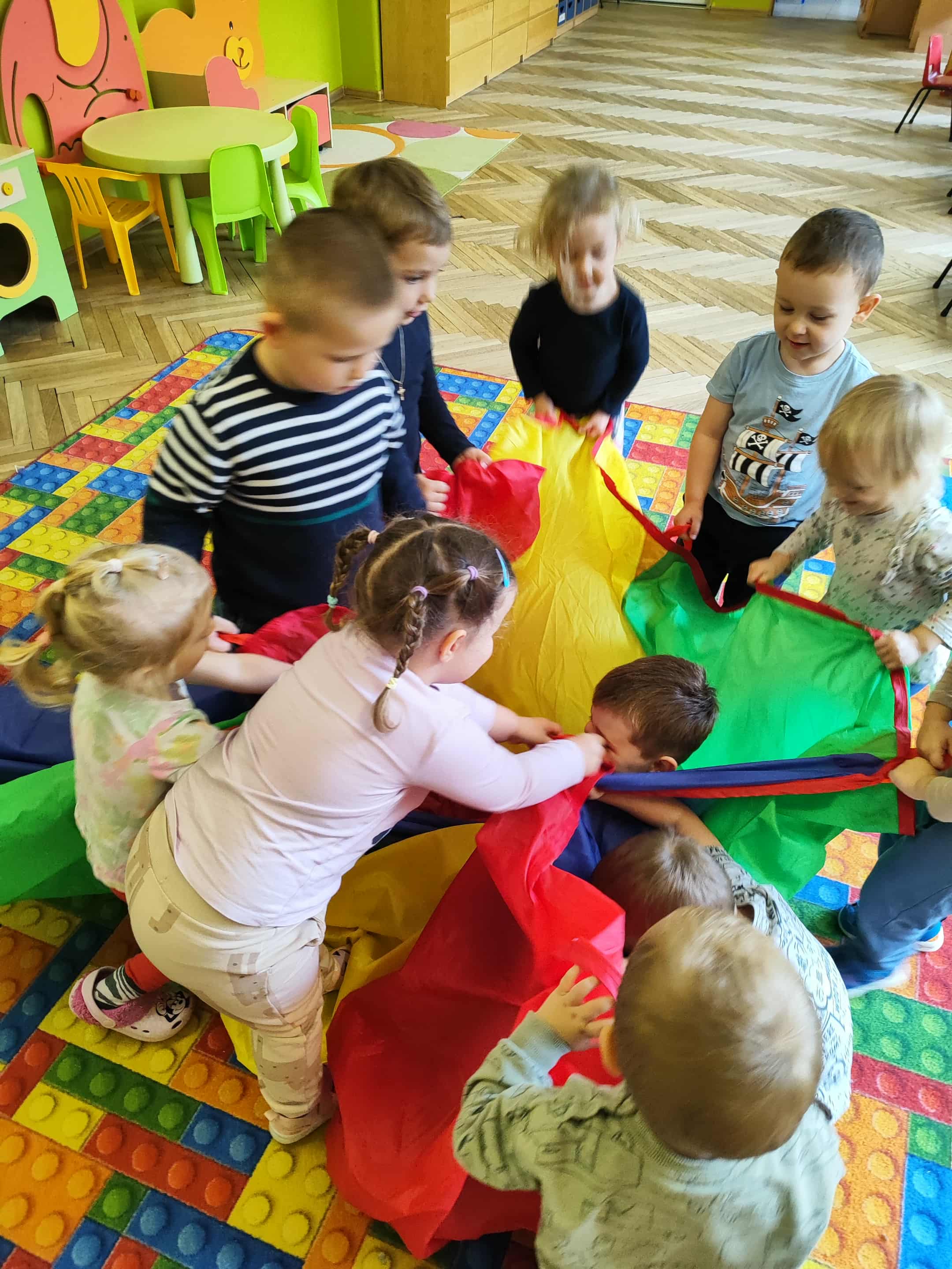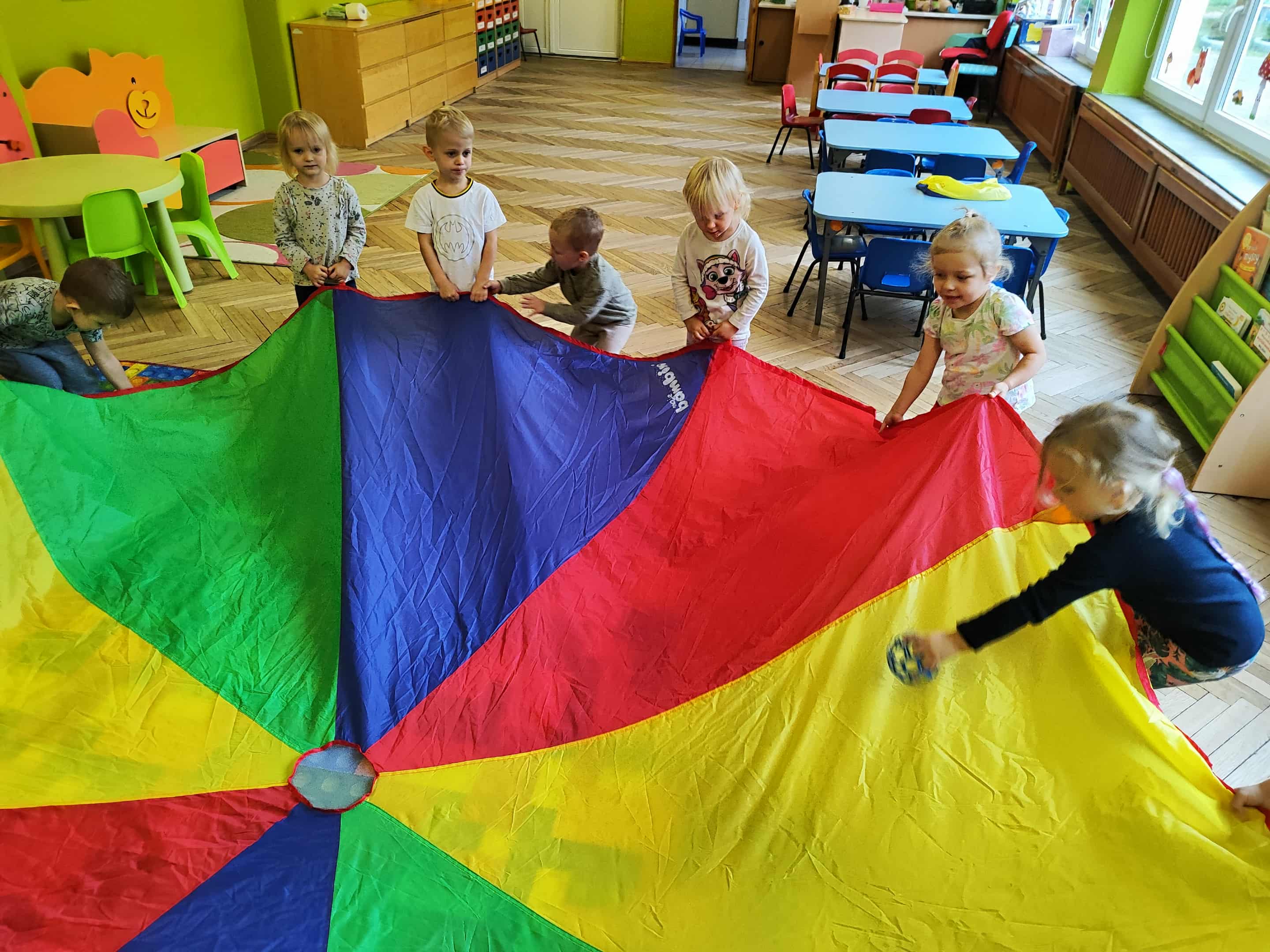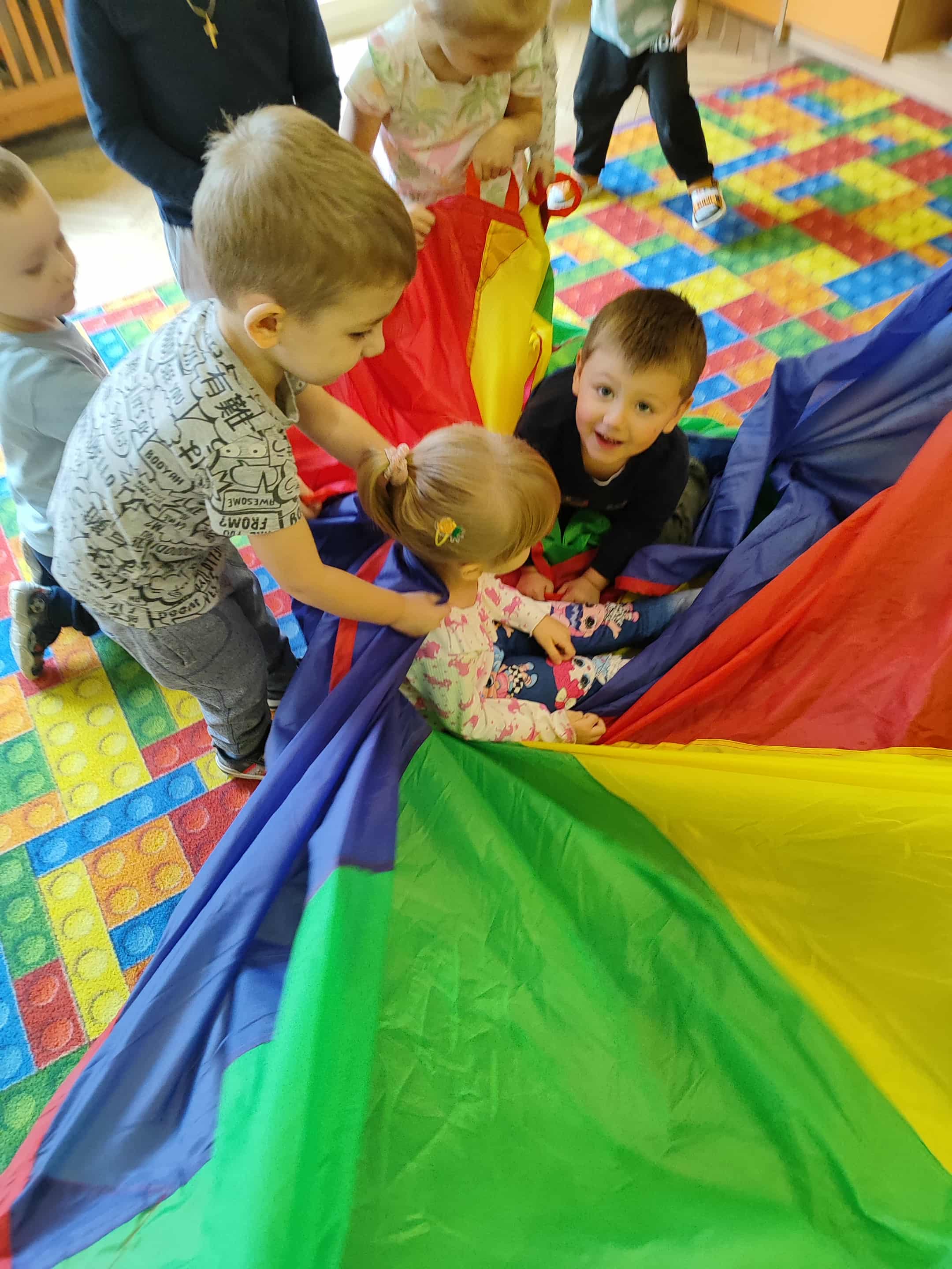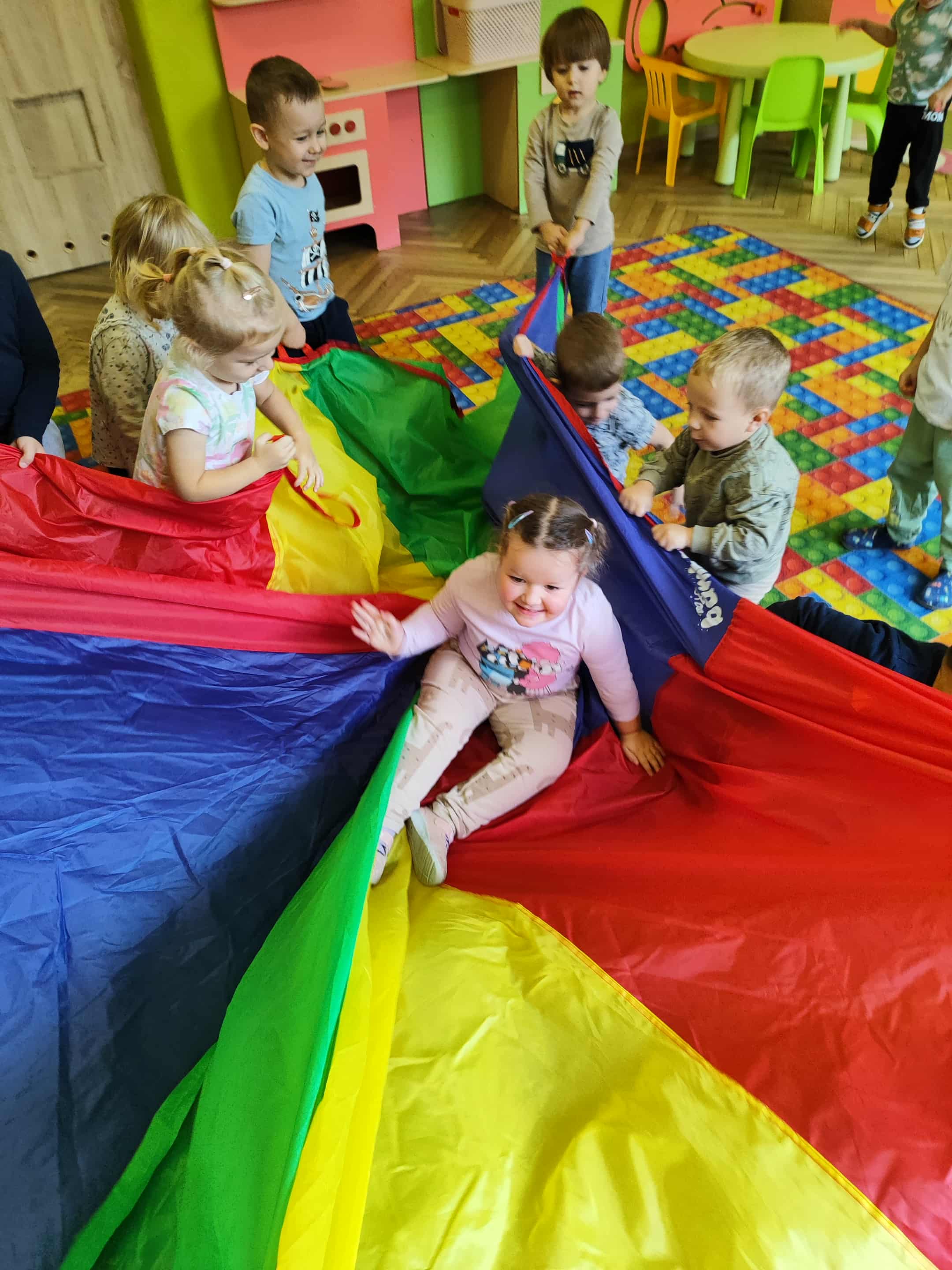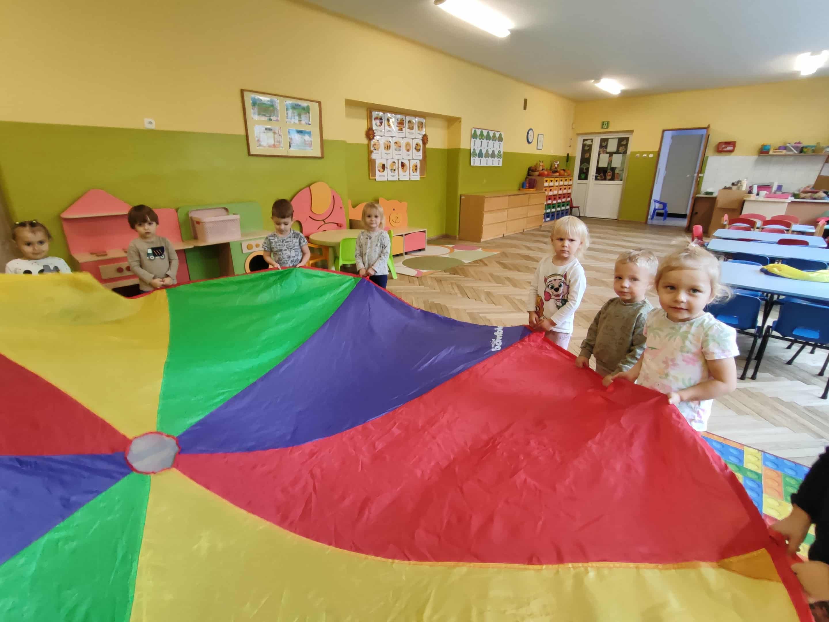 Intensywne barwy pobudzają wyobraźnię, ruch na świeżym powietrzu nigdy nie był tak przyjemny, jak przy użyciu chusty. Zabawy z chustą dają poczucie odprężenia i relaksu, pozwalają dzieciom i dorosłym pozytywnie spożytkować energię.