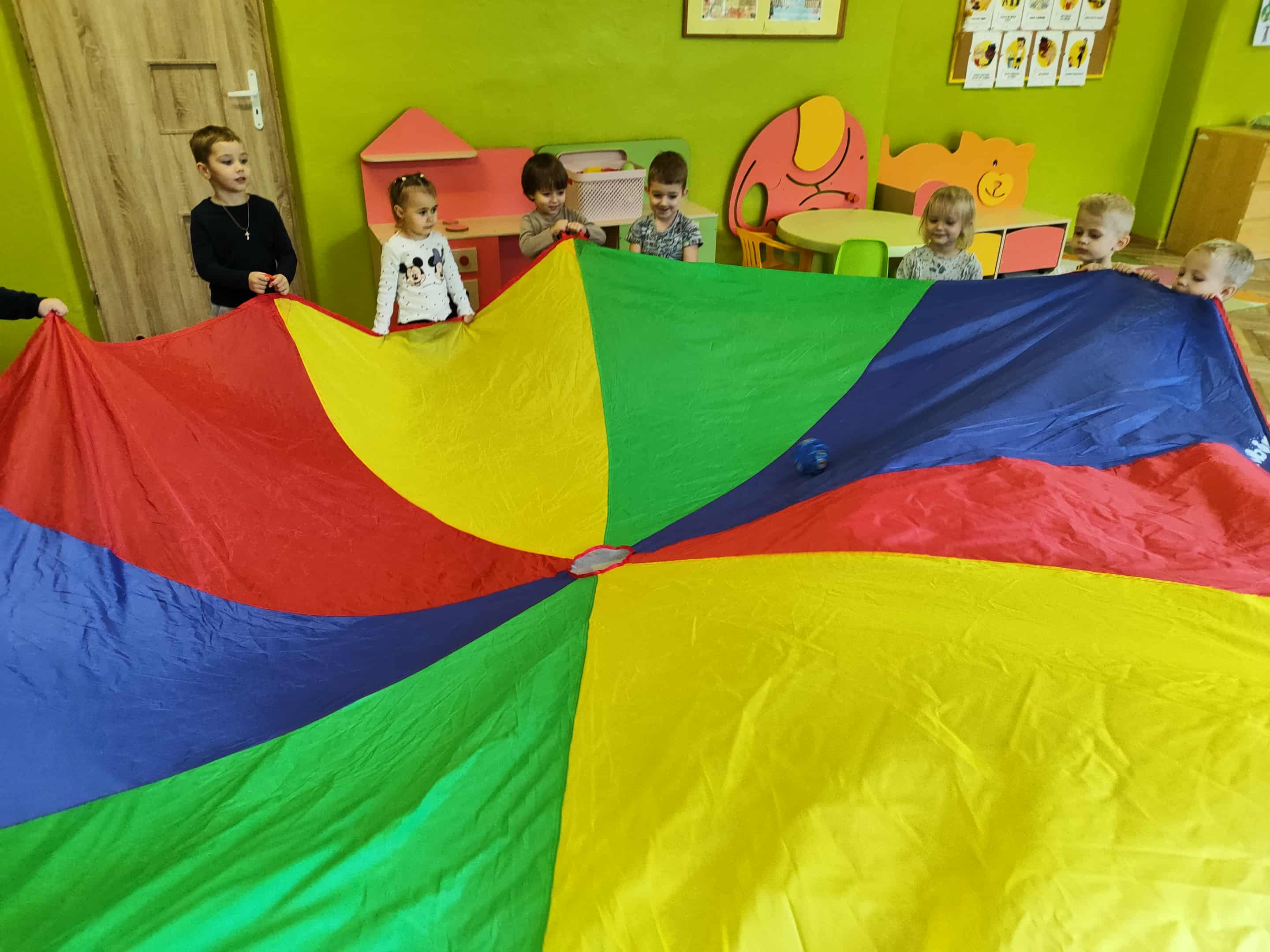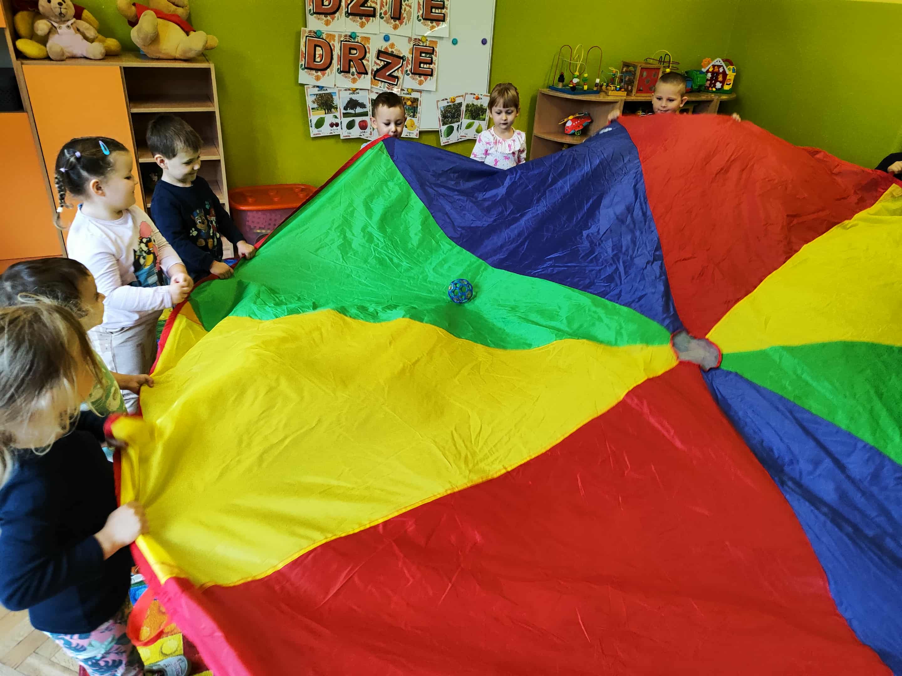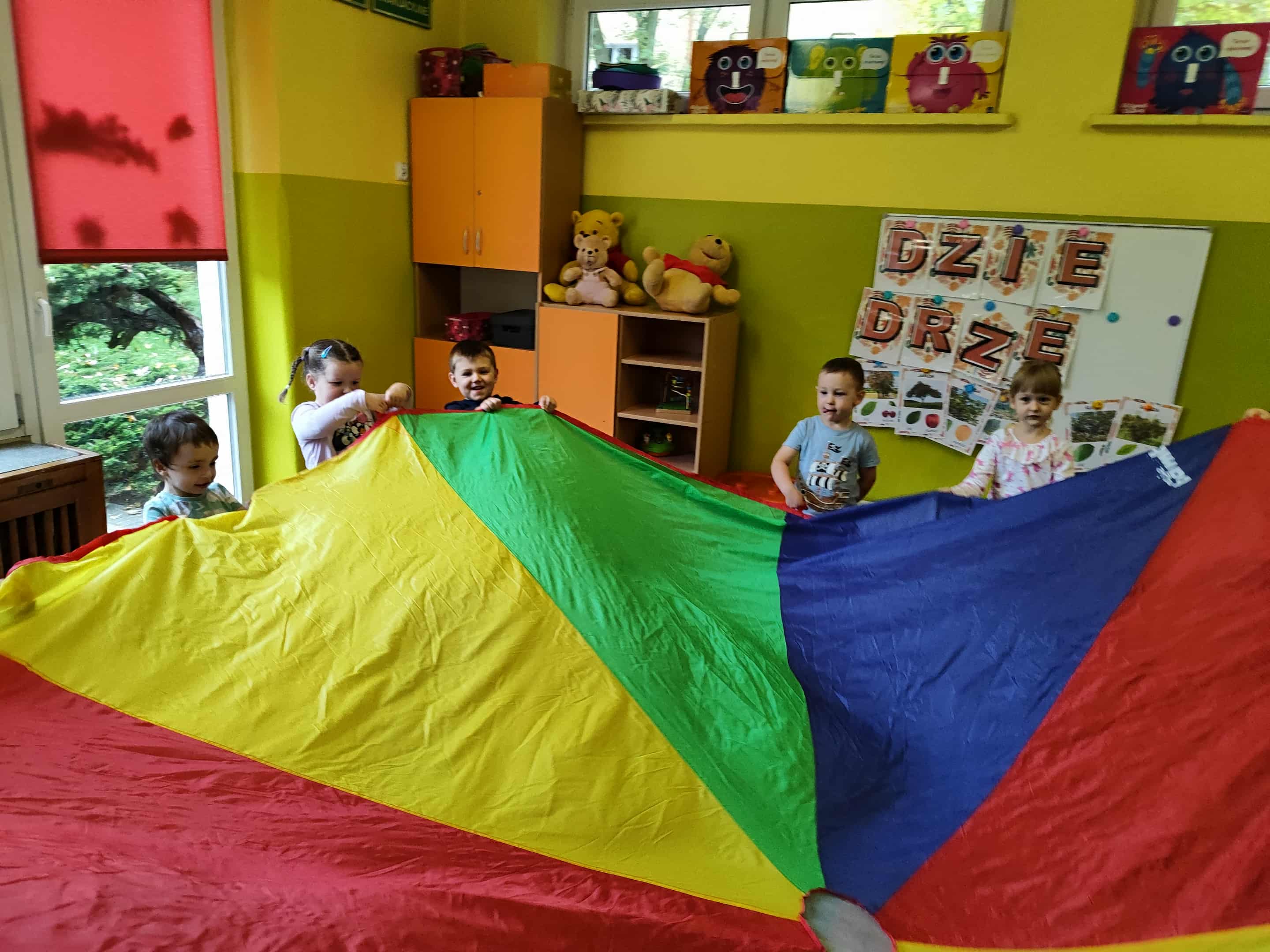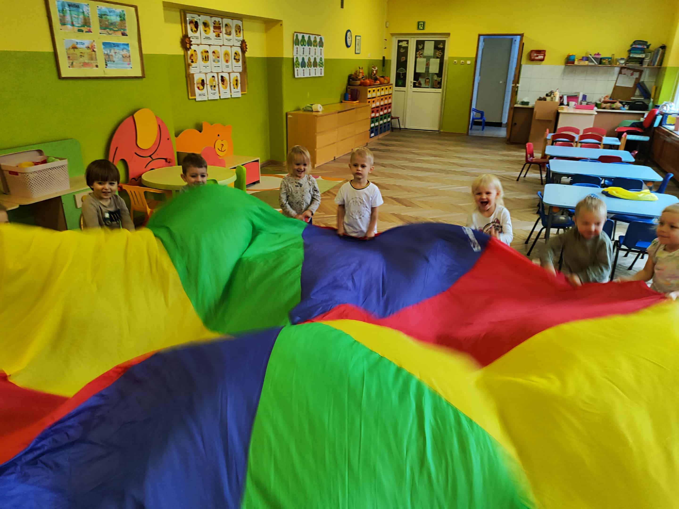 Intensywne barwy pobudzają wyobraźnię, ruch na świeżym powietrzu nigdy nie był tak przyjemny, jak przy użyciu chusty. Zabawy z chustą dają poczucie odprężenia i relaksu, pozwalają dzieciom i dorosłym pozytywnie spożytkować energię.