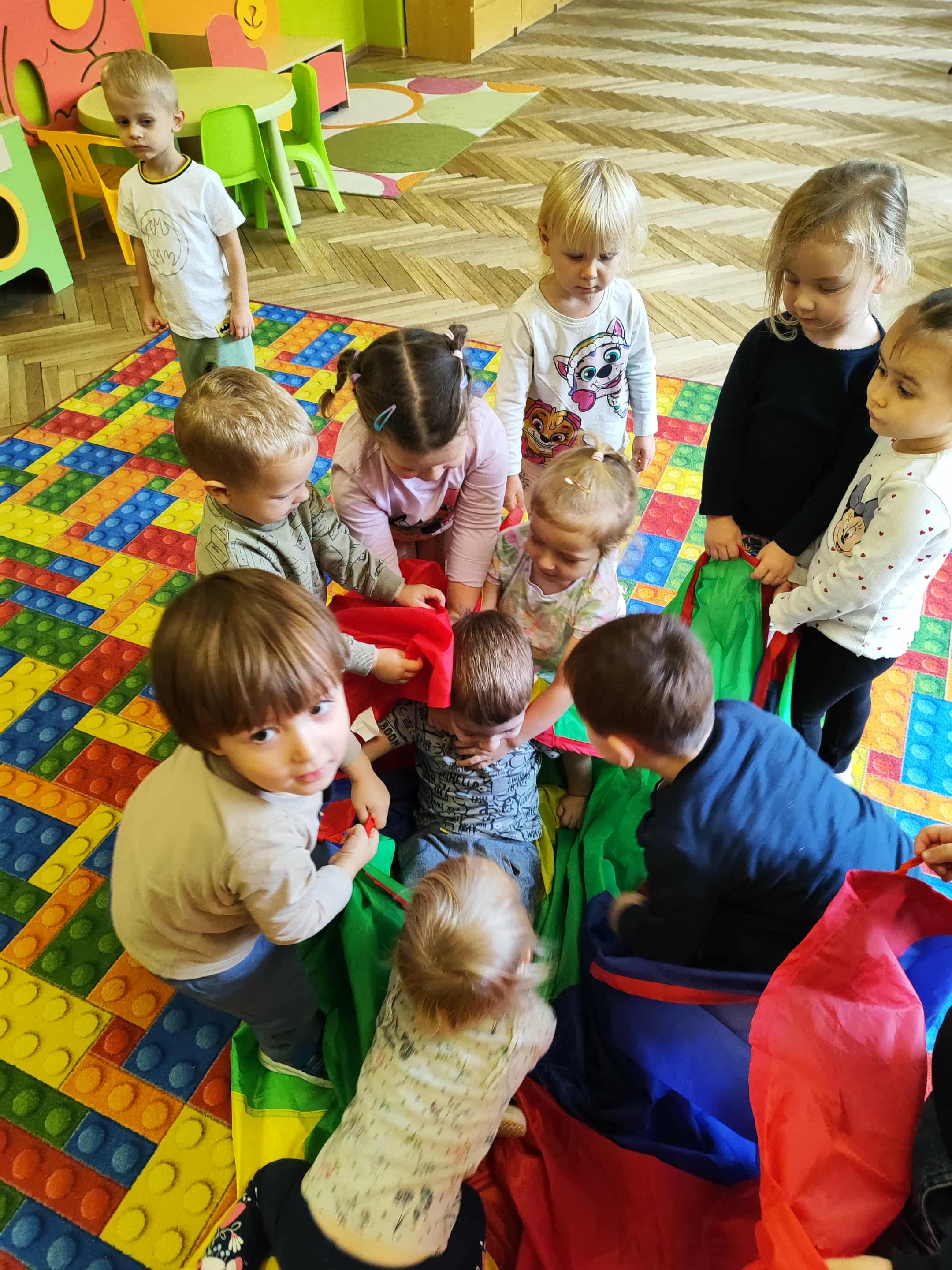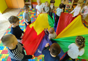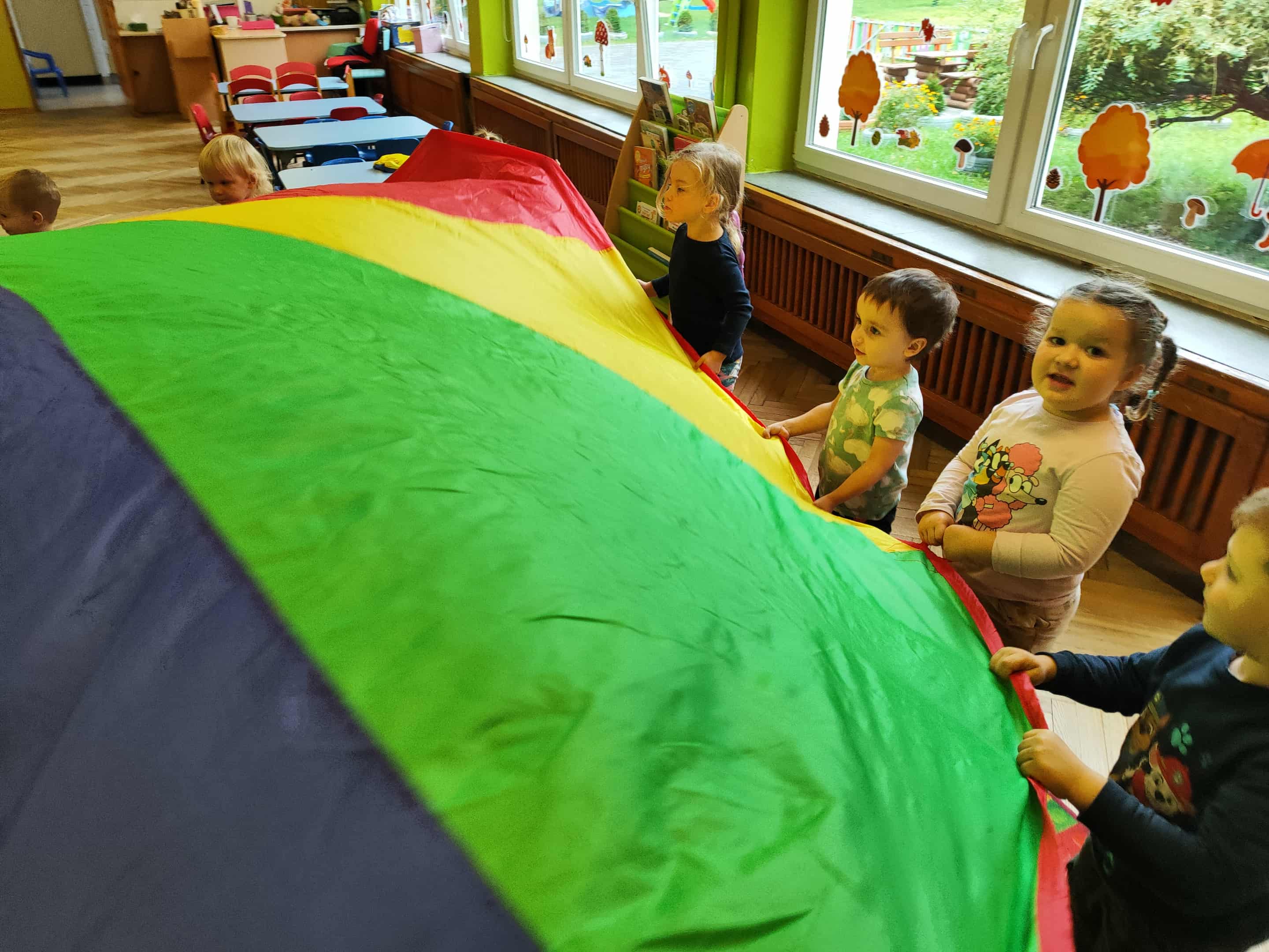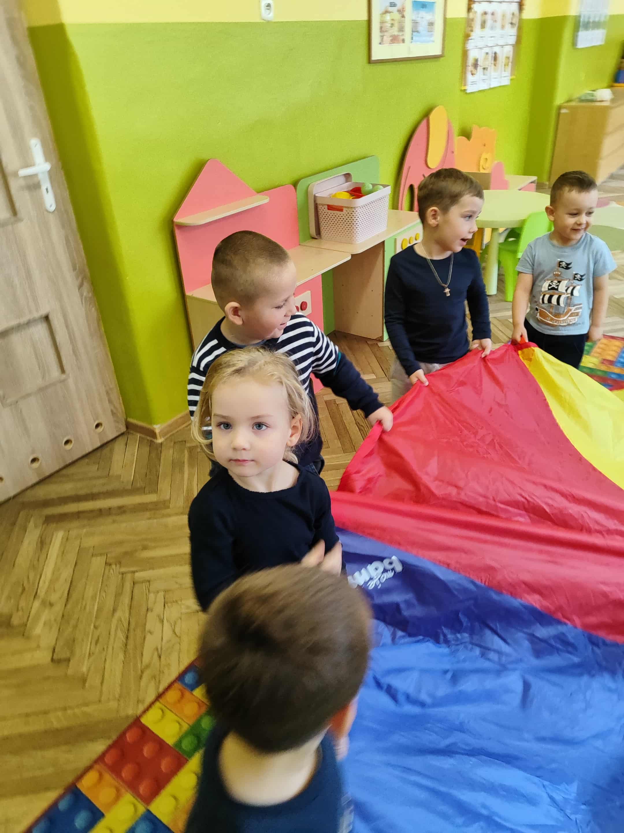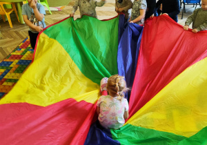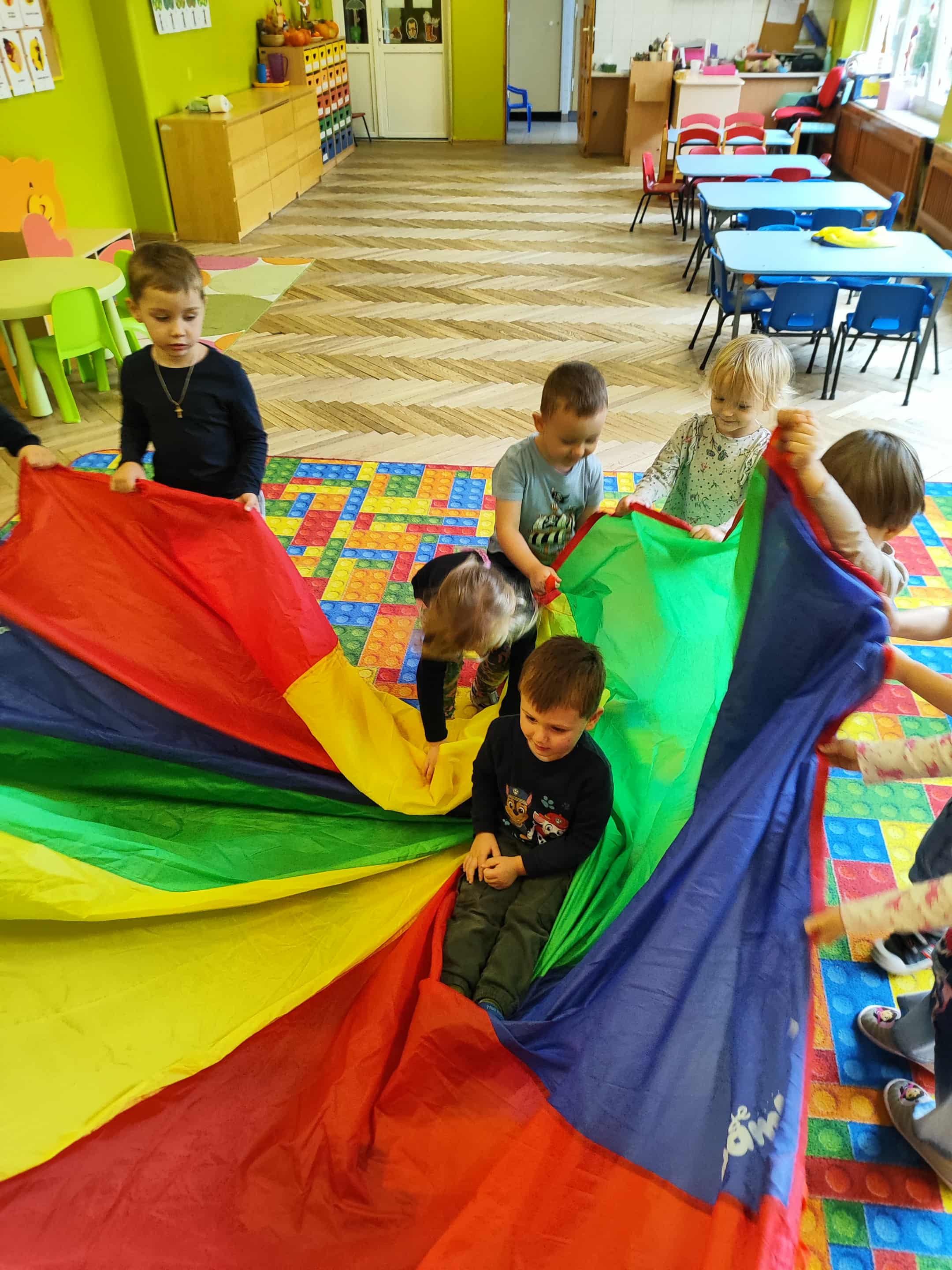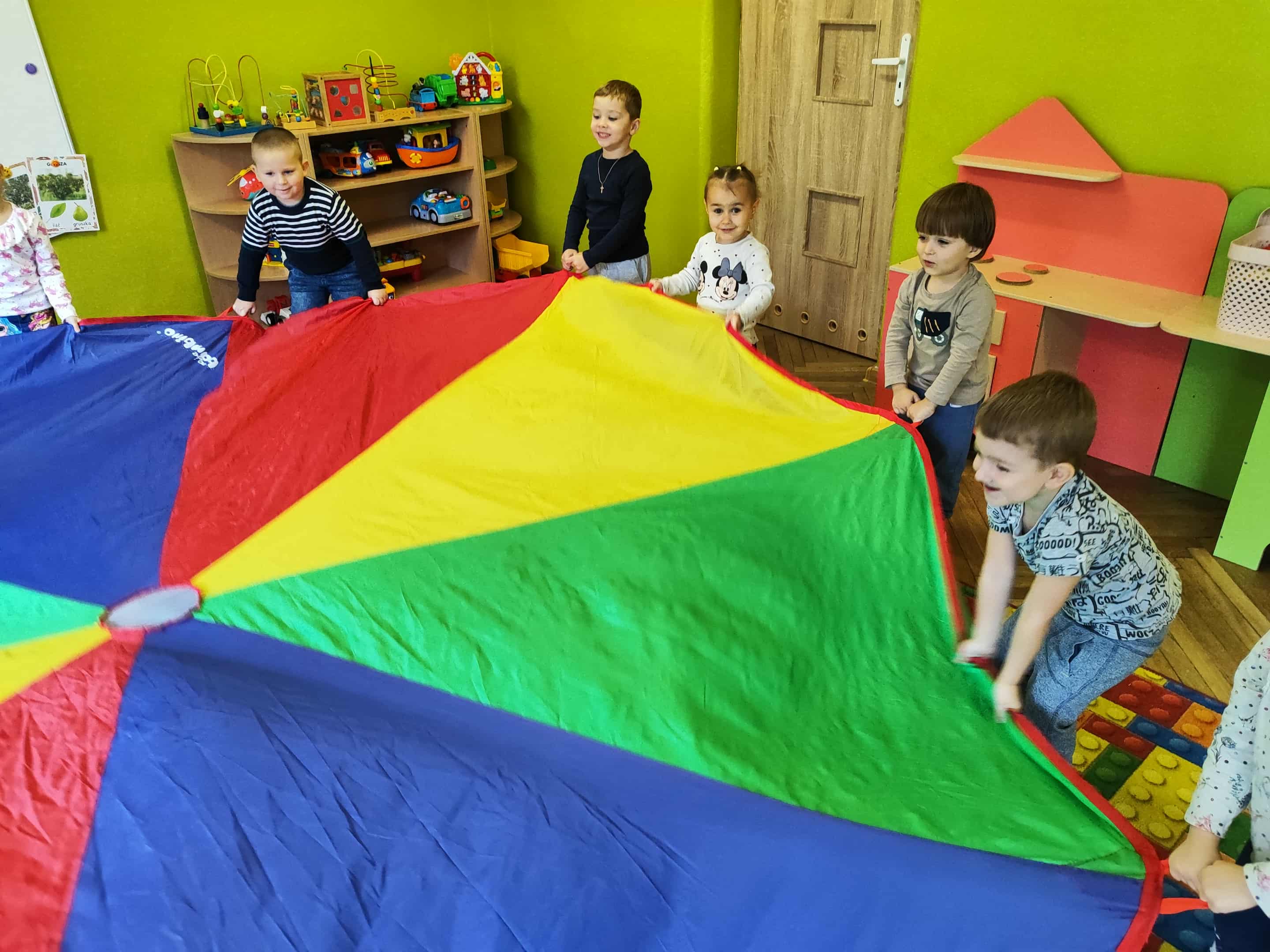 Intensywne barwy pobudzają wyobraźnię, ruch na świeżym powietrzu nigdy nie był tak przyjemny, jak przy użyciu chusty. Zabawy z chustą dają poczucie odprężenia i relaksu, pozwalają dzieciom i dorosłym pozytywnie spożytkować energię.