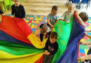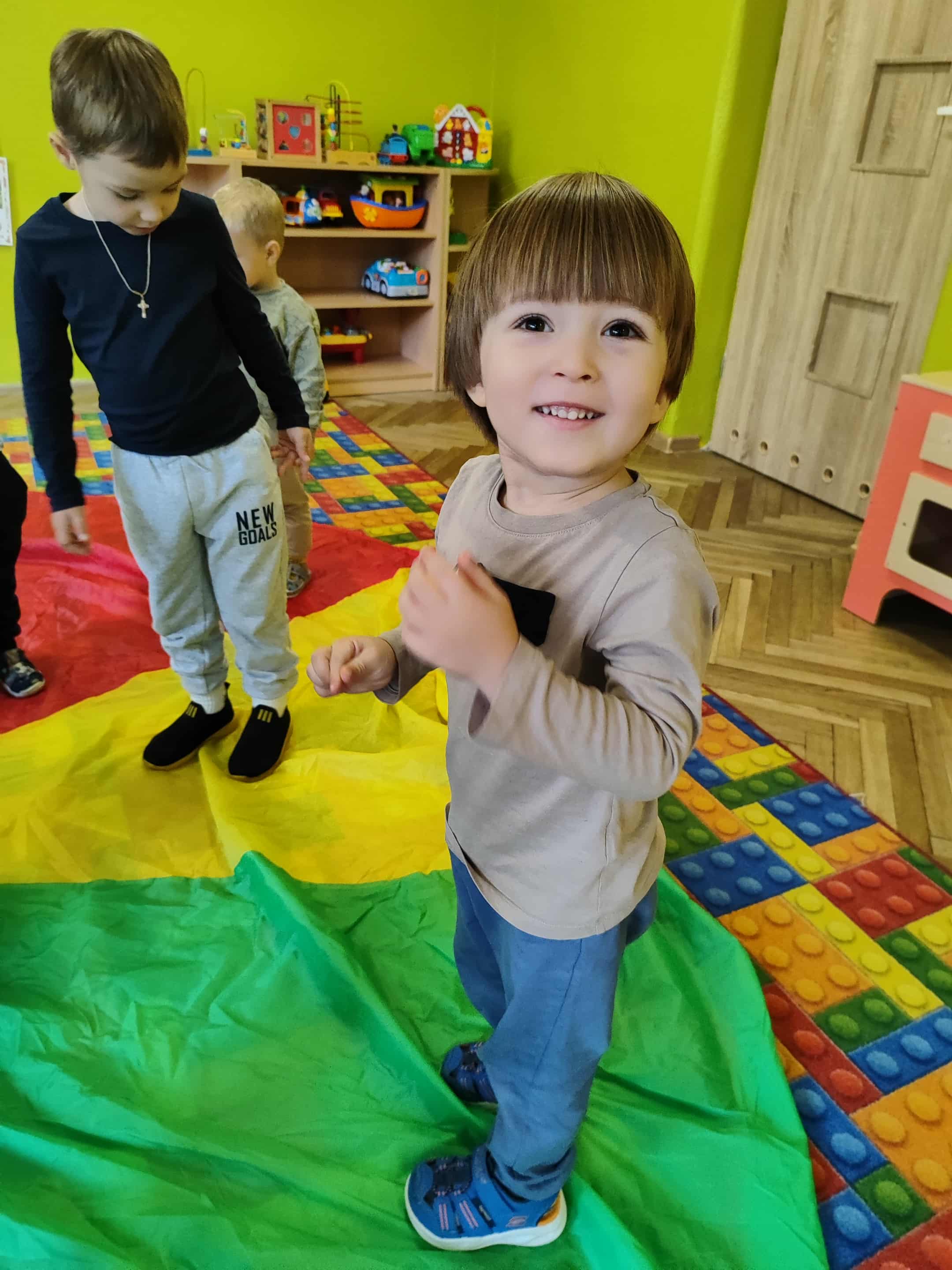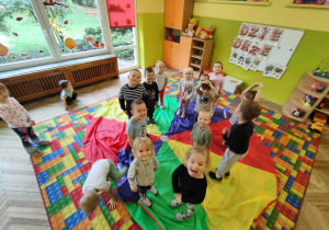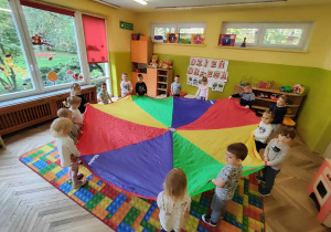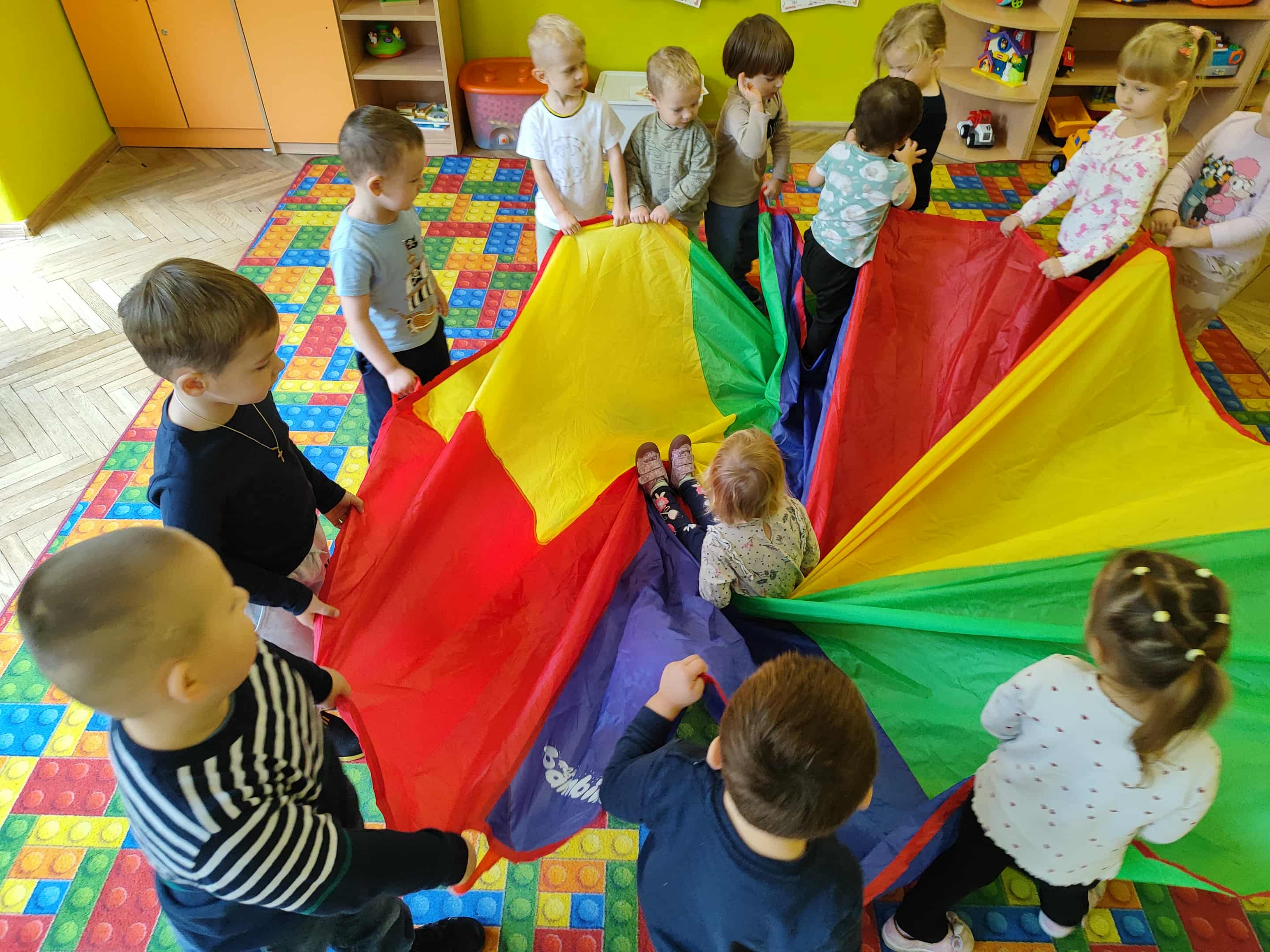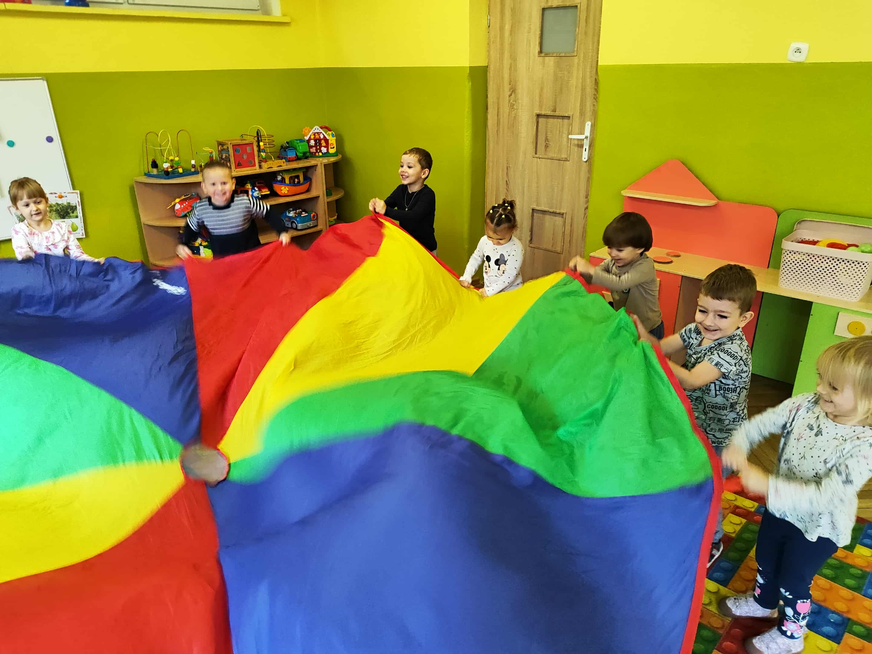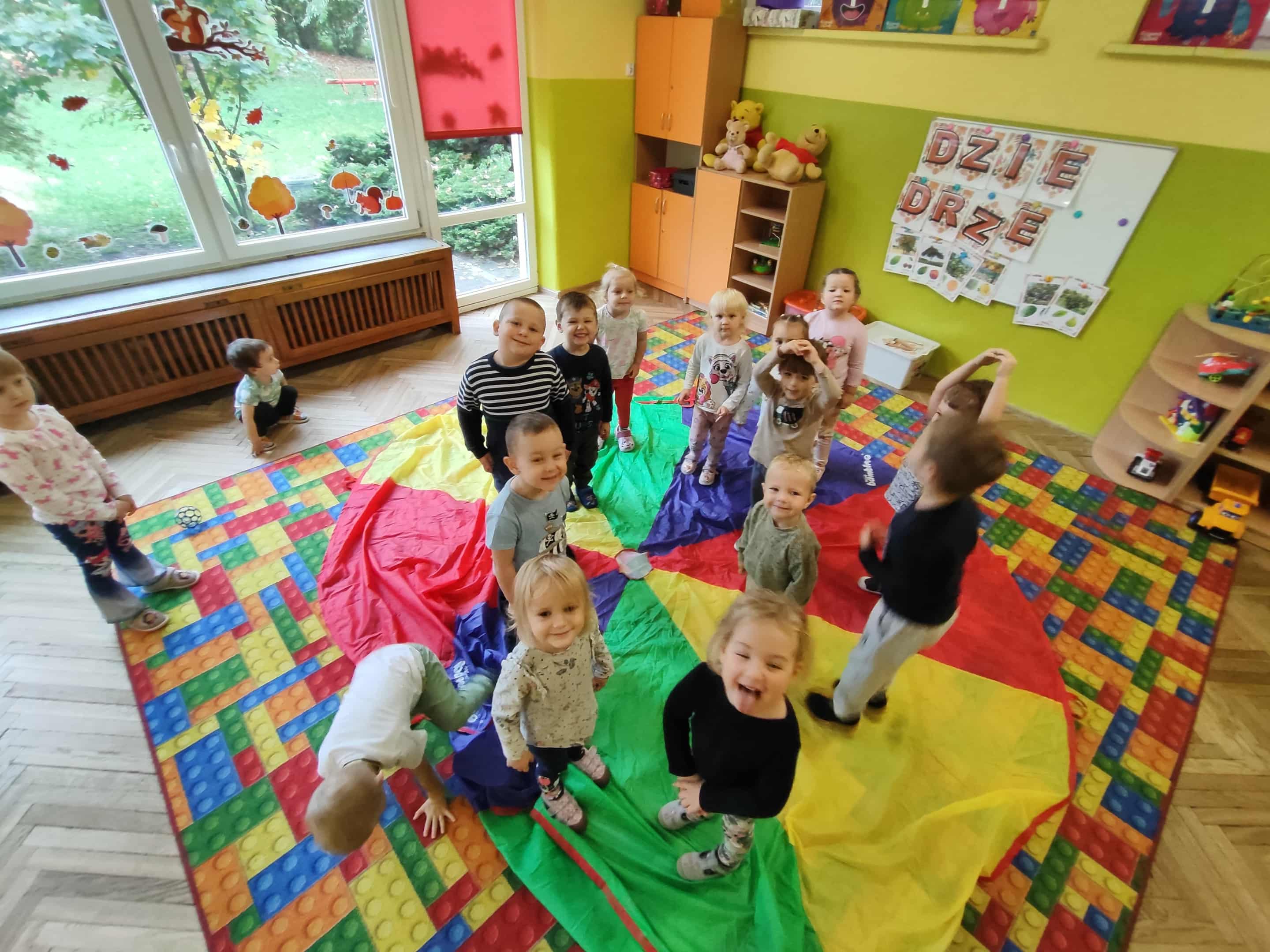 Intensywne barwy pobudzają wyobraźnię, ruch na świeżym powietrzu nigdy nie był tak przyjemny, jak przy użyciu chusty. Zabawy z chustą dają poczucie odprężenia i relaksu, pozwalają dzieciom i dorosłym pozytywnie spożytkować energię.