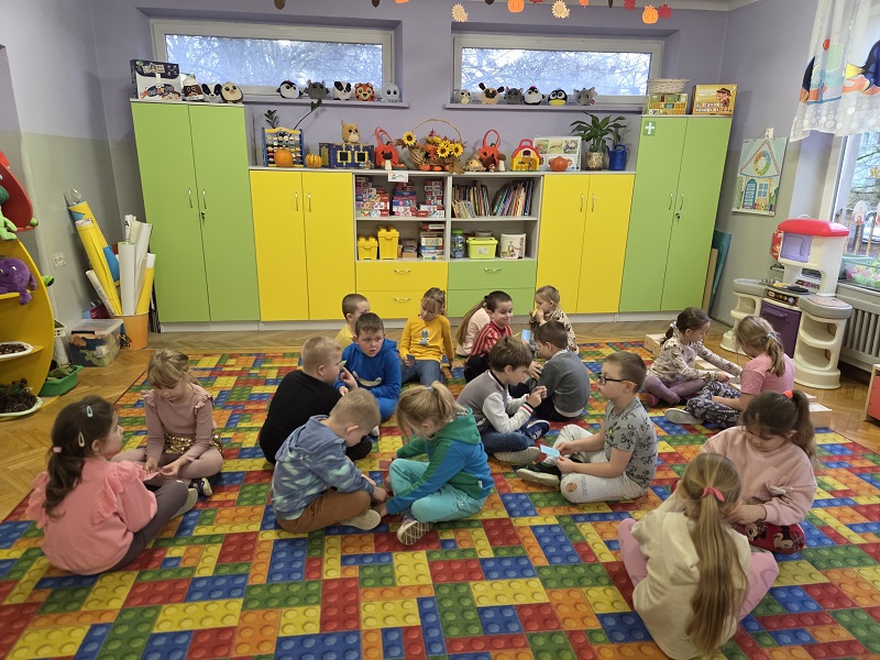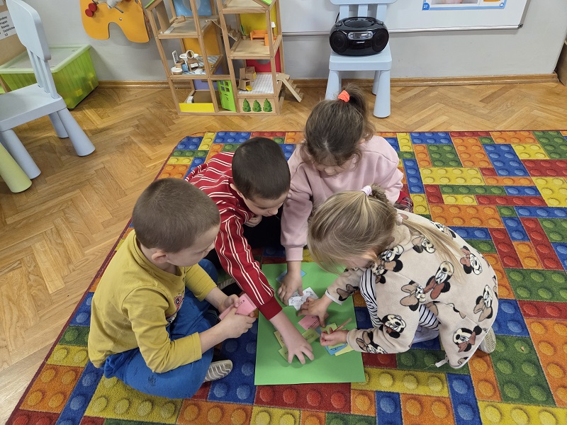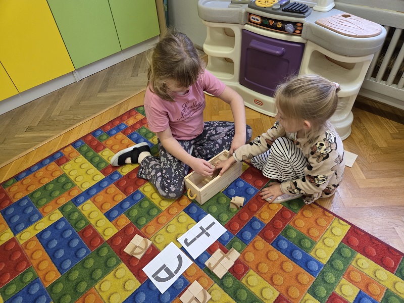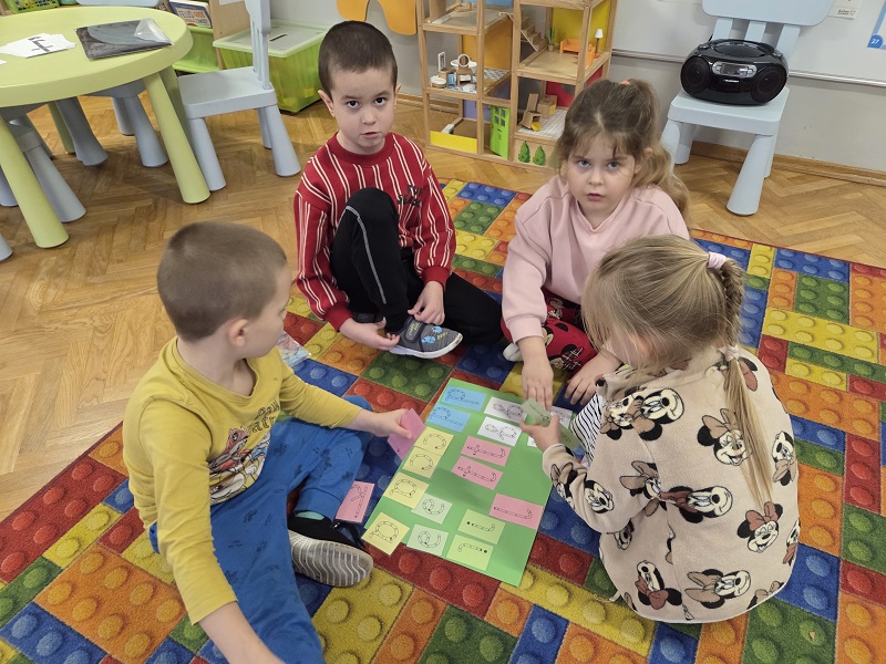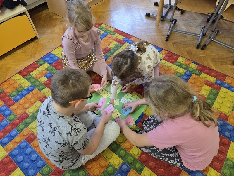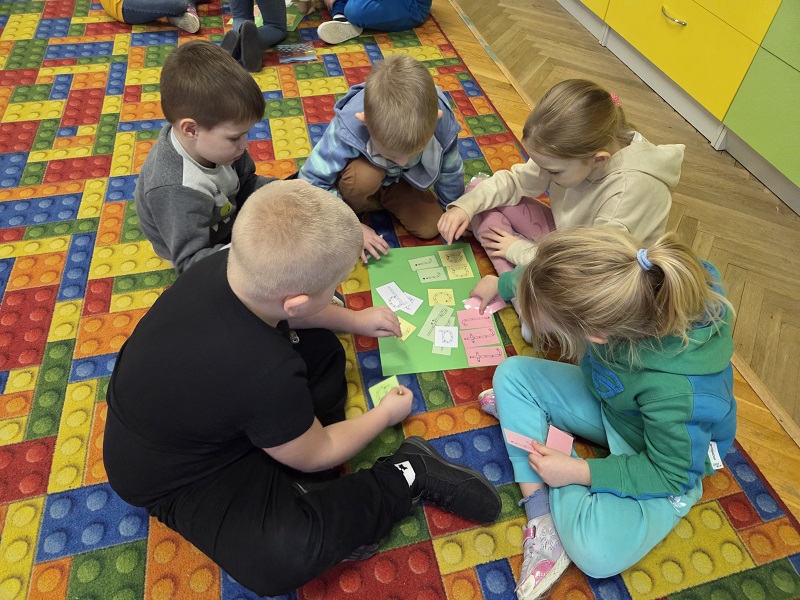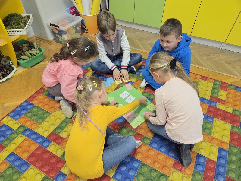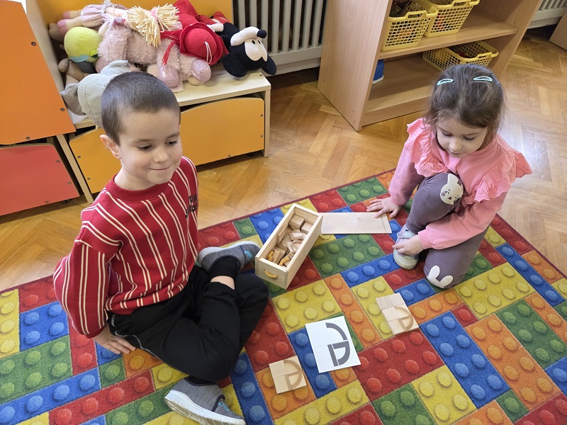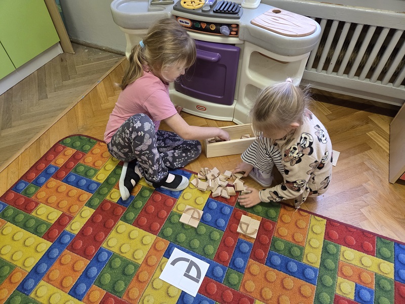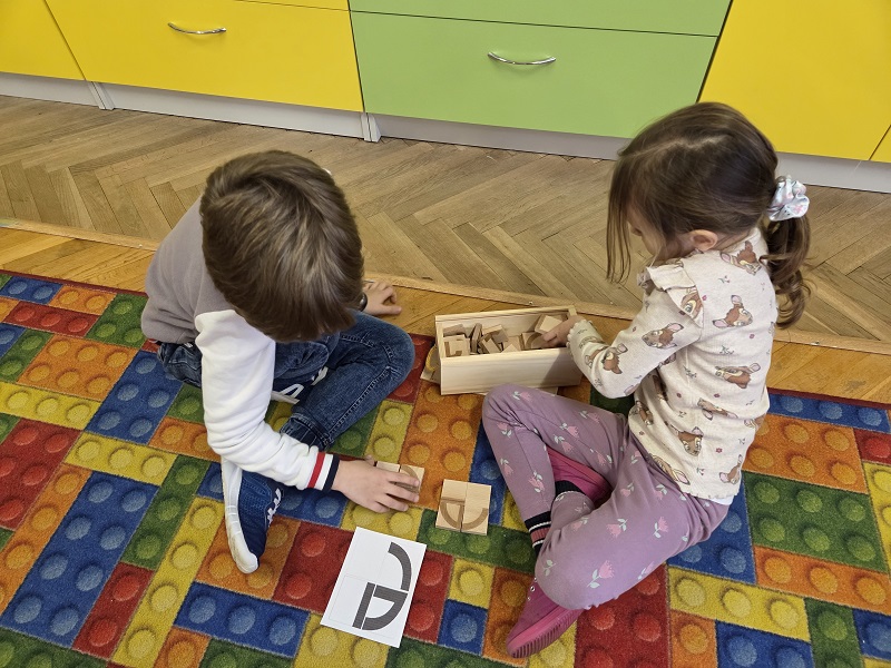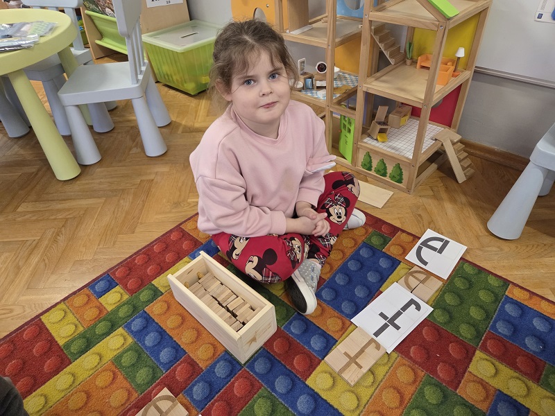 Grupa Biedronek w dniu 18 listopada 2025 r. uczestniczyła w ćwiczeniach i zabawach – “Jaka to głoska ?”, “Literowe pary”, “Odszukaj literę”, “Mała i duża litera”, “Usłysz i odszukaj”, w ramach realizacji Innowacji pedagogicznej “Skuteczne zdziwienie - wyzwalające myślenie”. Przedszkolaki przypomniały sobie symbol graficzny i gest liter – E jak Elf oraz F jak Foka oraz układały je z drewnianych klocków.