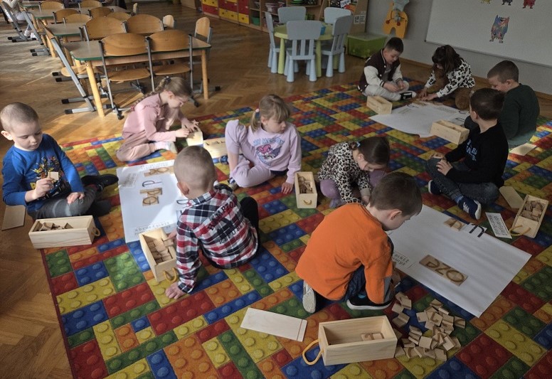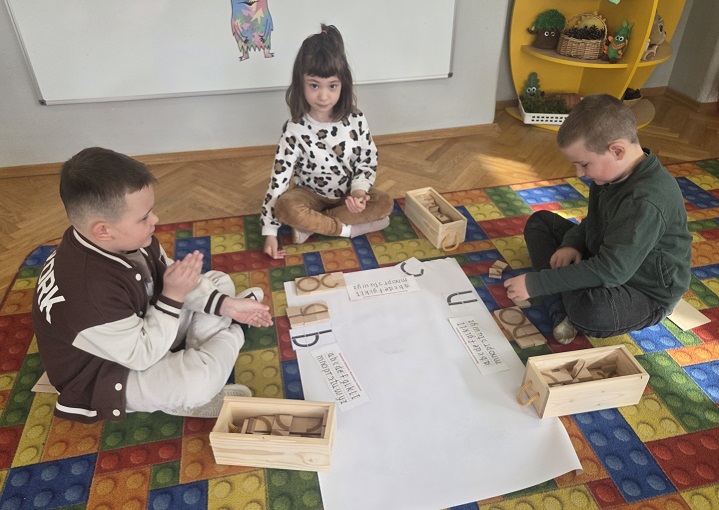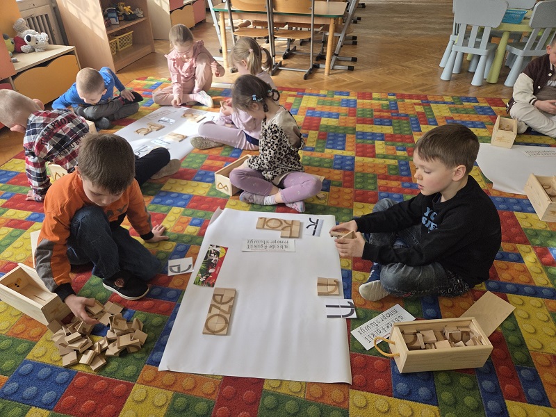 Przedszkolaki z grupy Biedronek uczestniczyły w kolejnych zabawach z literami i głoskami, w ramach realizacji innowacji pedagogicznej "Skuteczne Zdziwienie - wyzwalające myślenie". Tym razem przypomnieliśmy sobie głoski - "d", "s" i "k" , poprzez zabawy i ćwiczenia - "Wyszukaj literę", "Kolorowe pary", "Kto pierwszy?" oraz "Jaką słyszysz głoskę?". Podczas zajęć konstruowaliśmy głoski i proste wyrazy z drewnianych klocków.