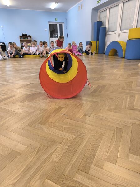 Grupa Motylki po raz pierwszy ćwiczyła na sali gimnastycznej. Zaczęliśmy od krótkiej rozgrzewki, następnie wszyscy korzystaliśmy z dostępnego sprzętu na sali. Zadowoleni i zmęczeni odpoczywaliśmy na materacach :)