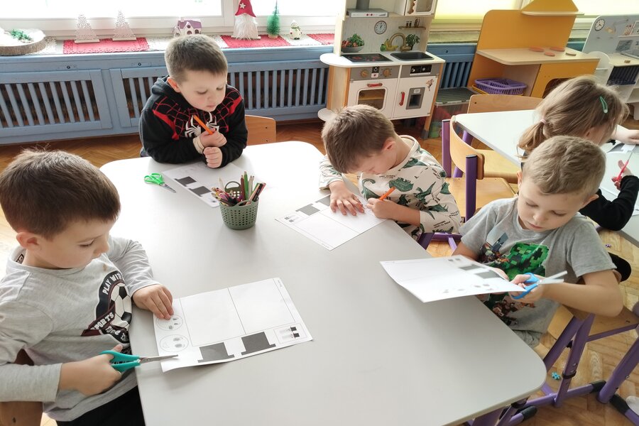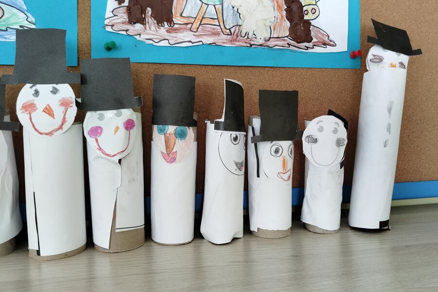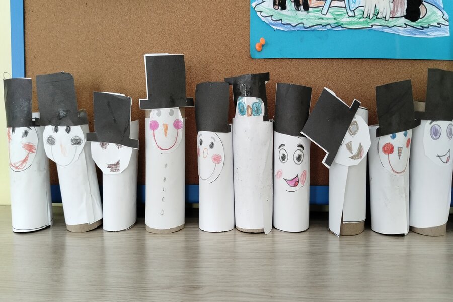Dziś po południu choć pogoda za oknem prawdziwie zimowa i chciałoby się wyjść na zabawy na śniegu to temperatura nam nie pozwala. Nasze truskawki jednak świetnie się bawią w swojej sali i wykonały z rolek po papierze toaletowym bałwanka. Prace można podziwiać w naszej szatni przedszkolnej a my czekamy na dogodną aurę za oknem by móc wyjść i ulepić prawdziwego bałwana.