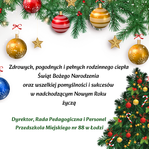 Zdrowych, pogodnych i pełnych rodzinnego ciepła Świąt Bożego Narodzenia oraz wszelkiej pomyślności i sukcesów w nadchodzącym Nowym Roku życzą